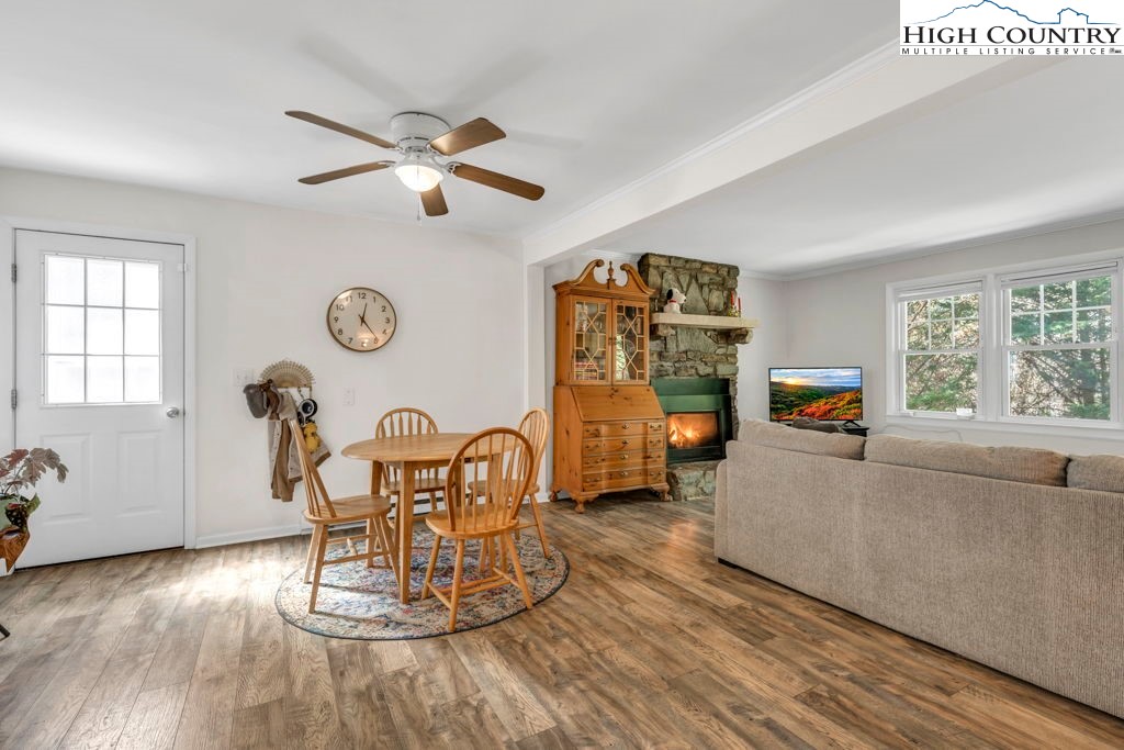 Tucked at the end of a quiet road within Boone town limits, this well maintained 3 bedroom 1.5 bath ranch offers a great mix of a quiet setting and convenience. Located just one mile from Appalachian State and a short walk to an AppalCart stop, with easy access to downtown, the hospital, and local schools. The property features mature greenery and a fenced backyard, providing a peaceful outdoor space for pets, gardening, or relaxing. Inside, enjoy one level living with a functional layout, eat in kitchen, pantry, and adjacent laundry. Recent updates include a new roof, updated flooring, new stove, and expanded pantry. An oversized one car garage provides ample storage, and exterior stairs lead to a sealed crawlspace with plenty of room for tools or additional storage needs. Suitable for full time living, second home use, or investment. Most furnishings convey, list available.