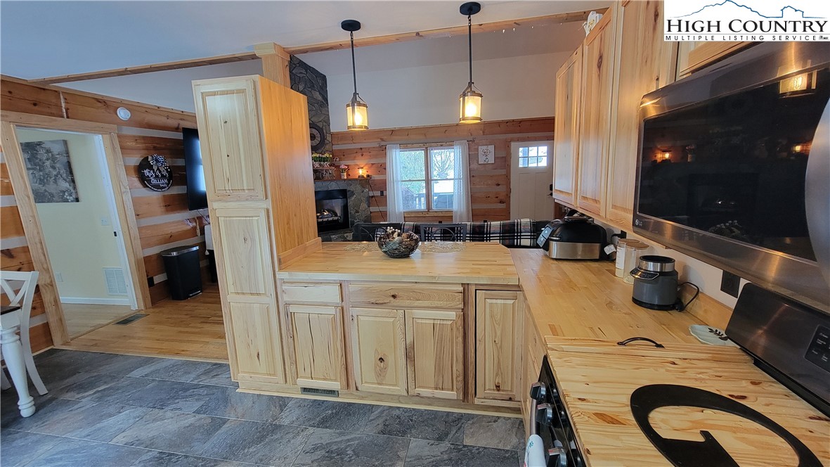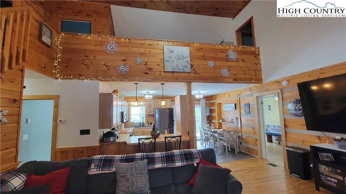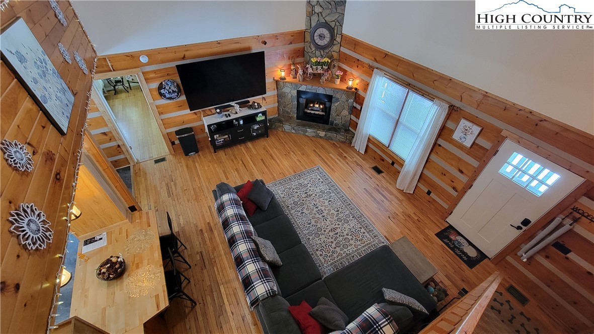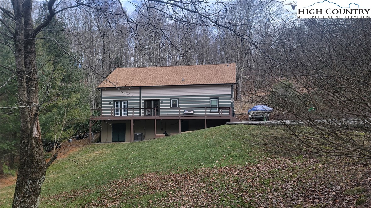 Nestled in the woods near the top of Snaggy Mountain, this beautiful, well-maintained 4-bedroom, 3-bathroom log home is just minutes from Boone. This home is spacious and features a large primary bedroom on the main floor with an en-suite bath complete with dual sinks and walk-in shower. This home checks all the boxes with short-term and long-term rentals allowed, so it's great as a year-round home, part-time getaway, or vacation rental. The spacious, open living area includes hardwood floors, a cozy fireplace and is open to both the kitchen and dining areas. The updated kitchen includes newer appliances and has a breakfast bar overlooking the living room. All of this makes entertaining fun and easy! The bedrooms are strategically placed on opposite sides of each level of the home to ensure maximum privacy, and all bedrooms offer large closets and storage. Outside, both the front and back of this home offer plenty of deck space and there's a sprawling front yard, ready for outdoor activities, bonfires, gardens and gatherings. On the lower level, you will love the concrete floored storage area, a great place for a workshop! New furnace was installed in 2024 and a new roof in 2022.