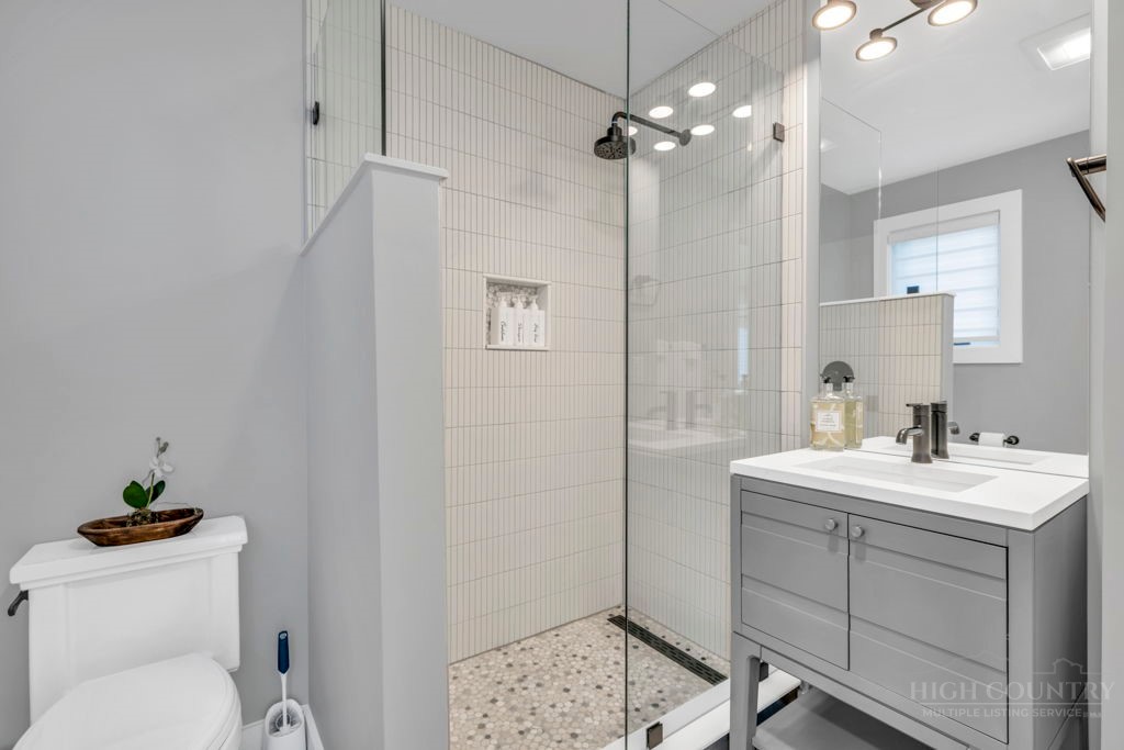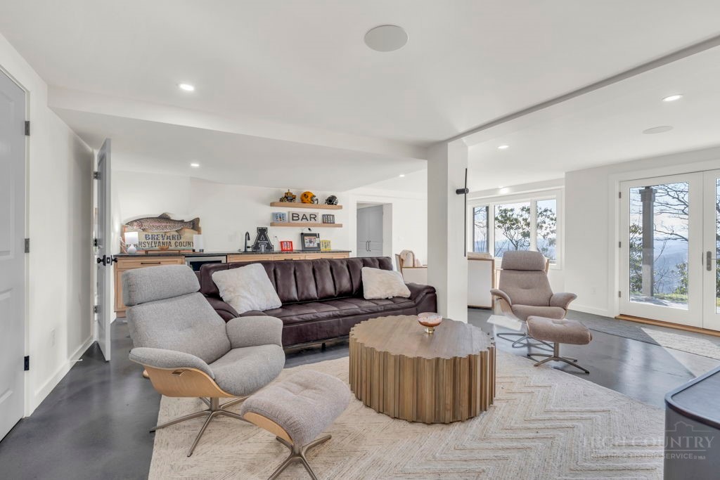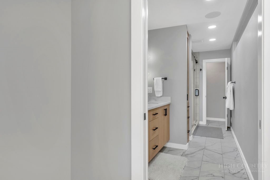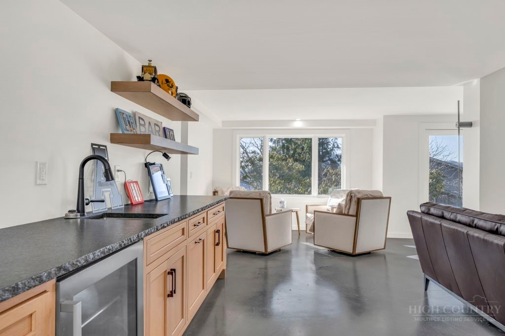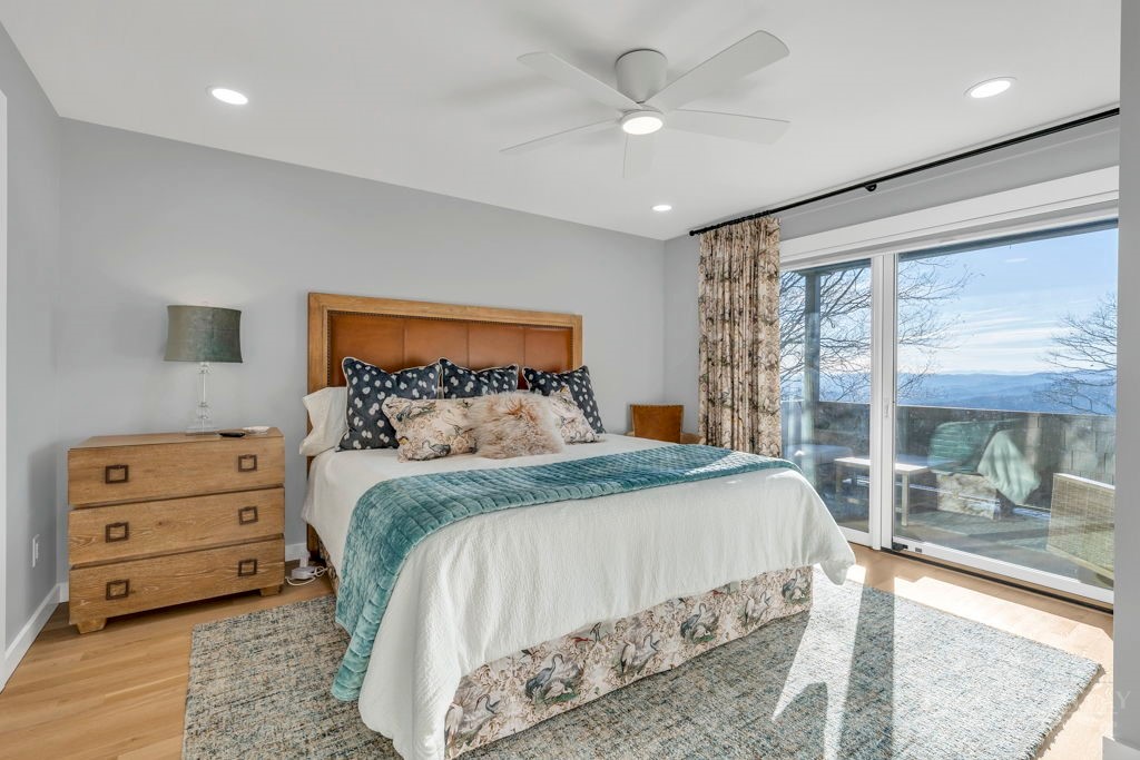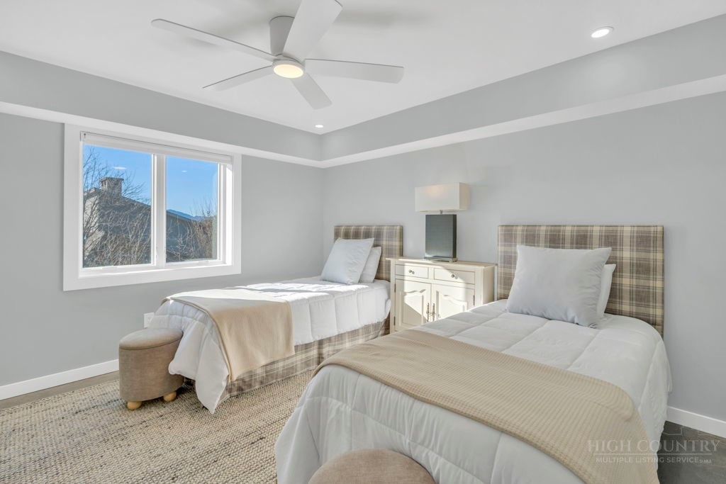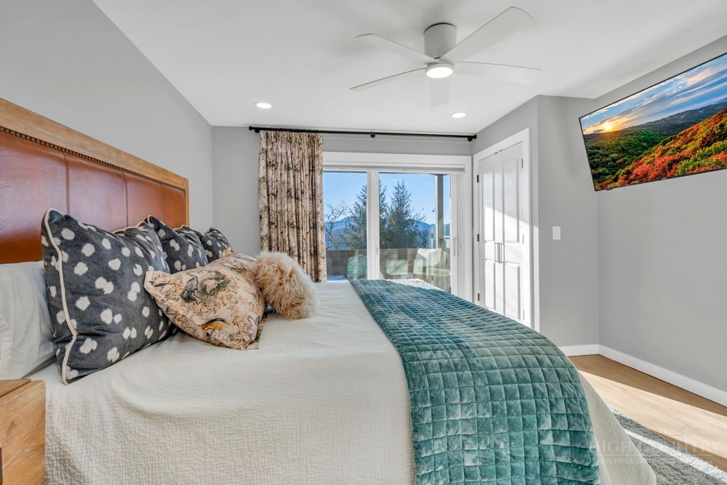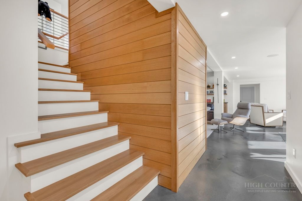 Sophisticated luxury condominium located in the coveted Mayview Park area of Blowing Rock is situated within a private gated community, and offers exceptional long-range, multi-layer mountain views to the south and west. This elegant property provides the full scope and style of mountain grandeur. Ideally positioned within walking distance to restaurants, parks, and the Village of Blowing Rock, this residence combines breathtaking scenery with tremendous convenience. Professionally designed by Architect Jill Spaeh and entirely renovated down to the studs completed in 2024, the home features new HVAC, electrical, plumbing, kitchen, baths, flooring, and more, all reflecting meticulous attention to detail and refined mountain distinction throughout. The thoughtfully designed layout includes 4 bedrooms and 4.5 baths. A welcoming entry foyer opens to expansive open-concept living and dining areas highlighted by white oak hardwood floors, custom white oak paneling, and a wood-burning fireplace. Adjacent entertaining spaces include a wet bar and seamless access to the covered deck with built-in tables and a lounge area—ideal for enjoying sweeping views to include Grandfather Mountain and layered peaks exceeding 5,000 feet in elevation with unforgettable sunsets. The open living areas flow into a gourmet kitchen with custom cabinetry and premium appliances, including GE Café Professional Series stainless steel appliances with double convection ovens, gas range, warming drawer, dishwasher, Thermador refrigerator and freezer, and a large island with bar seating—perfect for everyday living and entertaining. The main level offers three bedrooms, including a luxurious primary suite with spa-like ensuite bath featuring elegant tilework, upscale fixtures, and a walk-in closet. Two additional guest suites each include beautifully appointed baths, along with a convenient main-level half bath. The lower walk-out level features a fourth bedroom and full bath, a family room with flat-screen TV, white oak paneling, custom built-in cabinetry with wine storage, wet bar with beverage refrigerator, sitting area, and direct outdoor access. A well-appointed laundry room with built-ins and utility sink, along with abundant storage, including a spacious seasonal closet, adds exceptional functionality. Mayview Manor Court Community amenities include a swimming pool, and all just minutes from the Village of Blowing Rock, with walkability to dining, shopping, parks, galleries, trails, and much more.