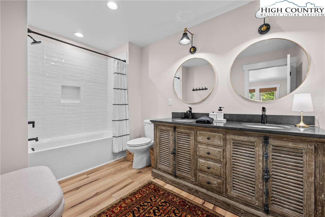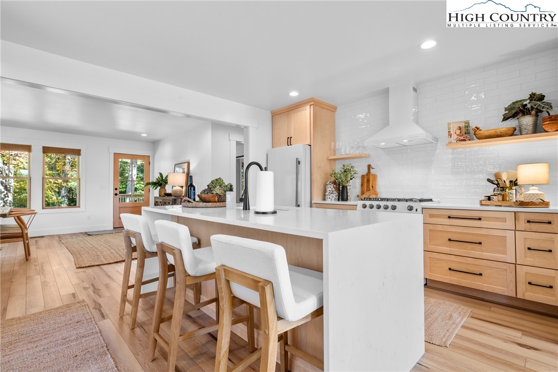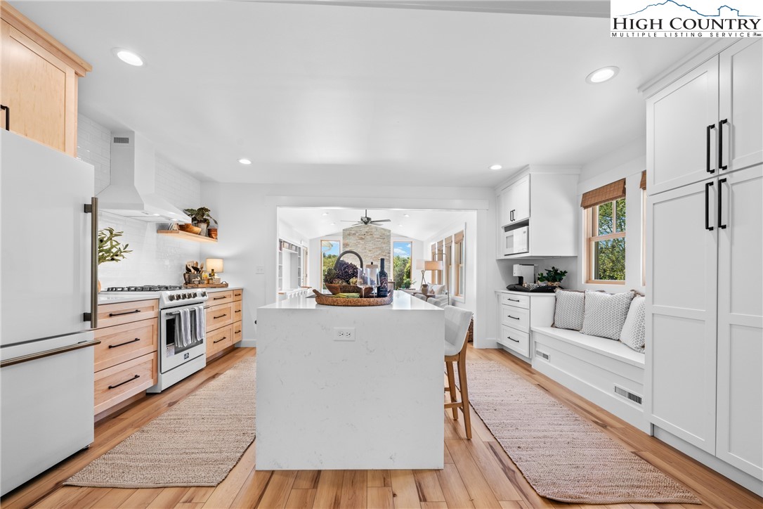 Discover this beautifully renovated 1955 farmhouse just minutes from downtown Blowing Rock. Set on a spacious lot with all-new landscaping, this home blends classic charm with contemporary farmhouse design. Step inside to a bright, spacious open-concept living area for entertaining or relaxing. The two spacious bedrooms each features large on suite bathrooms, plus there's a stylish half bath for guests. A cozy office or reading nook offers extra flexibility for work or leisure. Enjoy outdoor living year-round with a oversized covered back deck and covered porch on the front of home —ideal for sipping coffee or taking in the mountain air. The large lot provides privacy, room to play or garden, and a peaceful setting close to town. Just a short drive to restaurants, shops, trails, and everything downtown Blowing Rock has to offer—this turnkey home is a rare find!