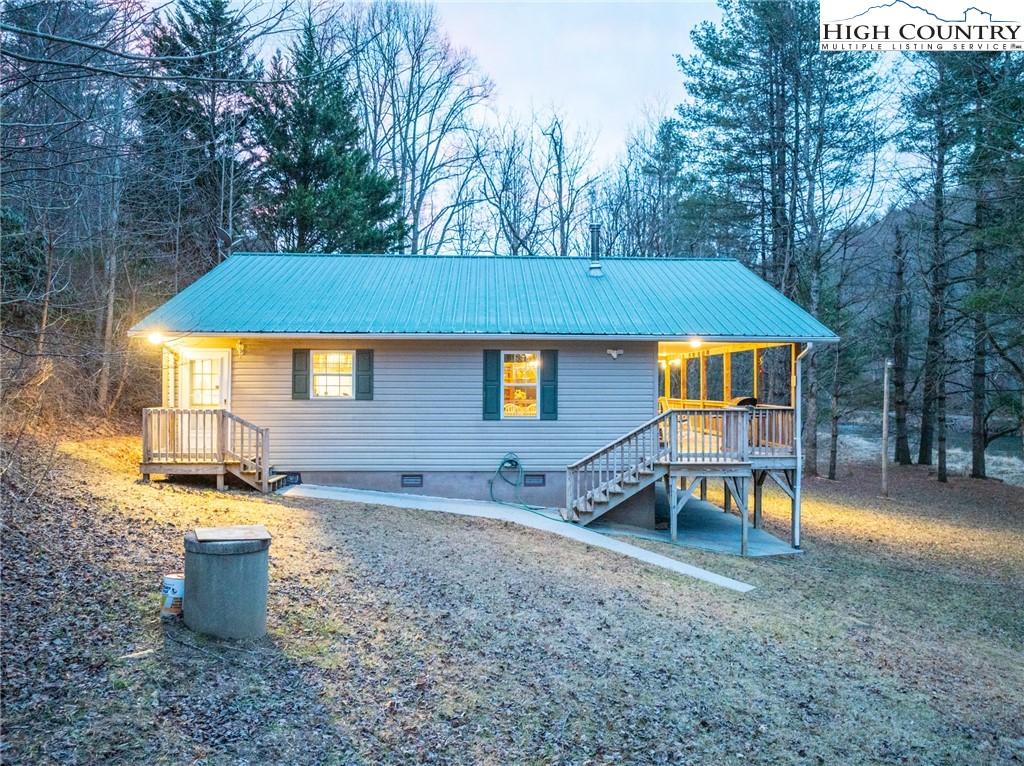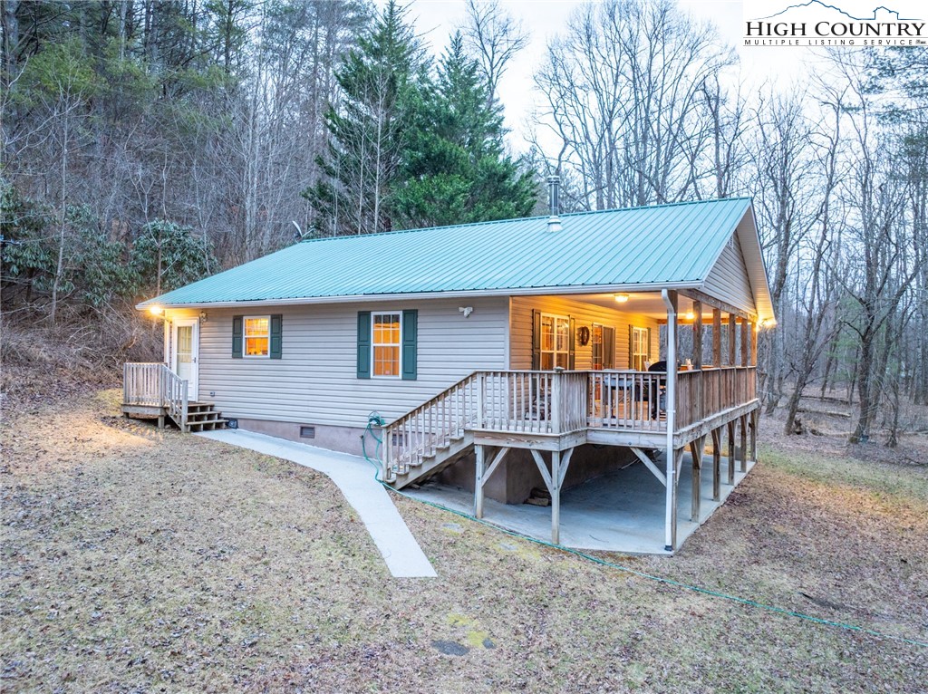 Riverfront cottage in Scenic River Front Acres is a charming 2BD 2 BA Mountain getaway nestled along the South Fork of the New River. It offers direct access to swimming, fishing, and kayaking right from the front yard.This Mountain River home features a spacious great room that flows seamlessly into the lovely kitchen and dining area. The Relaxing Covered Porch offers extra space and views of the mountains overlooking the river, with extra yard making it an inviting outdoor space. Additionally, a large outbuilding with both a roll-up and walk-in door offers ample storage for fishing gear, Kayaks, tubes and more. A heat pump provides climate control, with a freestanding wood stove for extra warmth and security. Long term rentals permitted. Minimum rental is 30 days.