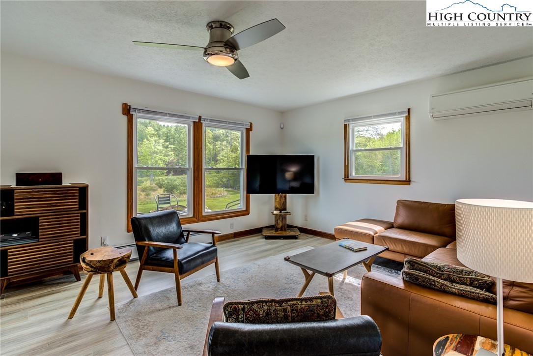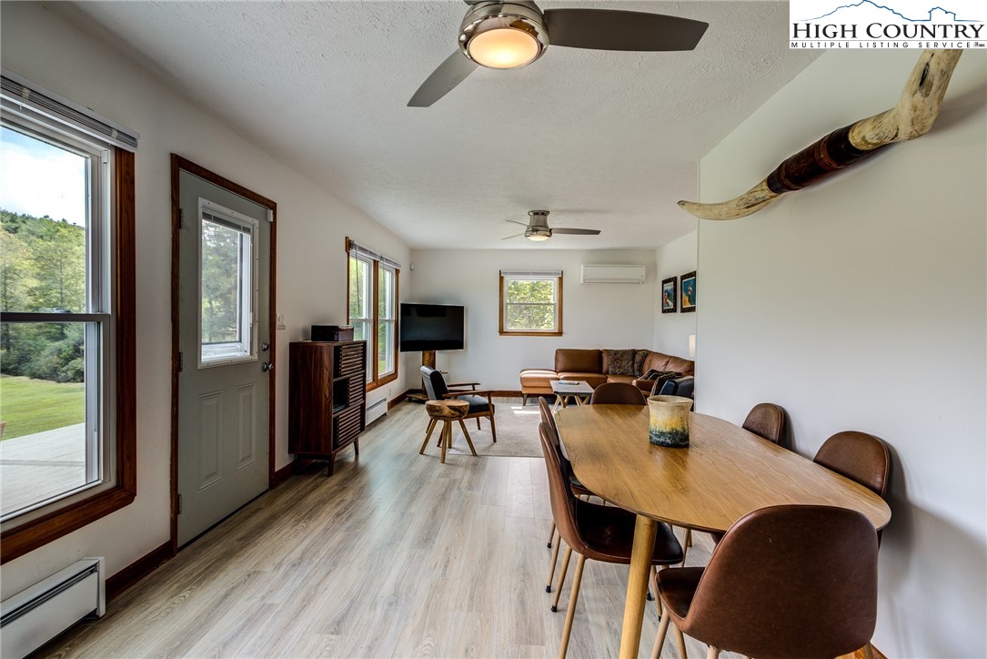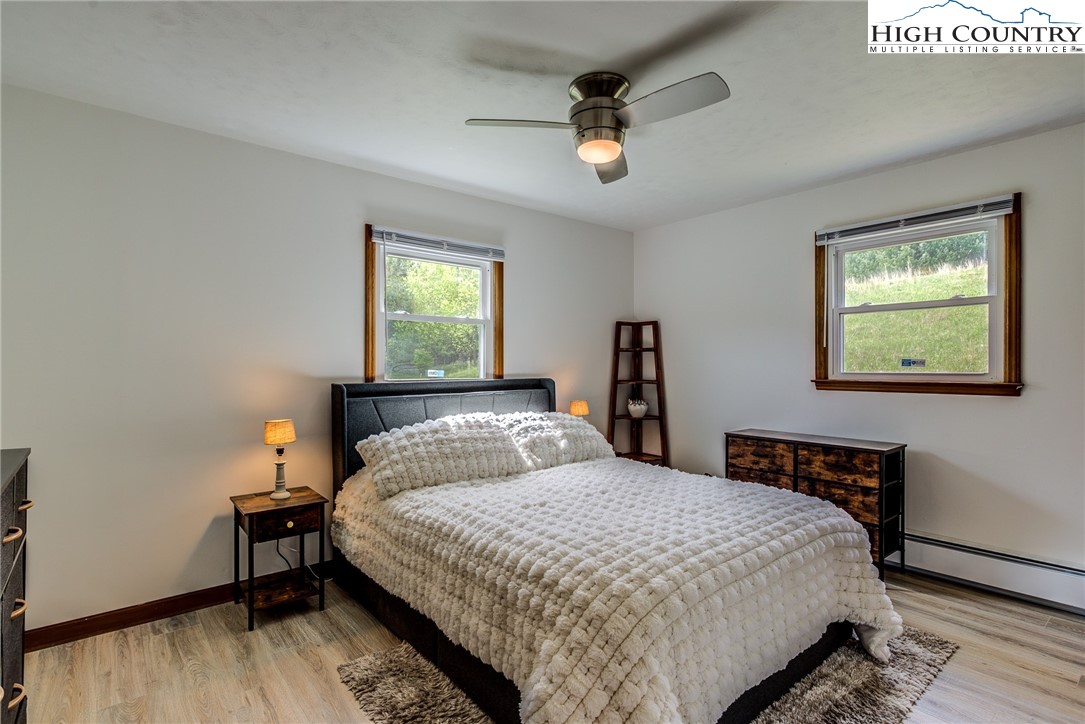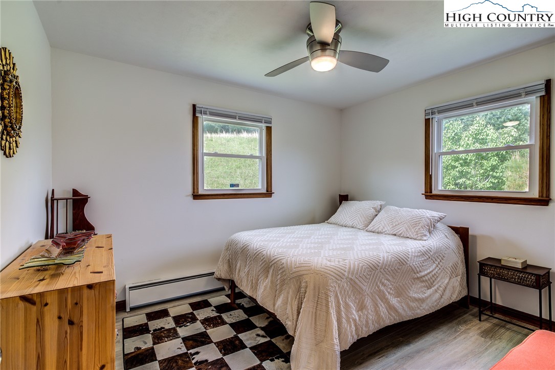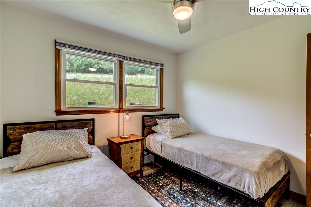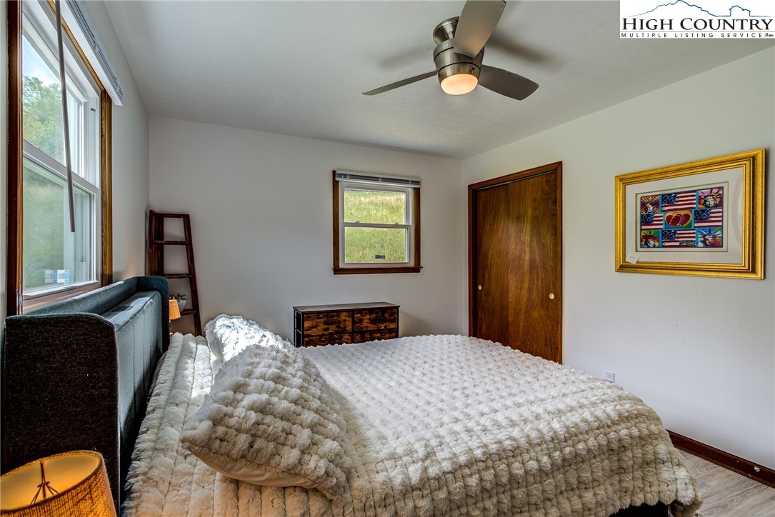 This beautifully renovated 3BR/1BA cottage sits on approximately 24.67 acres in Laurel Springs and offers a rare blend of modern updates, mountain charm, and abundant natural water features. The home features an open-concept kitchen, living, and dining area created by removing interior walls, along with a full interior repaint, new kitchen countertops, backsplash, dishwasher, low-profile microwave, and garbage disposal. Additional upgrades include a newly tiled bathroom with heater and exhaust fan, updated electrical outlets and Decora switches (several with USB ports), new flooring throughout, three new exterior doors with built-in blinds, new electric baseboard heat and thermostats, an attic fan, whole-house water filter, PEX plumbing, LED basement lighting, ceiling fans, wireless alarms and motion sensors, and new pull-down attic stairs with plywood flooring. Exterior improvements include a newly built Trex deck, refreshed landscaping and flower beds, painted outbuildings, and a fully updated spring house with new pavers, door, window, pump, and piping. The property also features new tree and shrub plantings and a newly constructed bridge across the stream. With multiple outbuildings, a well-equipped workshop, wooded trails, and several streams running throughout the acreage, this one-of-a-kind mountain retreat offers exceptional privacy, natural beauty, and outdoor enjoyment—an increasingly rare find at this scale.