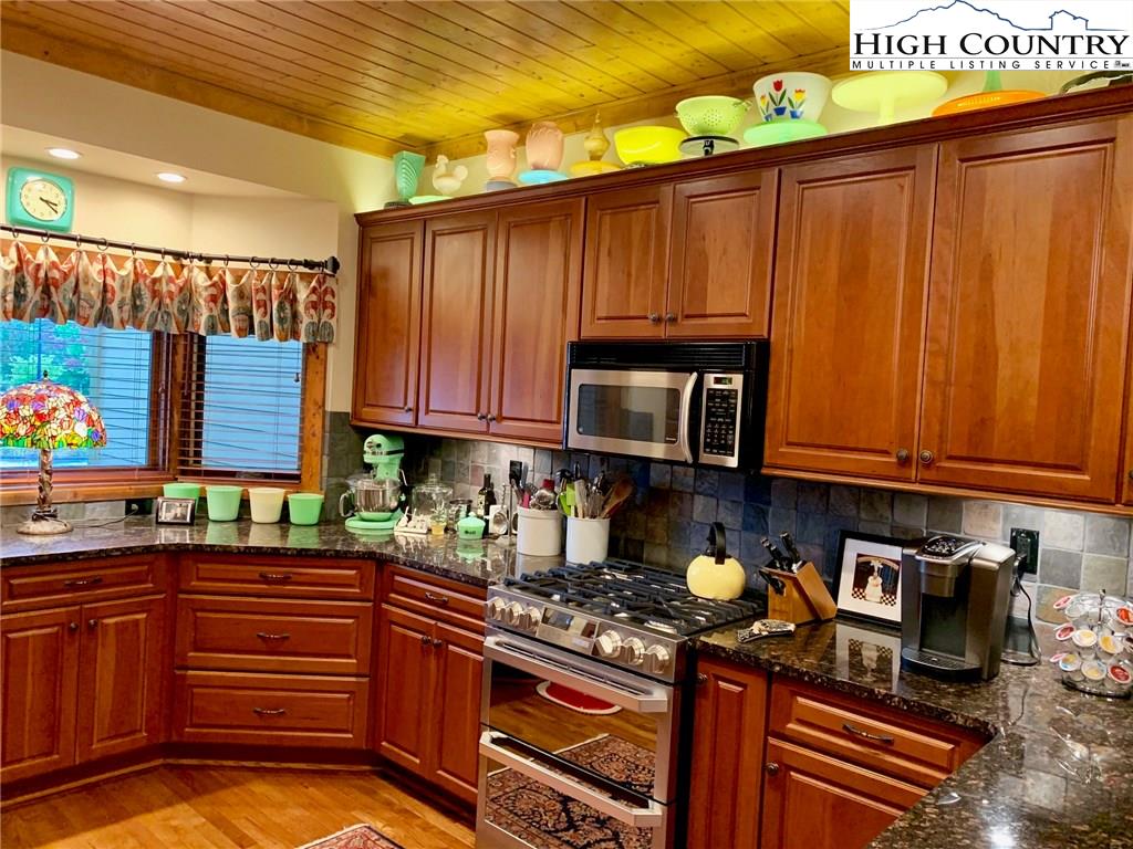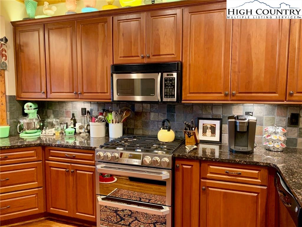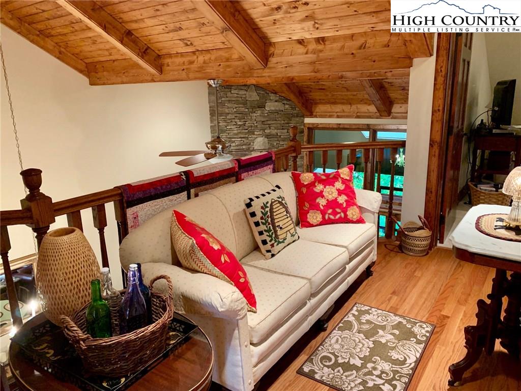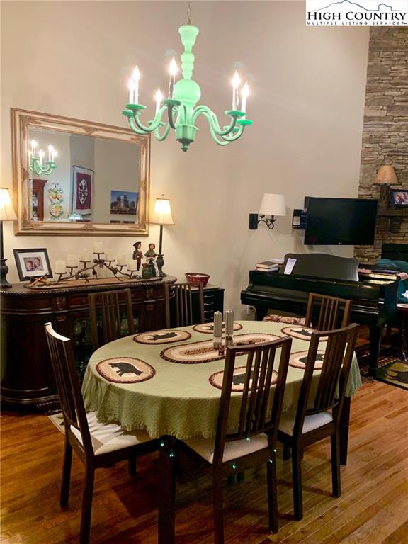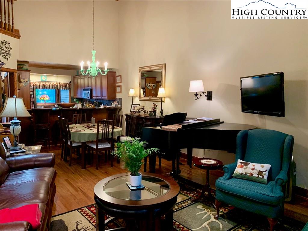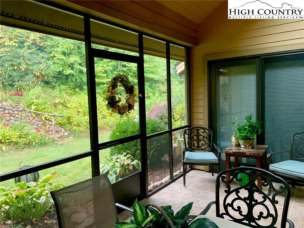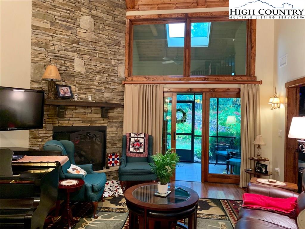 Step inside one of the most beautifully designed townhomes in the High Country! This 3 bedroom,/ 2.5 bath townhome with level entry and main level living, was designed by architect David Patrick Moses. Features include stone foyer, wood floors, 20 feet high tongue and groove soaring ceilings, gorgeous floor to ceiling stacked stone fireplace and oversized one car garage. Kitchen is a chef's delight with gas cooktop, double electric ovens, over and under counter lighting, lighted pantry and plenty of granite counter space. The generous master suite boasts lighted tray ceilings and expansive windows and walk in closet. Master bath includes double vanity sinks, separate tiled shower and high end walk-in jetted tub by American Standard. The home is further complimented upstairs with two spacious bedrooms and bath with sitting area overlooking the great room below. Enjoy sitting on the tiled, screened in patio and taking in the peaceful, private setting and beautiful landscaping. Fantastic Banner Elk location with easy year round access and just minutes to local shops, restaurants, ski slopes, concerts and theater!