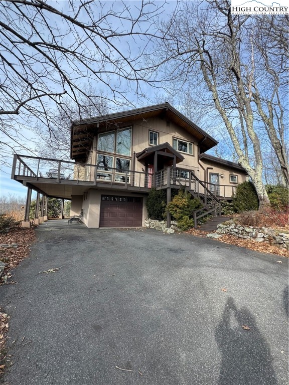 Welcome to Big Sky, where breathtaking views are sure to impress and enjoy on the large wrap-around deck. This distinctive home in Linville Heights stands out for its unique design and exceptional location, ready for your updates to make it your own retreat. The property is being offered with an additional adjacent lot, providing the opportunity to build a second home for use as a vacation rental, guest house or more privacy. As you step through the front door, you are immediately captivated by the stunning views showcased through the expansive windows in the main living area. The impressive fireplace, complete with gas logs, is a captivating focal point that enhances the charm of this mountain retreat. The main level also features a primary bedroom with ensuite bath, a well-appointed kitchen with granite counters, additional den, laundry area, second full bathroom, and a sunroom. Upstairs, you’ll find another ensuite bedroom with full bath and the third bedroom. The balcony on this level overlooks the living area and has a striking library wall. Going to the lower level is where you find the fourth bedroom, a full bathroom and a bunk room, great for accommodating guests. The attached oversized two-car garage opens to this level for convenience. Electric Car Charger in Garage as well. Furnishings are negotiable. Lots of storage under the home as well. Don’t miss the opportunity to experience this truly one-of-a-kind property. Location is exactly where you want to be in Linville within a few minutes of Grandfather Mountain in the Blue Ridge Parkway and just down the road are your ski resorts, including Sugar Mountain and Beech Mountain. Restaurants, shopping and much more await! See list of updates attached.