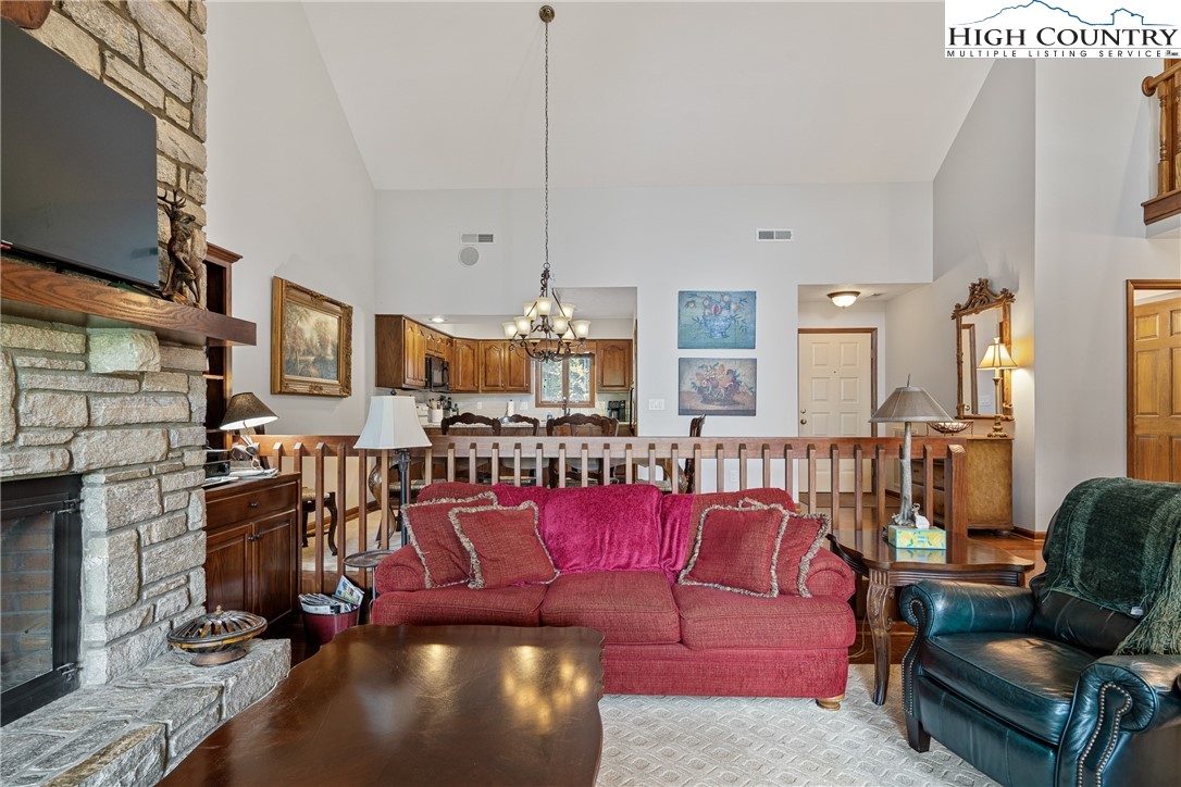 Incredible Opportunity in Chetola Resort! Don’t miss the chance to own a 12.5% share in this beautifully maintained three-bedroom, three-bathroom Chetola Condo—Appalachian #5. This fractional ownership offers a well-organized group of shareholders and a seamless system, so all you need to do is bring your clothes and start enjoying. Step inside to find vaulted ceilings, an open floor plan, and a massive stone fireplace in the living room that flows naturally into the kitchen and dining area. The main level features the primary suite, a guest bedroom, a full bath, laundry area, kitchen, dining room, and a covered porch—great for relaxing in the mountain air. Upstairs, you’ll find a third bedroom with an ensuite bath for added privacy. Just steps from your front door, a scenic trail leads directly to Bass Lake and Moses Cone Memorial Park, where you can hike, fish, or simply enjoy the outdoors. Chetola Resort amenities include an on-site restaurant, bar, spa, indoor pool, fitness center, fitness classes, tennis courts, pickleball courts, and a lake for kayaking, paddle boating, or canoeing. Outdoor enthusiasts can also enjoy fly fishing trips arranged through Chetola or visit the Shooting Reserve. Short walk to downtown Blowing Rock, you’ll have easy access to boutique shops and outstanding restaurants. This property is for those who want to enjoy the benefits of ownership without the hassle of maintenance. A well-established system is already in place for scheduling your weeks, and even weekly cleaning is handled for you. Owners may trade weeks with other shareholders. All-inclusive dues of $950 per quarter cover POA dues, assessments, utilities, management fees, and cleaning—everything you need for a stress-free getaway. Appalachian #5 is ready for you—just bring your clothes and start making memories!