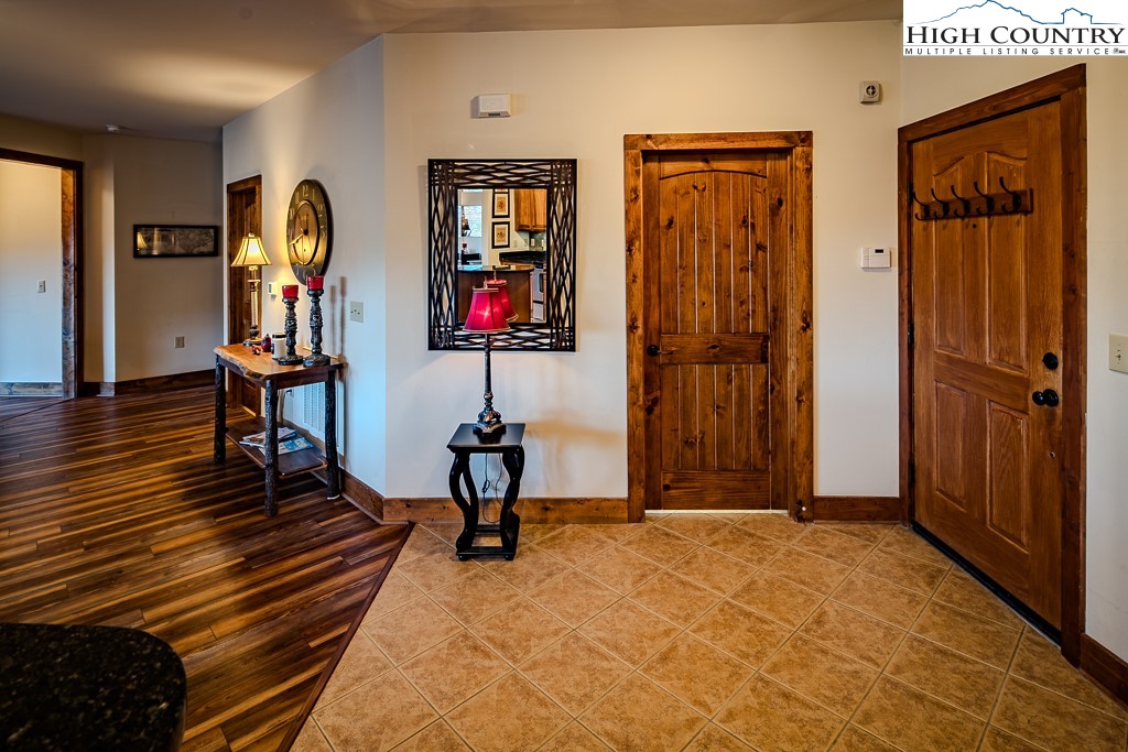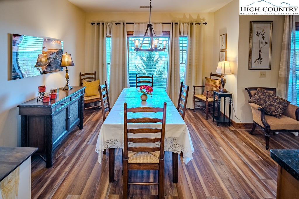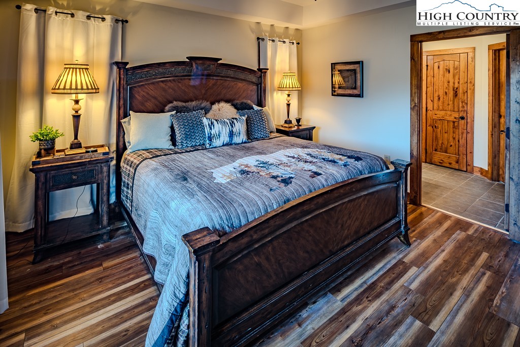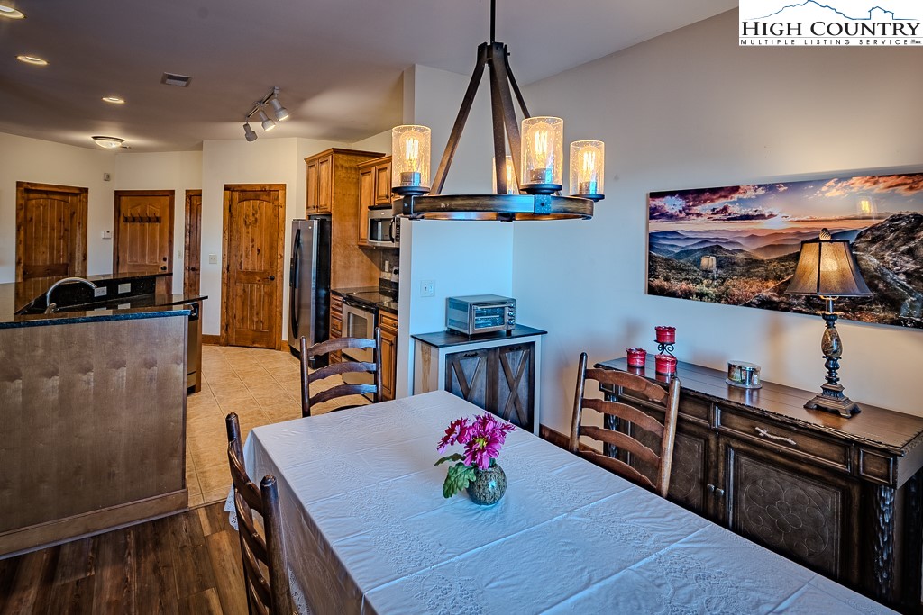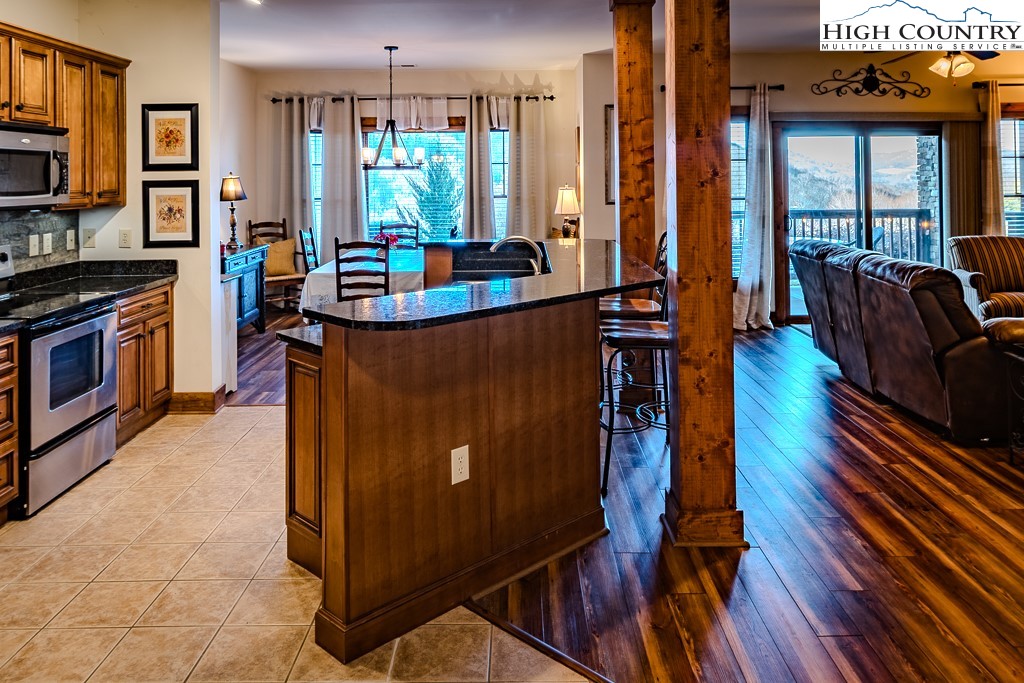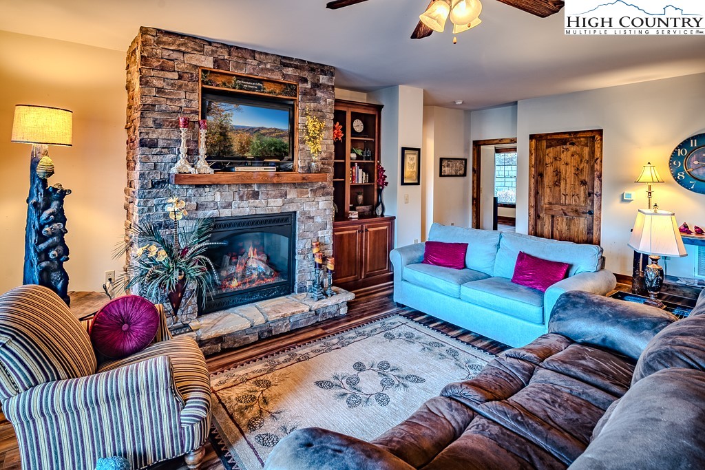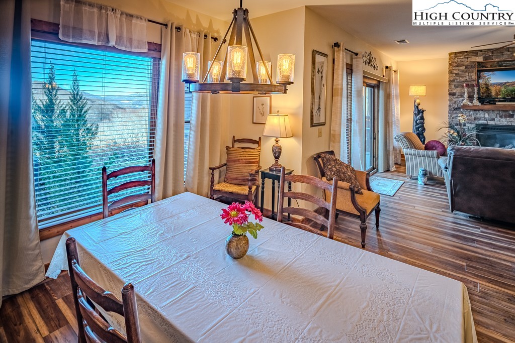 Stunning mountain views without looking over another building and seen from the deck and inside the condo (only a couple units have this view)! The Lodges at Elkmont's (Banner Elk) most popular floor plan and one level living-this one has it all! Sold mostly furnished. The heating/air conditioning system was replaced in late 2021 ($8,000 savings there). This two bedroom, two bath luxury condo is a private end unit with plenty of wrap around deck space. Very attractive luxury vinyl plank flooring throughout the condo, including the bedrooms! The deck features a door to allow dogs and people to roam on the flat backyard and extensive space alongside the building. The Gourmet kitchen, large walk-in pantry, cultured stone fireplace and separate laundry room are just some of the features! At 4,000 elevation, you will appreciate the cool nights and days! The Lodges at Elkmont location puts you very close to skiing, hiking, Blue Ridge Parkway, Grandfather Mountain, restaurants, shopping, Valle Crucis, Boone, Blowing Rock and much more! At Elkmont, you will find beautifully landscaped grounds and a common area that includes a pavilion with big views and a fire pit area to gather around! The Association is well managed and has set aside large reserves for future maintenance. The Other room is a walk-in pantry. No rental less than 7 days. The Town of Banner Elk maintains Elkmont's primary road (Elkmont Lane); Red Deer Run is considered a parking area and is maintained by the Association. Underground master propane tank, separately metered to each condo, owned by the fuel company and does not convey. Please see Listing Documents for Seller Disclosures, Seller Deed, Plat and Rules and Regulations.