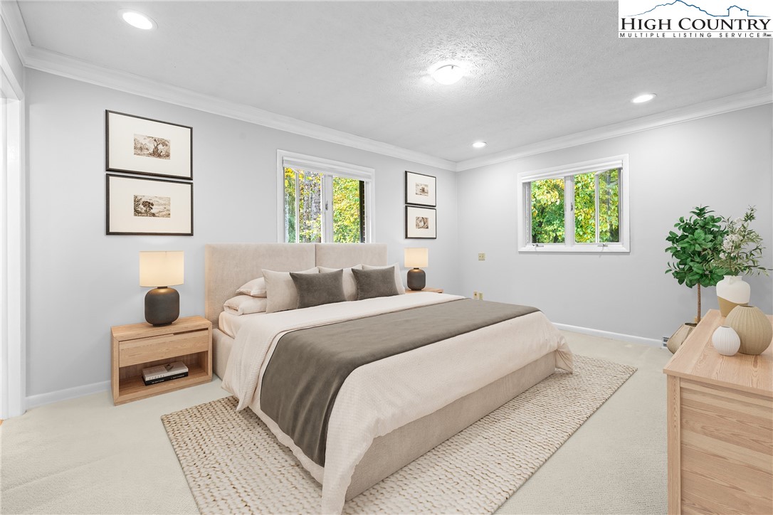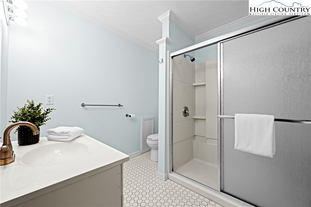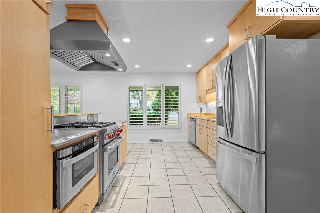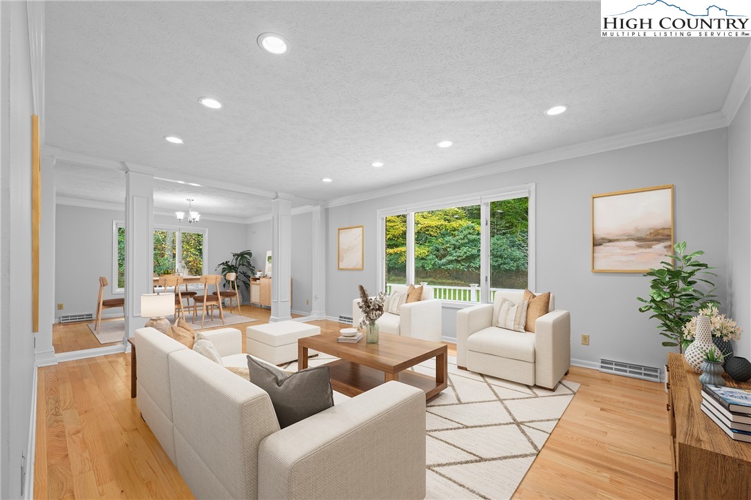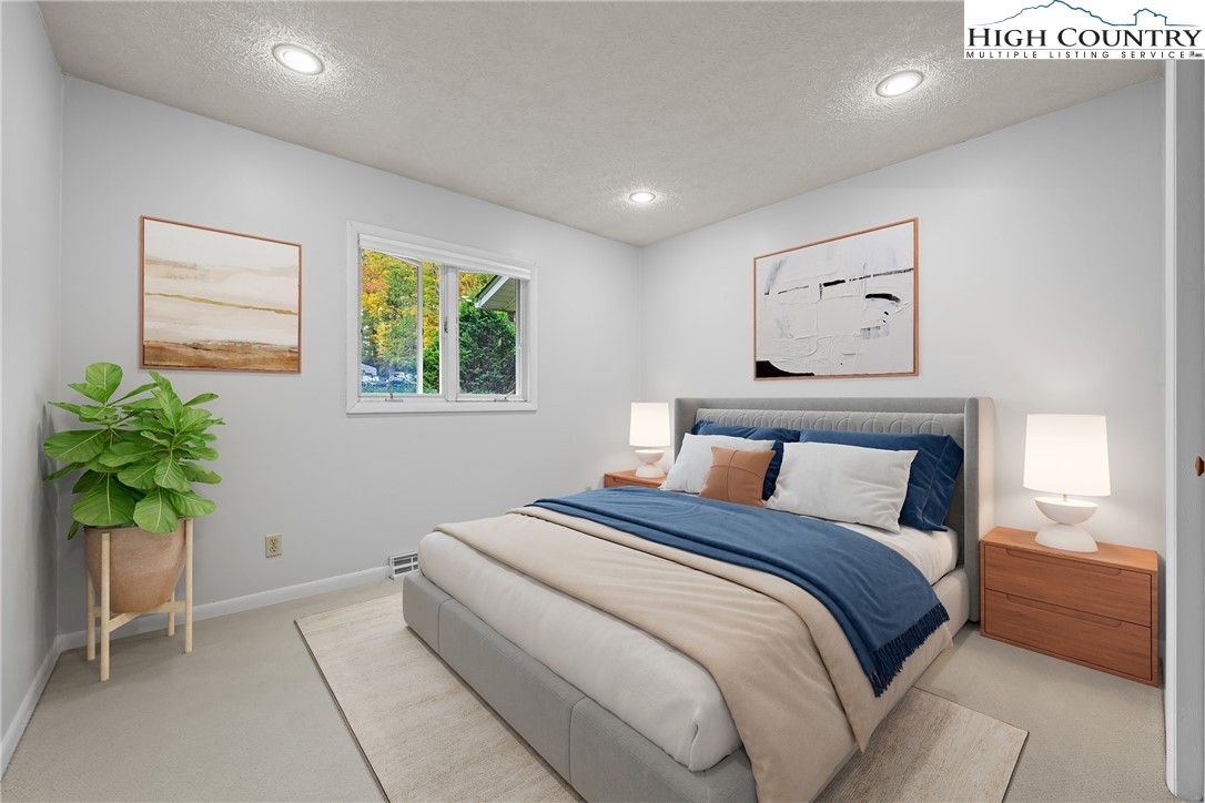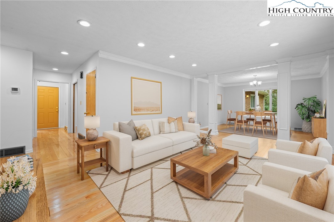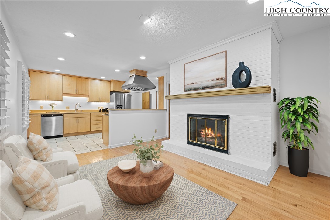 Unbeatable location in Boone! Situated directly across from New Market Center and just minutes from Appalachian State University, Downtown Boone, Watauga High School, and the hospital, this beautiful home offers both convenience and comfort in the sought after Hardin Park School District. Enjoy one level living with a refreshed main level designed for everyday ease. The updated kitchen features high end appliances including a gas range, solid surface counters, microwave drawer, and generous cabinetry for ample storage. A cozy sitting room with a fireplace sits just off the kitchen, and the spacious living and dining rooms provide an inviting layout for gatherings and entertaining. The primary bedroom includes an en suite bathroom, accompanied by two additional bedrooms and a full bath on the main level. A mudroom leads to the oversized two car garage and includes a convenient laundry area and half bath. Downstairs offers exceptional versatility with a large bonus room, additional living area, and another garage ideal for hobbies such as woodworking, car restoration, or workshop. The tax record lists the home as 4 bedrooms, though there is no egress directly from the downstairs bonus room. This home features natural gas heat and updated central air installed in 2023. Some photos have been virtually staged to show the inviting potential. Located in the highly desirable University Village neighborhood, this property combines practicality, comfort, and proximity to everything Boone has to offer!