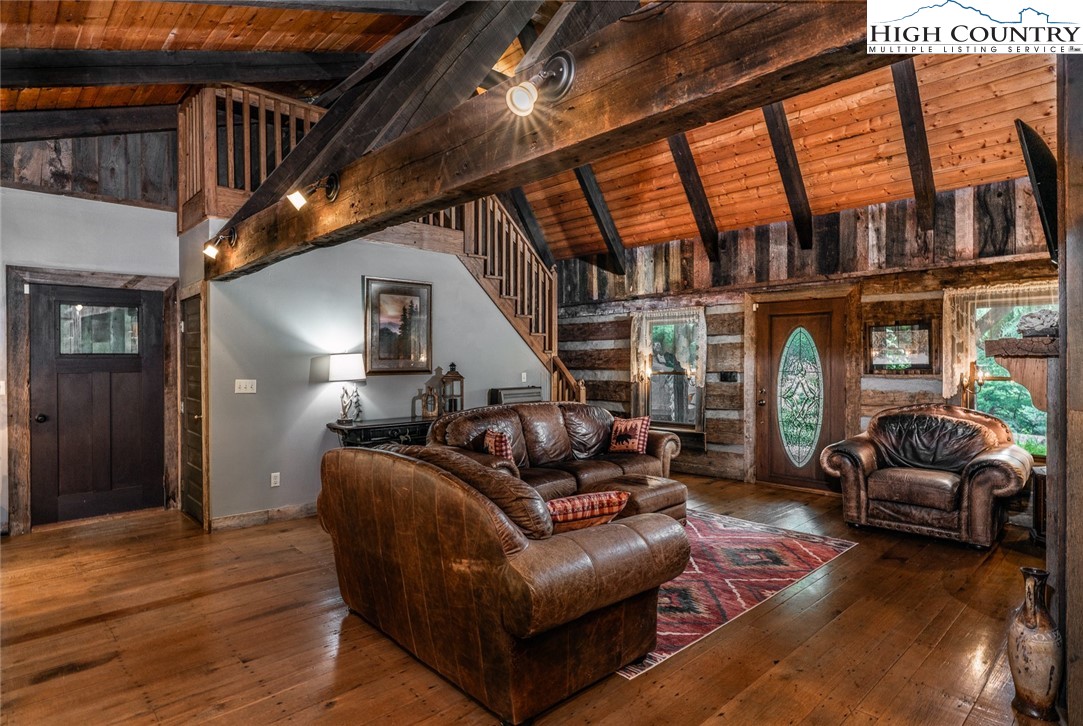In the heart of Avery County, beyond the trappings of ordinary architecture lies a residence unlike any other, a home and living chronicle, meticulously kept grounds that includes a pond, abundant with aquatic life. Constructed from reclaimed log cabins and barns gathered from across the nation. Every beam, floorboard and stone carries a story, blending centuries-old heritage with refined comfort. This residence is a rare fusion of preservation and innovation, a retreat, a celebration of heritage and an architectural work of art. The Appalachian cabin: The dining room and kitchen are anchored by hand-hewn logs salvaged from an 1840s North Carolina cabin, where settlers once gathered around a stone hearth after long days in the fields. The cabin features multiple flex spaces to comfortably host family and friends. Underfoot, hand-planed floorboards from the same cabin creak with history. The great room showcases towering beams reclaimed from a historic Gap Creek, Tennessee structure, while continuous stonework, sourced from Linville River, was carefully hand-laid without breaking a single piece. The primary suite features native black cherry and maple floors milled in Newland, N.C., and the back patio boasts a handcrafted granite picnic table, traded for a rare gem by the home’s builder. The owner will sell this home separate from MLS 257302. New PIN and deed will be provided at closing.