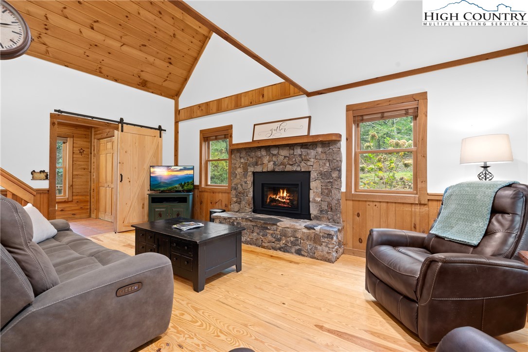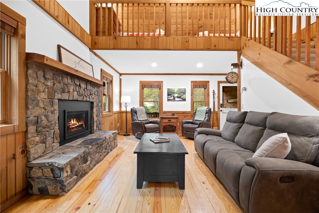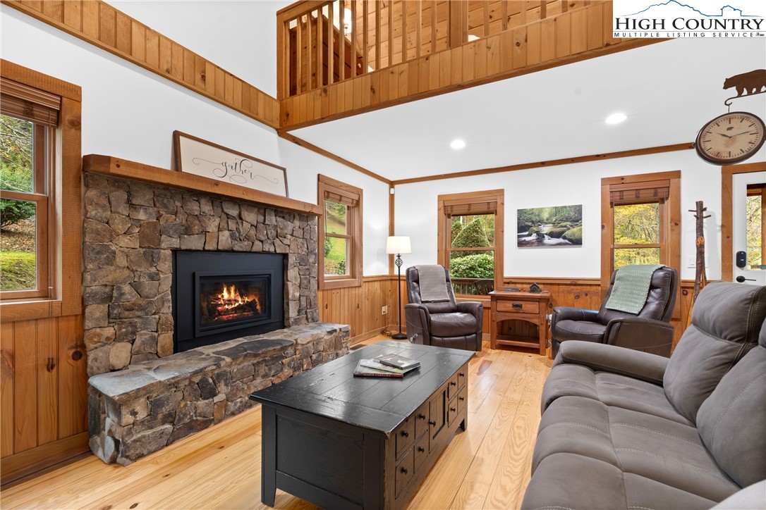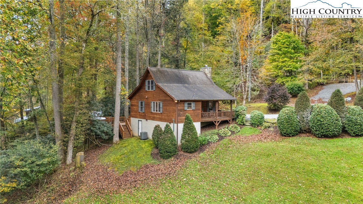 Nestled in the serene subdivision of “Little Bavaria”, this beautifully updated 2 bedroom/2 bath cabin offers both tranquility and modern living on nearly 1.77 acres of picturesque land. With meticulous attention to detail, this home has been thoughtfully renovated to blend style with functionality. Key features include a beautifully maintained community pond as well as your own private mountain stream on the property. The spacious yard is perfect for enjoying outdoor activities and offers an amazing view while relaxing on the front porch! Inside, you’ll find refinished wood floors(2023) that lend warmth and character to the home. The new Kitchen(2023) has been tastefully updated with new cabinets, counters and backsplash, as well as new appliances, creating a modern mountain experience. In the living room, a welcoming oversized stone fireplace has been converted to gas, offering coziness as well as convenience. The cabin’s newly installed HVAC system(2022) promises year-round comfort, along with a new roof, gutters, gutter guards, and chimney cap all replaced in 2018. Additional features include the encapsulation beneath the cabin offering a completely dry space, as well as a radon mitigation system installed giving peace of mind. Step outside to extensive new decking(2022) perfect for al fresco dining, or simply relaxing in the fresh mountain air. The addition of a hot tub(2023) creates the ultimate retreat for unwinding after a long day! Whether you're relaxing in the hot tub on a cool evening or enjoying friends and family by the fire pit, this cabin offers a delightful blend of comfort and modern living. Conveniently located just minutes to Boone. Make it yours today, and experience the charm and beauty of the fall foliage in “Little Bavaria”!