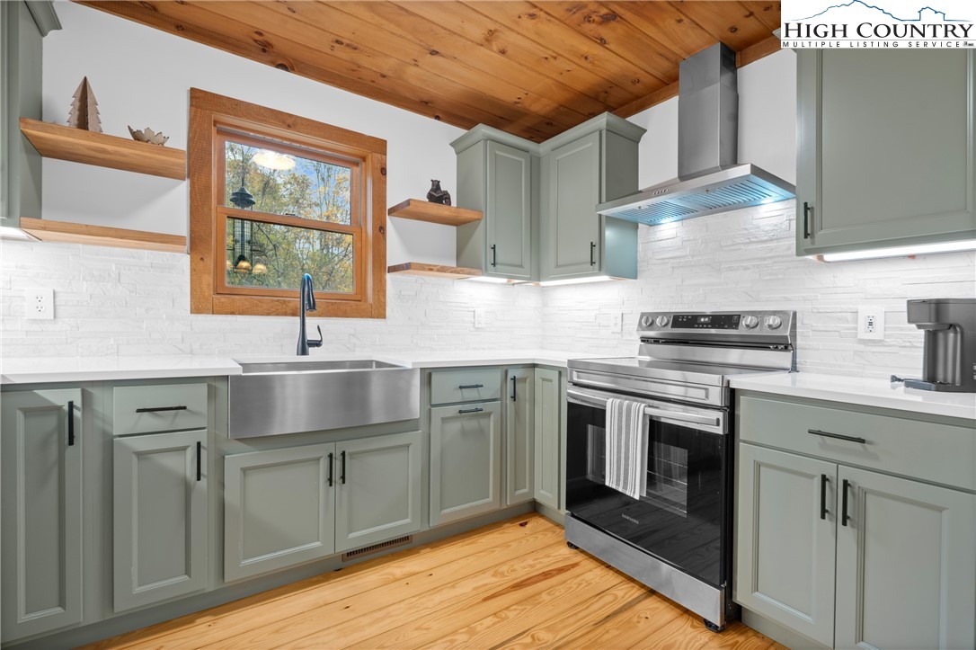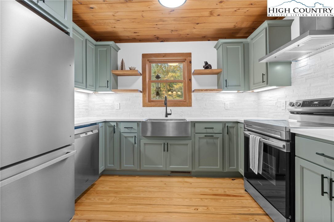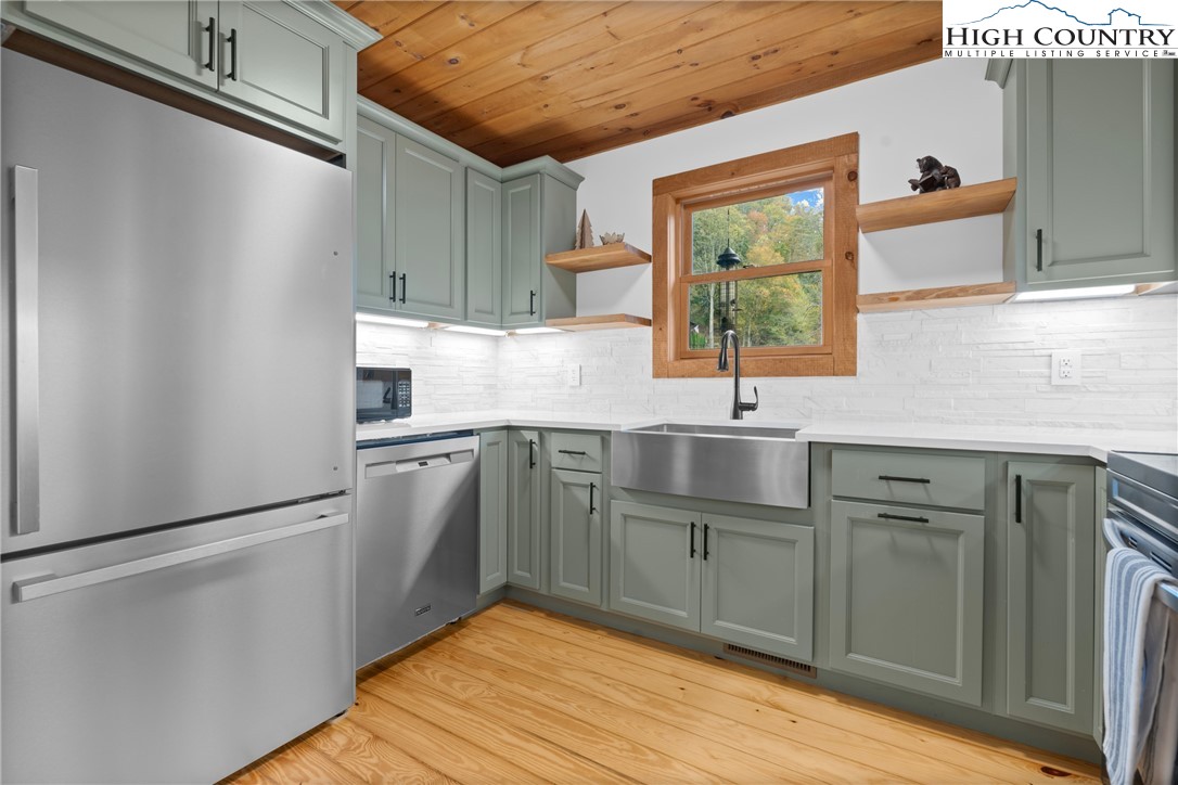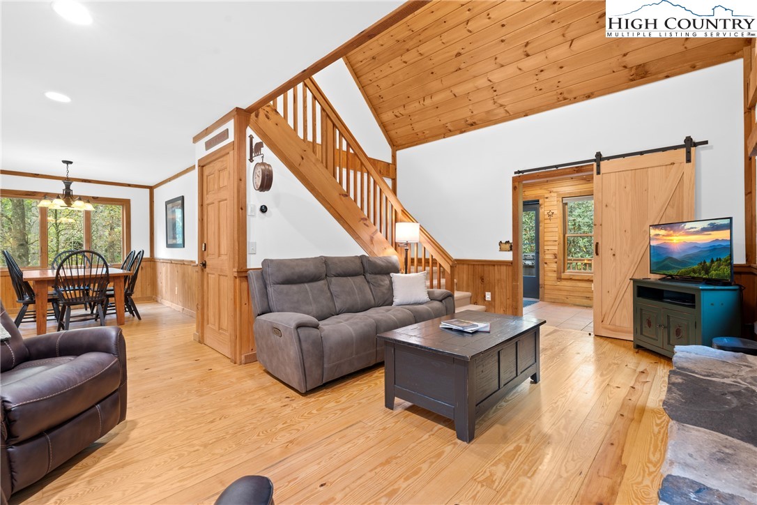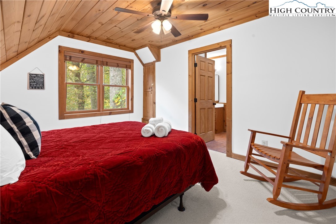 Nestled in the serene subdivision of “Little Bavaria”, this beautifully updated 2 bedroom/2 bath cabin offers both tranquility and modern living on nearly 1.77 acres of picturesque land. With meticulous attention to detail, this home has been thoughtfully renovated to blend style with functionality. Key features include a beautifully maintained community pond as well as your own private mountain stream on the property. The spacious yard is perfect for enjoying outdoor activities and offers an amazing view while relaxing on the front porch! Inside, you’ll find refinished wood floors(2023) that lend warmth and character to the home. The new Kitchen(2023) has been tastefully updated with new cabinets, counters and backsplash, as well as new appliances, creating a modern mountain experience. In the living room, a welcoming oversized stone fireplace has been converted to gas, offering coziness as well as convenience. The cabin’s newly installed HVAC system(2022) promises year-round comfort, along with a new roof, gutters, gutter guards, and chimney cap all replaced in 2018. Additional features include the encapsulation beneath the cabin offering a completely dry space, as well as a radon mitigation system installed giving peace of mind. Step outside to extensive new decking(2022) perfect for al fresco dining, or simply relaxing in the fresh mountain air. The addition of a hot tub(2023) creates the ultimate retreat for unwinding after a long day! Whether you're relaxing in the hot tub on a cool evening or enjoying friends and family by the fire pit, this cabin offers a delightful blend of comfort and modern living. Conveniently located just minutes to Boone. Make it yours today, and experience the charm and beauty of the fall foliage in “Little Bavaria”!