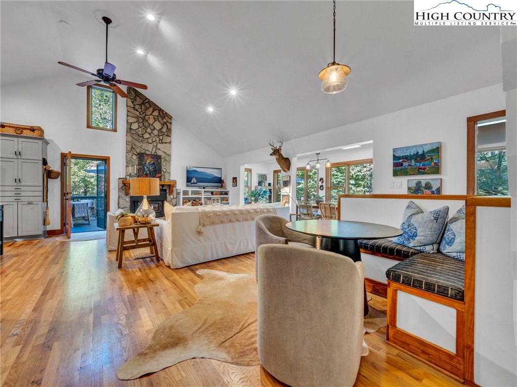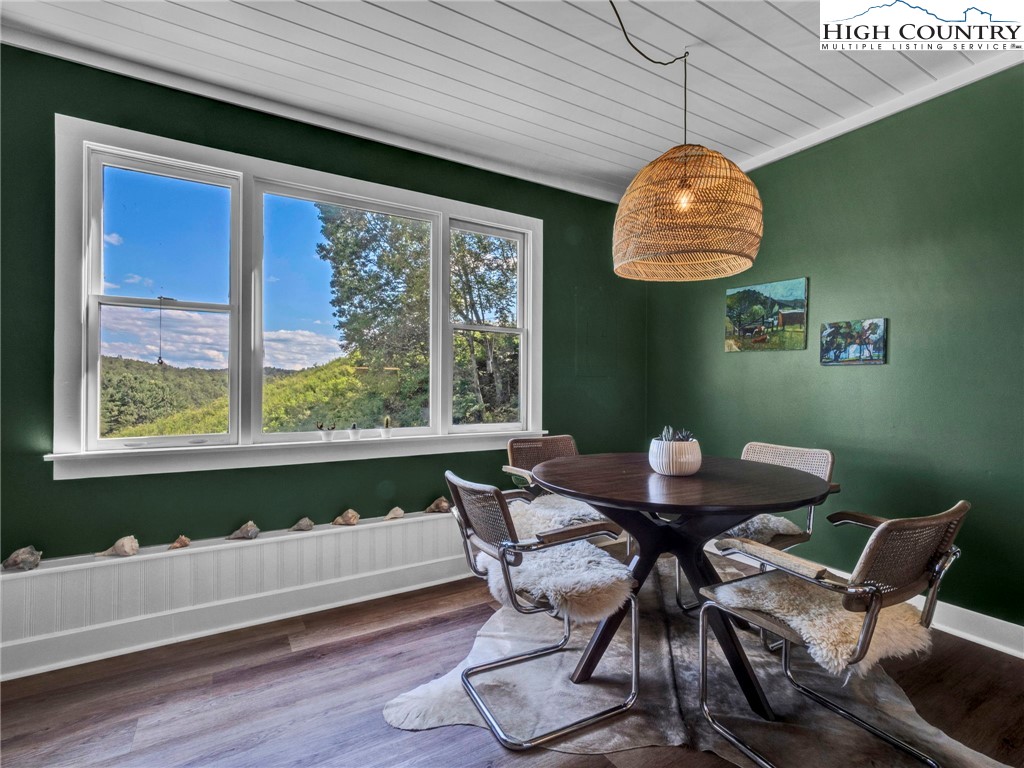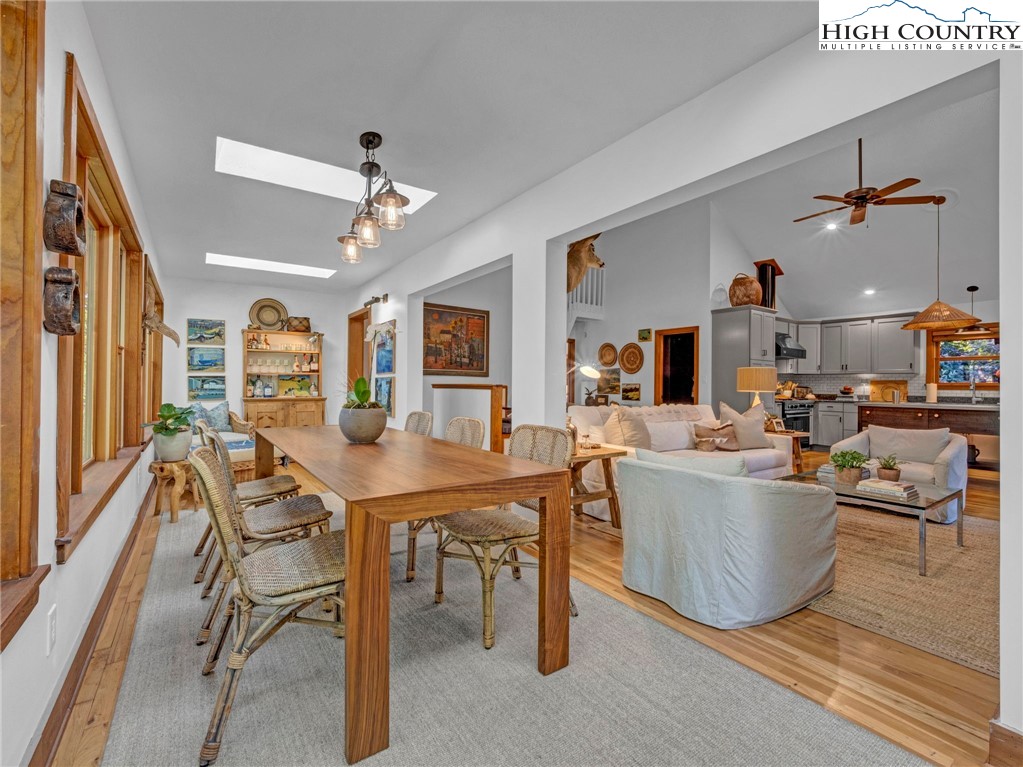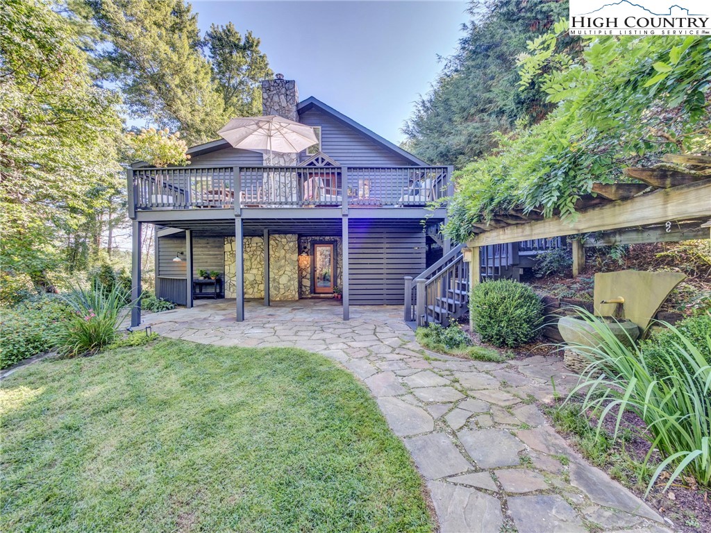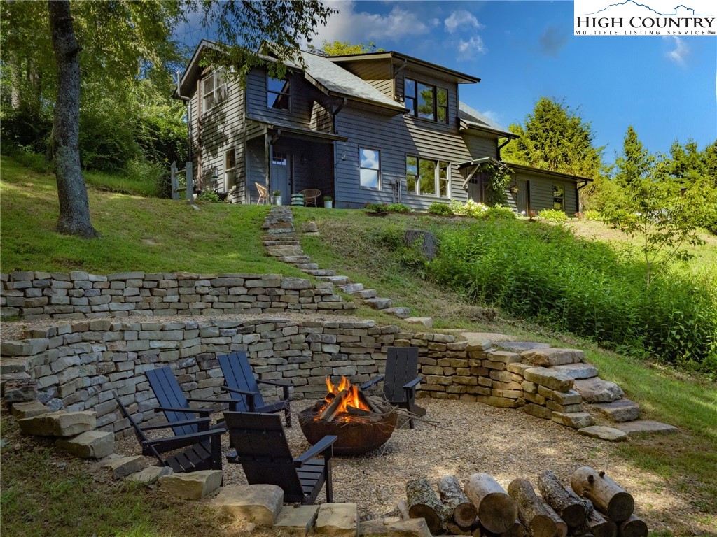 Motivated seller ready for their next move- thoughtfully priced for a timely sale. Discover a rare opportunity just minutes from Boone, the Blue Ridge Parkway, Ashe County, and the South Fork of the New River—two well-appointed homes on 3.6 acres with mountain and pastoral views. Whether you’re searching for a property to host extended family, welcome guests, generate rental income, or create a small farmstead, this versatile estate offers it all. The 3BR/2.5BA primary residence combines modern updates with mountain character. Vaulted ceilings and generous windows fill the living and dining areas with natural light, while a new custom oak island and Viking appliances elevate the kitchen. The primary suite features an adjoining office/sitting area, a cozy fireplace, a steam shower, and a new leathered granite vanity. The walk-out lower level offers flexible living with two additional bedrooms, a full bathroom featuring a whirlpool tub, a spacious den, laundry, and a fitness space. With its own covered patio and private entrance from the lower parking area, this level is ideal for multigenerational living or guests. Up the drive is a charming 1BR/1.5BA cottage, perched on the knoll with a two-car garage—perfect for guests, rental income, or caretaker housing. Recent improvements include a new roof, minisplit system, appliances, updated kitchen and bath, fresh flooring, and two cozy fireplaces (one on each level). Enjoy extensive decking, landscaping, stunning mountain vistas, and a welcoming fire pit gathering area. The acreage is well-suited for a mini-farm with a chicken coop, open pasture, and multiple building sites. Offered beautifully furnished with exclusions. Also, a Kubota tractor is available for purchase, making land care effortless. Over 4,440+ square feet across both homes, Fresh paint inside and out, Two-car garage plus additional parking. Convenient access to Boone amenities and High Country recreation. This property blends comfort, flexibility, and income potential—an inviting retreat where family, friends, and mountain living all come together.