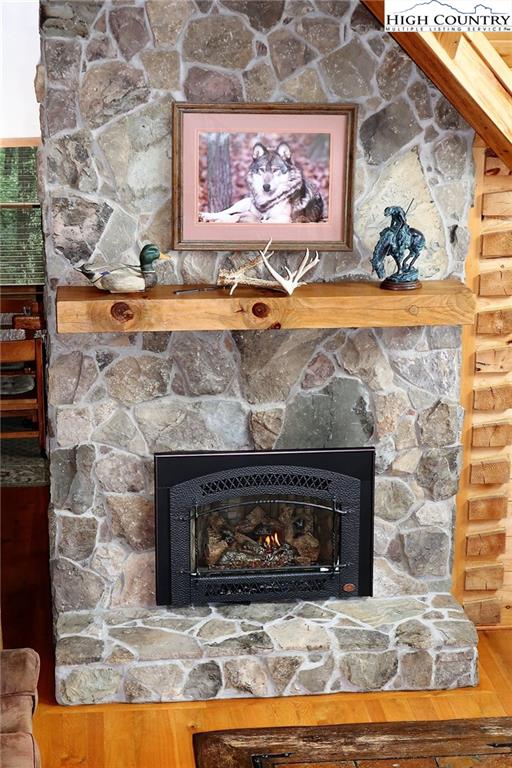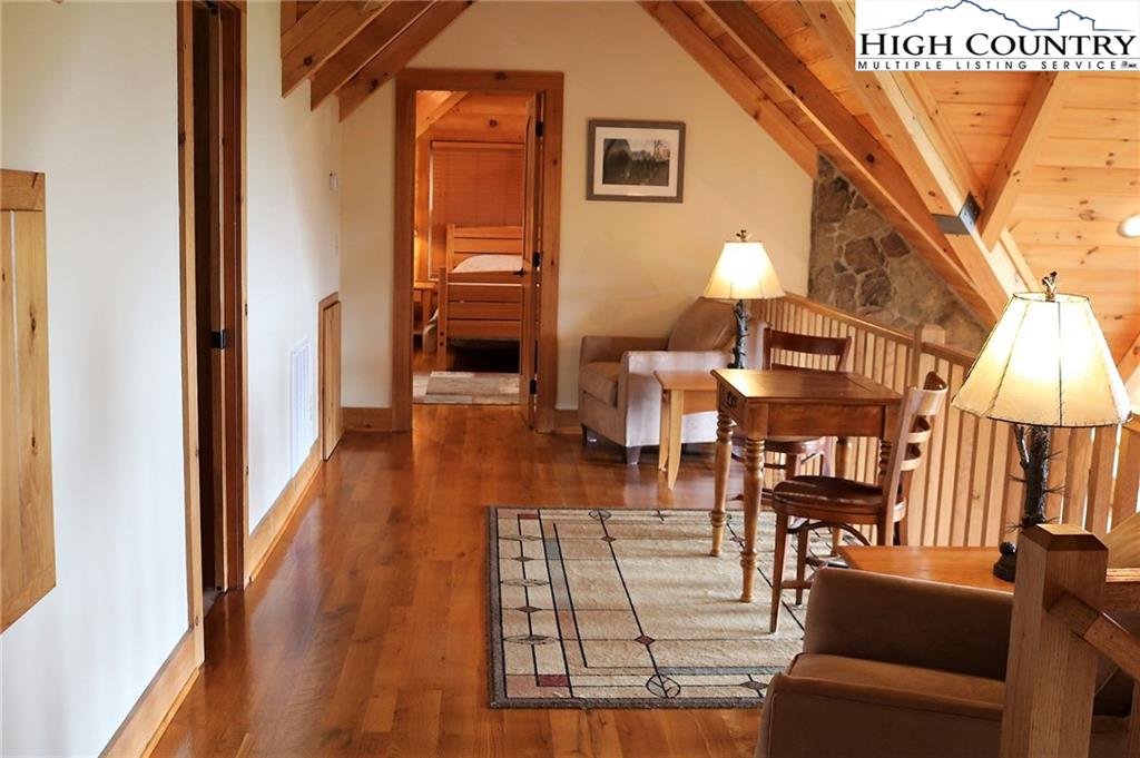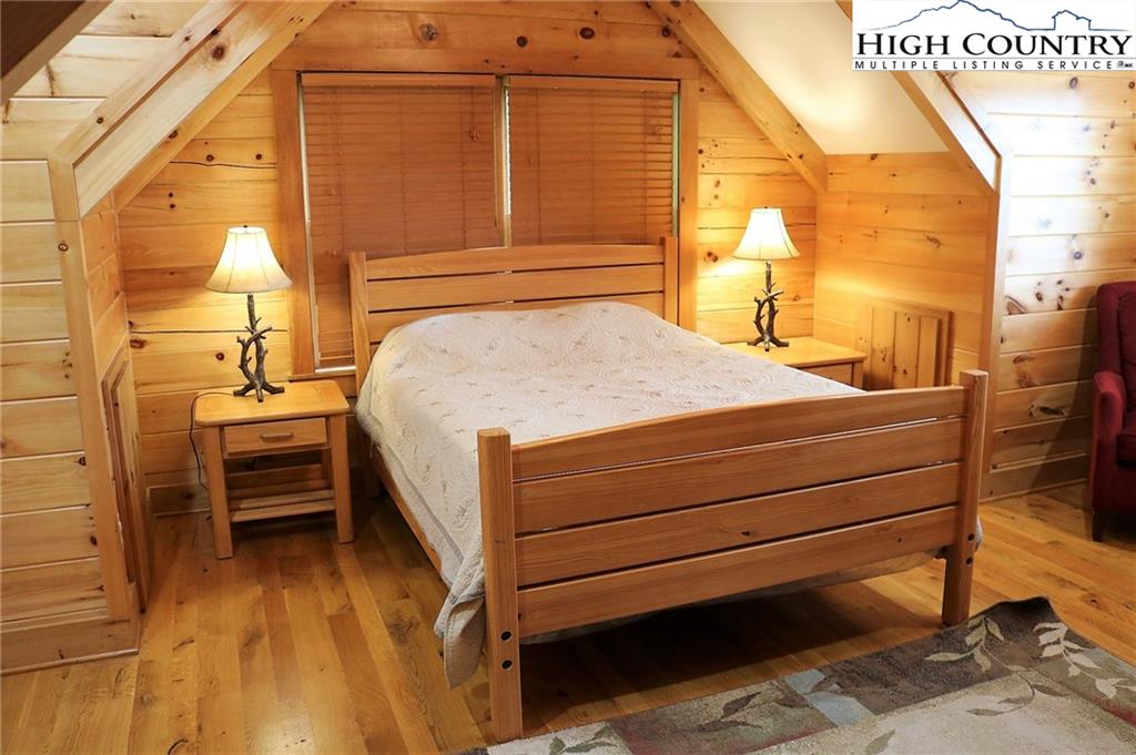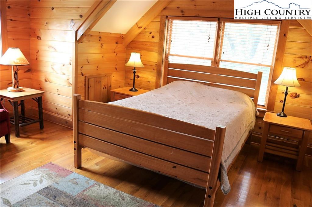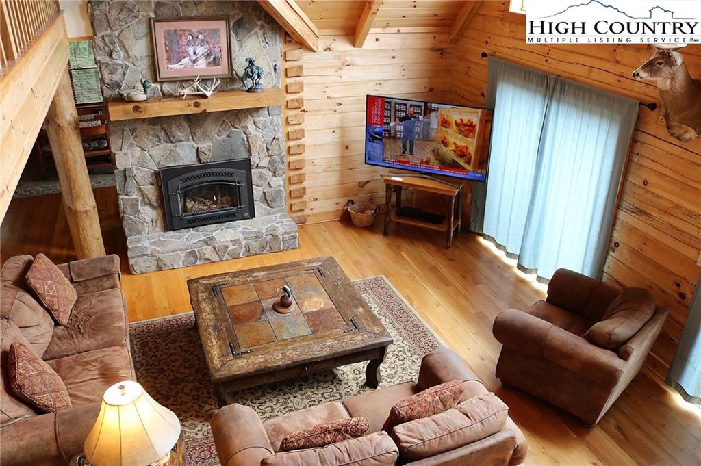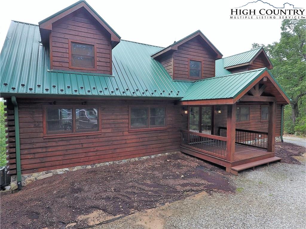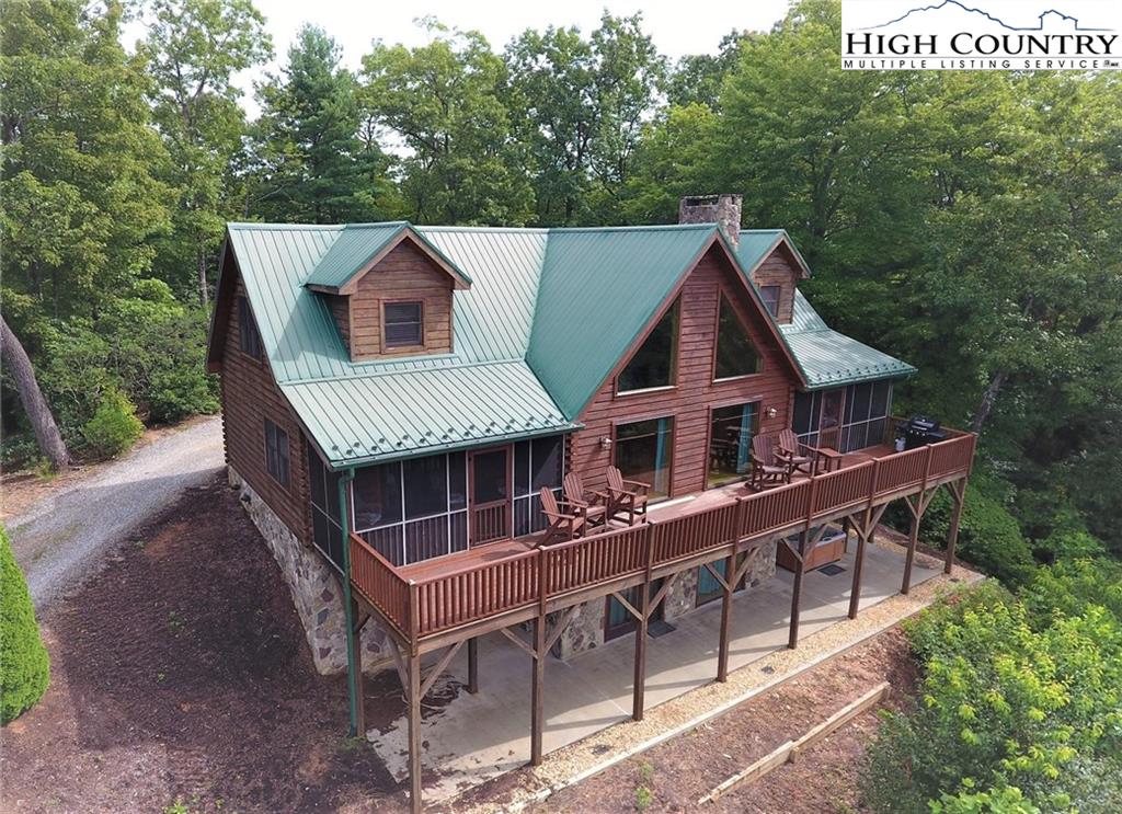 Extraordinary luxury furnished 3/2.5 log home with long range layered mountain views, vaulted ceilings, stone floor to ceiling fireplace with enclosed vented gas logs, hardwood flooring, 2 screened porches, kitchen/dining combo with granite counter tops and breakfast bar, and a full-length open deck overlooking the beautiful mountains. On the second level you will find 2 bedrooms, 1 full bath, and a loft sitting area. The finished basement is home to the huge home theater room with 100 TV screen, surround sound system , and over sized chairs, shuffleboard game table. game room with pool table, a bonus room with Foosball table, large sitting area with flat screen HD TV, and hot tub out on the patio. Community amenities include: gated entrance, paved road system, 2 fishing ponds. seasonal pool, family pavilion for socials and parties, playground, and miles of trails for hiking, horseback riding, or jogging. Just across the road from the subdivision entrance is an access point to Elk Creek, a North Carolina State designated trout fishing stream.