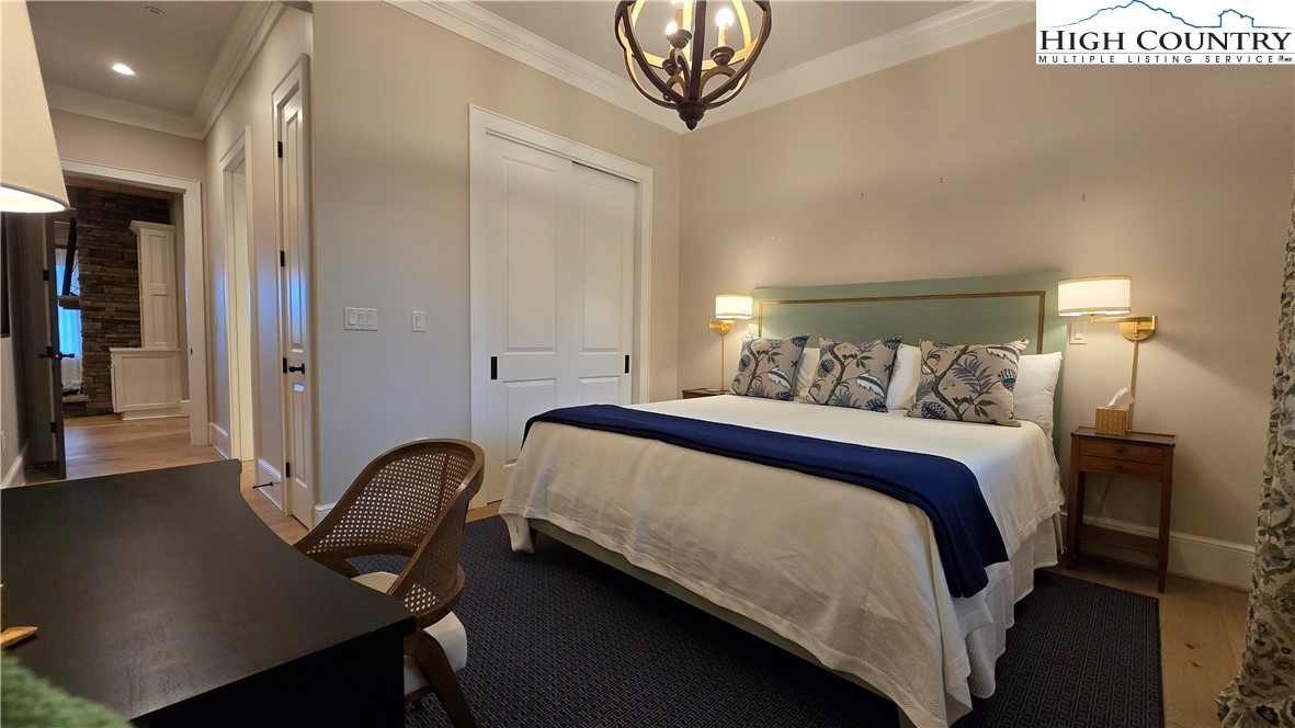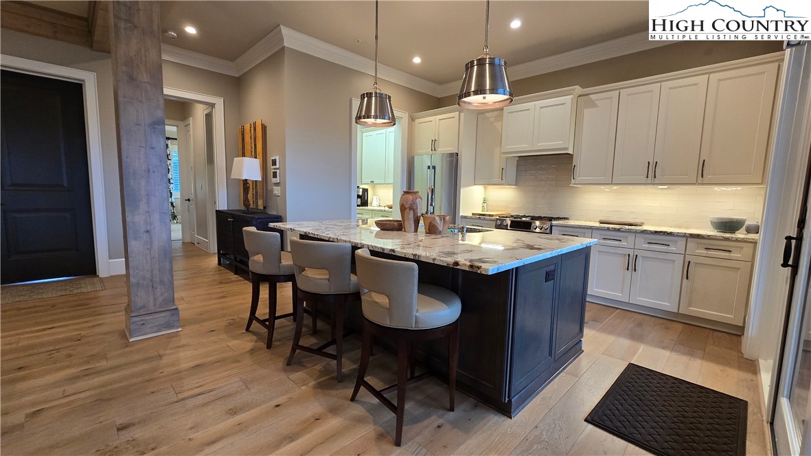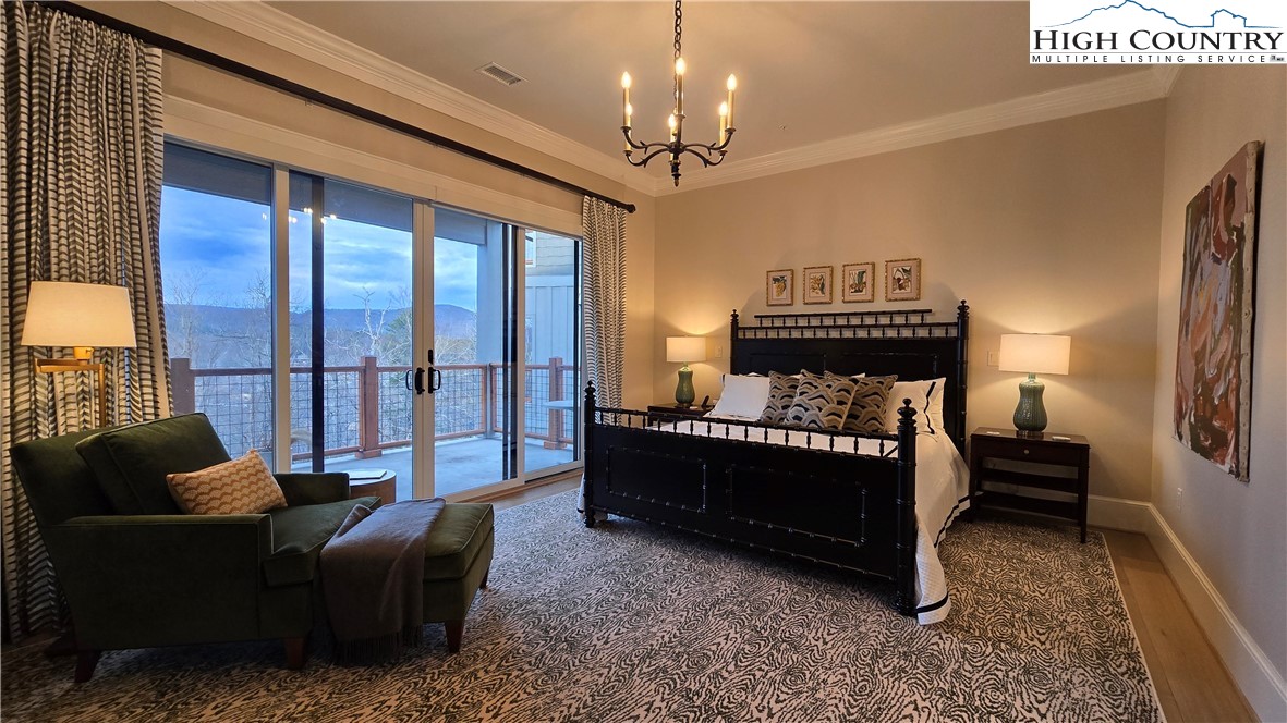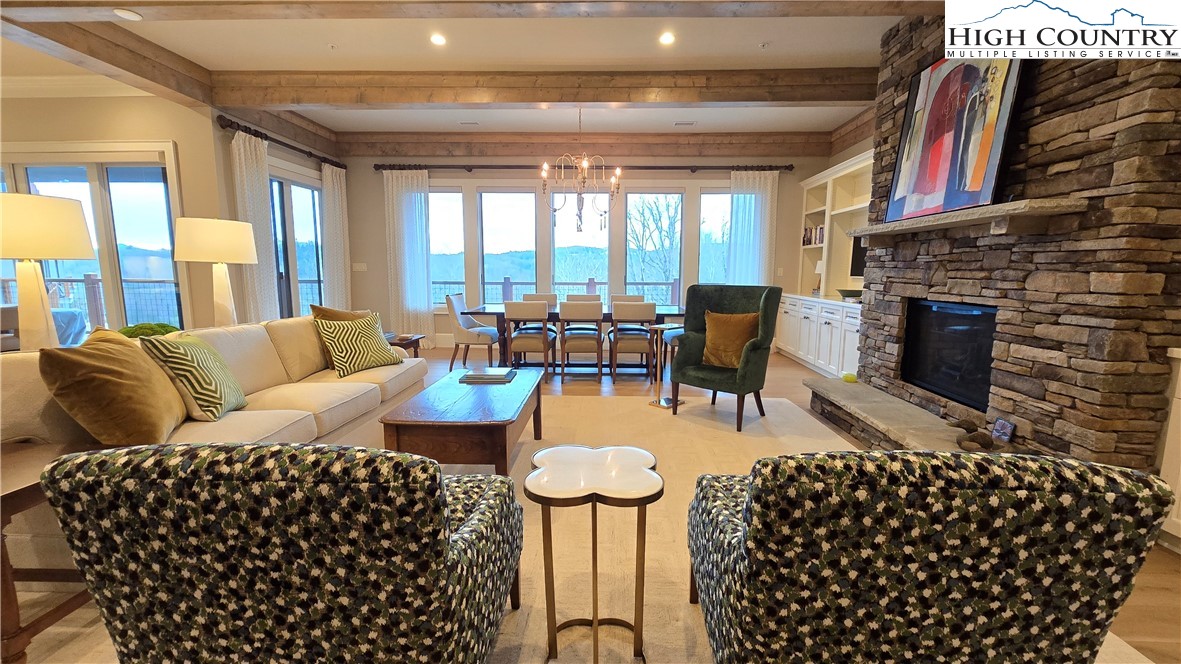 Welcome to refined luxury at Chestnut at Blowing Rock, where timeless mountain charm meets modern elegance. This stunning luxury condominium with great mountain views offers an exceptional lifestyle in one of North Carolina’s most beloved mountain towns. Step inside to an open, airy living space highlighted by spacious high ceilings, heavy beams, natural finishes, and a lovely stone fireplace. Expansive windows flood the home with light while perfectly framing breathtaking views of the Blue Ridge Mountains and Moses Cone Memorial Park. The gourmet kitchen is a true showstopper, featuring high-end appliances, custom cabinetry and finishes —ideal for both everyday living and entertaining. Just beyond, a spacious covered balcony with built-in grilling area invites you to relax with morning coffee or host evening gatherings while enjoying fantastic mountain and Moses Cone Manor views. This beautifully designed residence offers three spacious bedrooms, each with its own ensuite bath—perfect for family and guests alike. The primary suite is a private retreat, complete with a luxurious bath, large vanity, large closet and direct access to a covered terrace where you can savor the fantastic mountain views and enjoy the cool mountain breezes. The heated, oversized two-car garage and storage room are easily accessed by the spacious elevator that opens just steps from your front door. Viewings are offered exclusively by appointment.