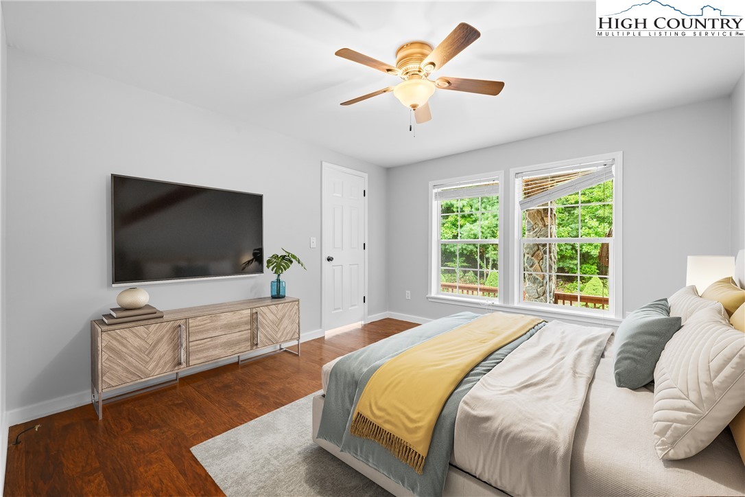 Presenting a meticulously cared-for duplex set on a sprawling 1.361-acre lot, perfectly positioned between the vibrant towns of Boone and Wilkesboro. This unique property is just an hour and fifteen minutes from Winston-Salem and mere moments from the breathtaking vistas of the Blue Ridge Parkway, offering an ideal combination of privacy, accessibility, and scenic tranquility. Surrounded by a lush lawn and mature wooded borders, the duplex encompasses two spacious units, each designed for maximum comfort and versatility. *Washers and dryers do not convey. The upper-level unit boasts 4 bedrooms and 2 bathrooms, (2,128sq ft) with a magnificent wrap-around deck—partially covered for year-round enjoyment (2589 sq ft). Step inside through elegant french doors to a large living and dining area. The impressive kitchen, conveniently located in the center of the unit, boasts stunning tiled countertops, tiled floors, ample counter space, skylights providing natural light and stainless appliances for culinary enthusiasts to enjoy. The adjacent cozy family room offers a stone wood-burning fireplace and abundant natural light. Additional features include good size bedroom closets, hardwood and tile floors throughout and a luxurious primary bathroom with an oversized tub, ceramic tile shower, and dual vanities. The primary bedroom has space for an array of creative options and features a custom-built closet. The second renovated bathroom is conveniently located by the other bedrooms and living space. All rooms are equipped with ceiling fans. The interior stairs lead to direct access to a workshop, storage area, and a two-car garage. The lower-level unit, measuring 1,467 square feet, offers two large bedrooms and one well-appointed bathroom. Currently leased through March 31, 2026, with an option to vacate on 30 days’ notice, this unit is a highly attractive choice for investors seeking reliable returns. Bathed in natural light from abundant windows, both bedrooms are large enough to accommodate king-size beds and include additional office or study nooks. The spacious Jack and Jill bathroom features a substantial vanity, an expansive tile shower, and plenty of storage. Luxury plank vinyl flooring runs throughout, complemented by tiled surfaces in the kitchen and bath for durability and style. The kitchen offers ample prep space, cabinetry, and room for a kitchen island and dining area, making it a welcoming hub of the home. Both units are built for quiet living and energy efficiency, featuring high-quality insulation and individually metered propane, electric, and internet utilities, while sharing water and sewer for added value. All renovations and upgrades have been completed with proper permits, documentation available upon request for peace of mind. Whether you are searching for a move-in ready residence or a proven, well-maintained rental investment, this exceptional duplex offers lasting value, adaptability, and enduring privacy in a serene mountain setting—making it a true gem in North Carolina’s picturesque landscape.