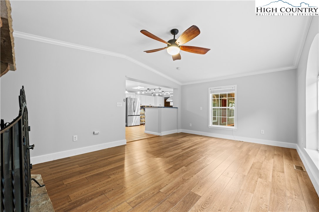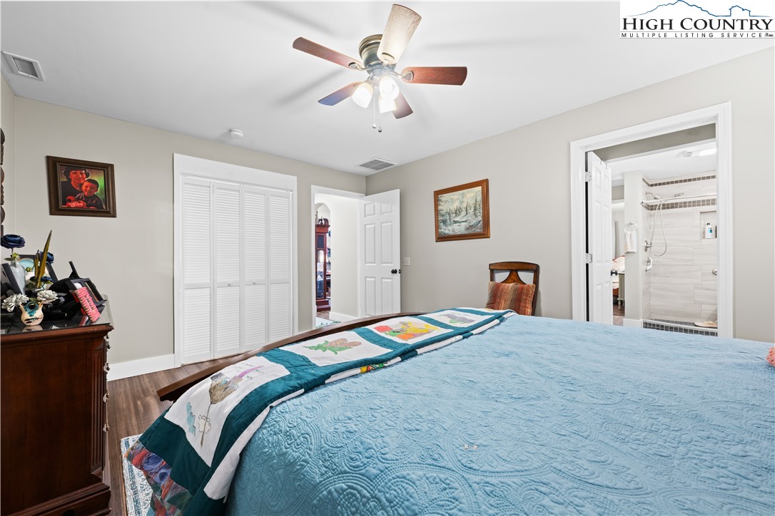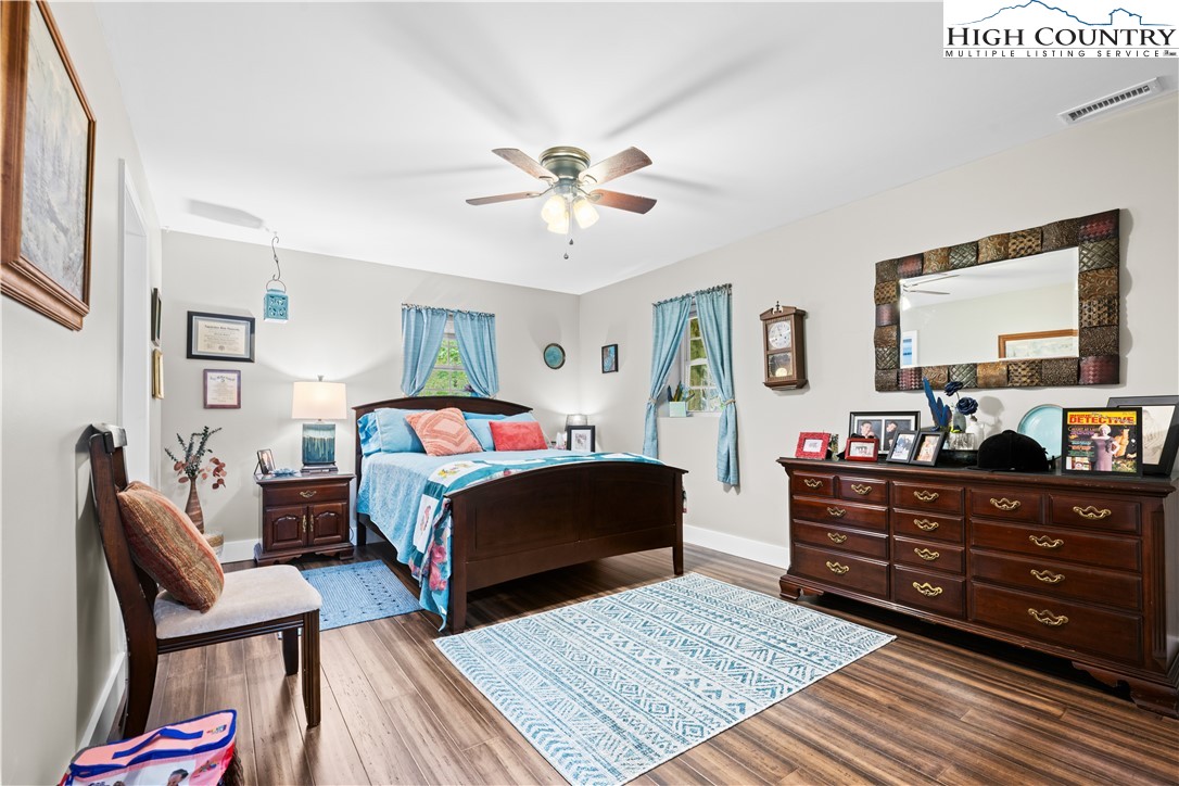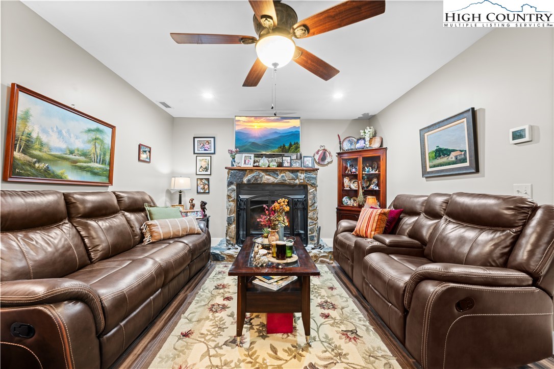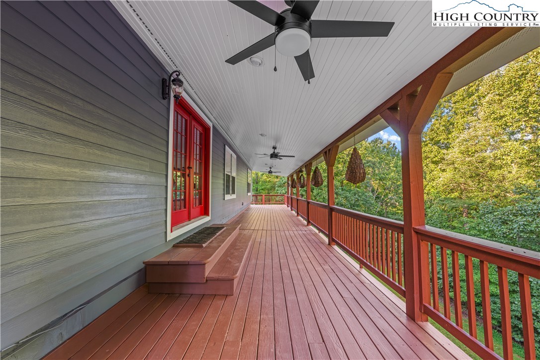 This magnificent 2nd level 4-bedroom, 2-bathroom home with large 2-bedroom and 1 bathroom1st level apartment, is ideally situated between Boone and Wilkesboro, just an hour and fifteen minutes from Winston-Salem. Nestled in a serene area near the Blue Ridge Parkway, this property offers peace and tranquility. The home and apartment offers many family living options or as an investment property. It sits on a beautifully maintained 1.361-acre lot, providing ample privacy with its manicured lawn and wood/forest border. The second level serves as the primary residence, featuring four bedrooms and two bathrooms. The first level offers a versatile living space that can function as a guest apartment or extended family living options. There is an with an interior staircase to the garage, interior workshop and lower deck only. The upper level boasts a magnificent wrap-around deck (2589sq ft). The covered section spanning the back if the upper unit is brilliant, for entertaining in any weather. Access to the deck from the house features a set of french-doors. A welcoming entrance and foyer lead to the spacious living room and dining room, adjacent to the impressive kitchen. The kitchen is designed to accommodate social gatherings of family and friends. Off the kitchen, a cozy family room features a stone, wood-burning fireplace and large windows that fill the space with natural light. The primary bedroom on the second level offers a custom-made closet, hardwood floors, and a 9'x12' bathroom with tub, separate ceramic tile shower, tile floors, a secluded commode, and two vanities. The three additional bedrooms on this level also feature hardwood floors. The second bathroom, newly renovated, is conveniently located off the living room and bedrooms. Interior steps connect to the workshop and storage area, the two-car garage and carport. The first-level apartment, is currently occupied, and the lease ends 03/31/2026, with option to vacate with a 30-day notice. The bright and roomy two-bedroom apartment includes a living room and propane fireplace, a kitchen with a dining area, and large bedrooms with a spacious Jack and Jill bathroom, featuring a large, tiled shower, ample closet space, and a vanity. There is plenty of storage, including a laundry room. The flooring throughout the apartment is luxury plank vinyl, and tile flooring in the kitchen. Outside, the first level features a covered terrace with stone masonry pillars and walls, offering a cool retreat on warm days and a sheltered spot to enjoy winter snow. The raised rock flower bed alongside the terrace is an added bonus. Beyond the patio, the deck extends the full length of the first level, with steps leading to the lawn and upper deck. Please note, the 2 units are not connected on the interior. The electric and internet utilities are separate for each level. Two 500-gallon propane tanks, one for each level, are leased and underground. Fireplace stove in the living room conveys and is not connected. The water well and septic serves the whole home. Permits for improvements and the 6-bedroom septic permit are available upon request. In addition, this fabulous home is constructed with 2x6 walls, stone masonry and R19 insulation making each unit energy efficient and structurally sound. Note: Lot 7 and 9 are combined and recorded as lot 9R. Plat provided.
