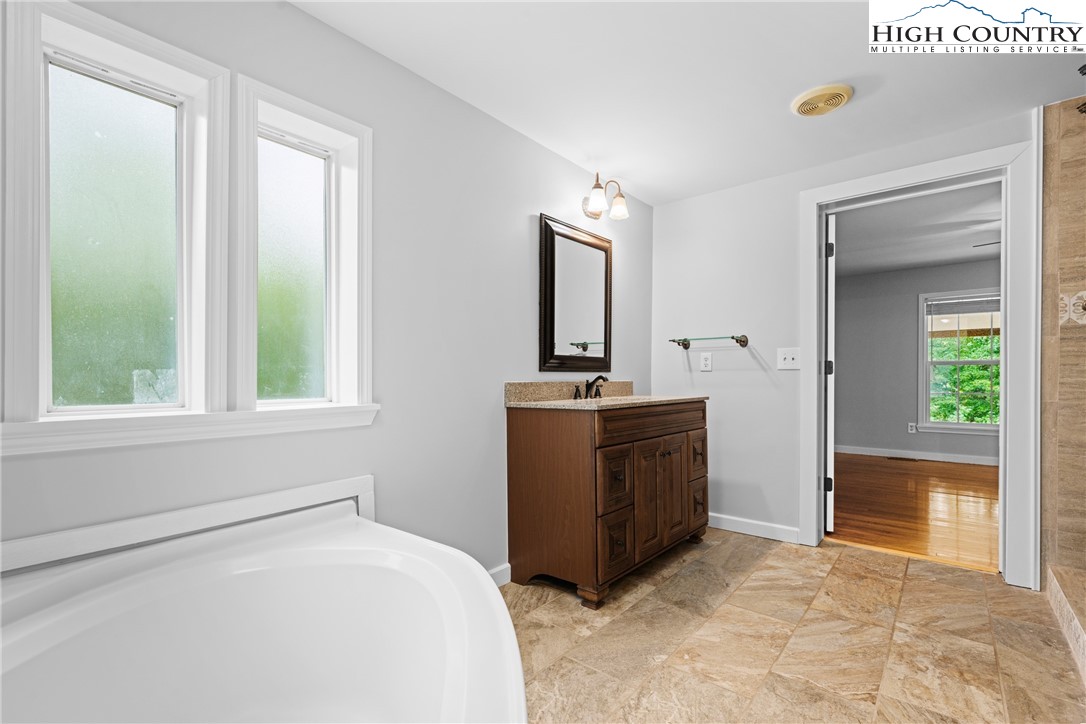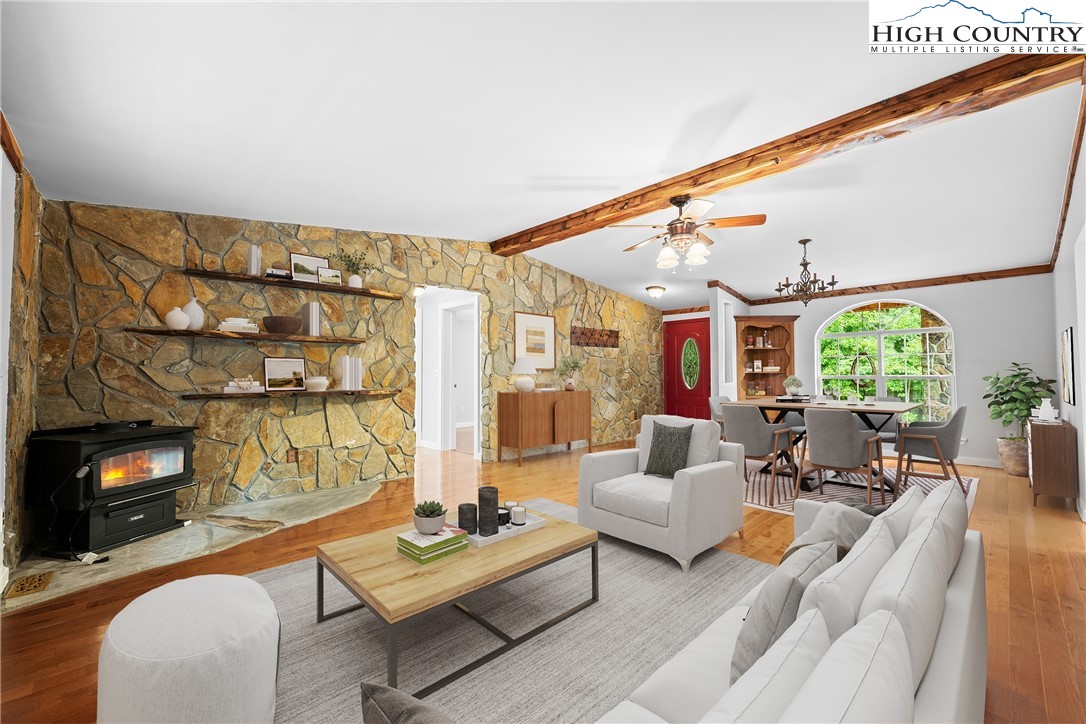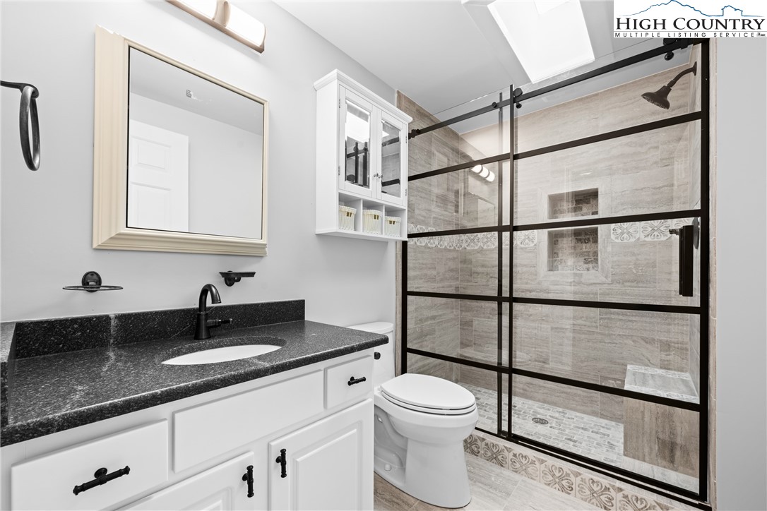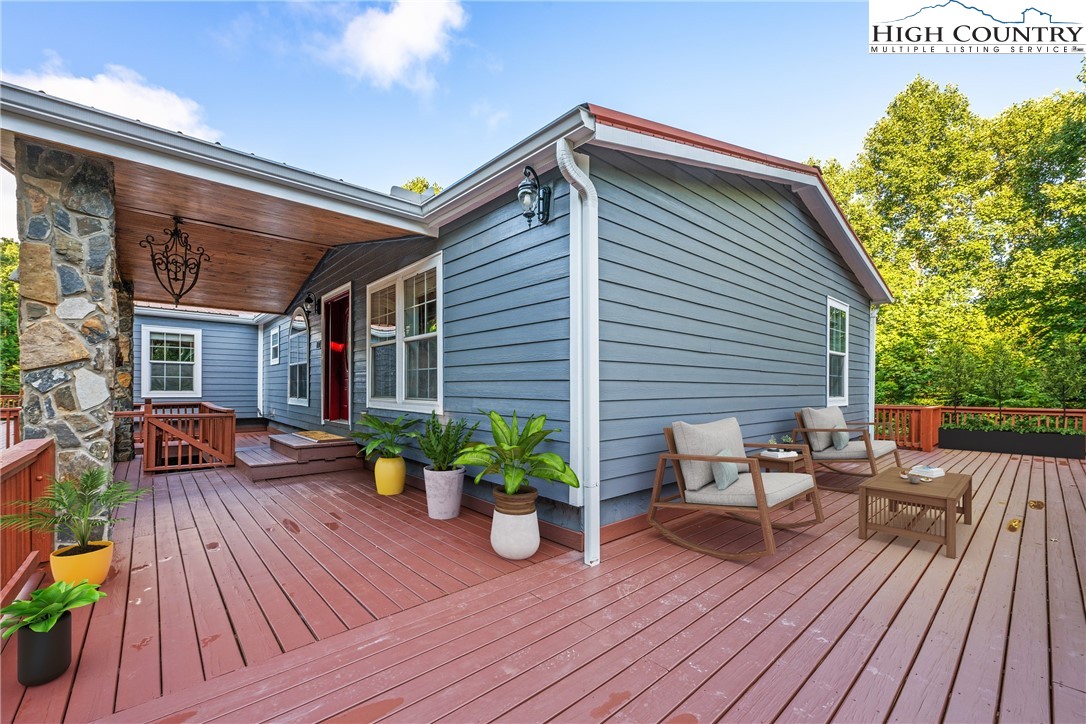 Presenting a meticulously cared-for duplex set on a sprawling 1.361-acre lot, perfectly positioned between the vibrant towns of Boone and Wilkesboro. This unique property is just an hour and fifteen minutes from Winston-Salem and mere moments from the breathtaking vistas of the Blue Ridge Parkway, offering an ideal combination of privacy, accessibility, and scenic tranquility. Surrounded by a lush lawn and mature wooded borders, the duplex encompasses two spacious units, each designed for maximum comfort and versatility. *Washers and dryers do not convey. The upper-level unit boasts 4 bedrooms and 2 bathrooms, (2,128sq ft) with a magnificent wrap-around deck—partially covered for year-round enjoyment (2589 sq ft). Step inside through elegant french doors to a large living and dining area. The impressive kitchen, conveniently located in the center of the unit, boasts stunning tiled countertops, tiled floors, ample counter space, skylights providing natural light and stainless appliances for culinary enthusiasts to enjoy. The adjacent cozy family room offers a stone wood-burning fireplace and abundant natural light. Additional features include good size bedroom closets, hardwood and tile floors throughout and a luxurious primary bathroom with an oversized tub, ceramic tile shower, and dual vanities. The primary bedroom has space for an array of creative options and features a custom-built closet. The second renovated bathroom is conveniently located by the other bedrooms and living space. All rooms are equipped with ceiling fans. The interior stairs lead to direct access to a workshop, storage area, and a two-car garage. The lower-level unit, measuring 1,467 square feet, offers two large bedrooms and one well-appointed bathroom. Currently leased through March 31, 2026, with an option to vacate on 30 days’ notice, this unit is a highly attractive choice for investors seeking reliable returns. Bathed in natural light from abundant windows, both bedrooms are large enough to accommodate king-size beds and include additional office or study nooks. The spacious Jack and Jill bathroom features a substantial vanity, an expansive tile shower, and plenty of storage. Luxury plank vinyl flooring runs throughout, complemented by tiled surfaces in the kitchen and bath for durability and style. The kitchen offers ample prep space, cabinetry, and room for a kitchen island and dining area, making it a welcoming hub of the home. Both units are built for quiet living and energy efficiency, featuring high-quality insulation and individually metered propane, electric, and internet utilities, while sharing water and sewer for added value. All renovations and upgrades have been completed with proper permits, documentation available upon request for peace of mind. Whether you are searching for a move-in ready residence or a proven, well-maintained rental investment, this exceptional duplex offers lasting value, adaptability, and enduring privacy in a serene mountain setting—making it a true gem in North Carolina’s picturesque landscape.