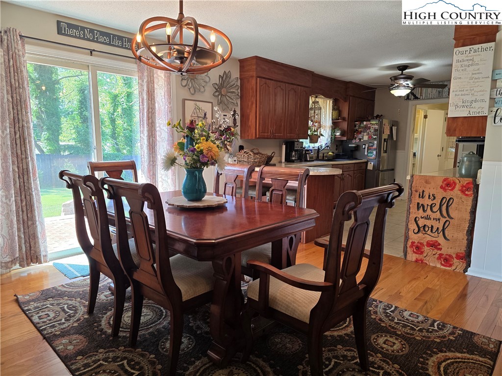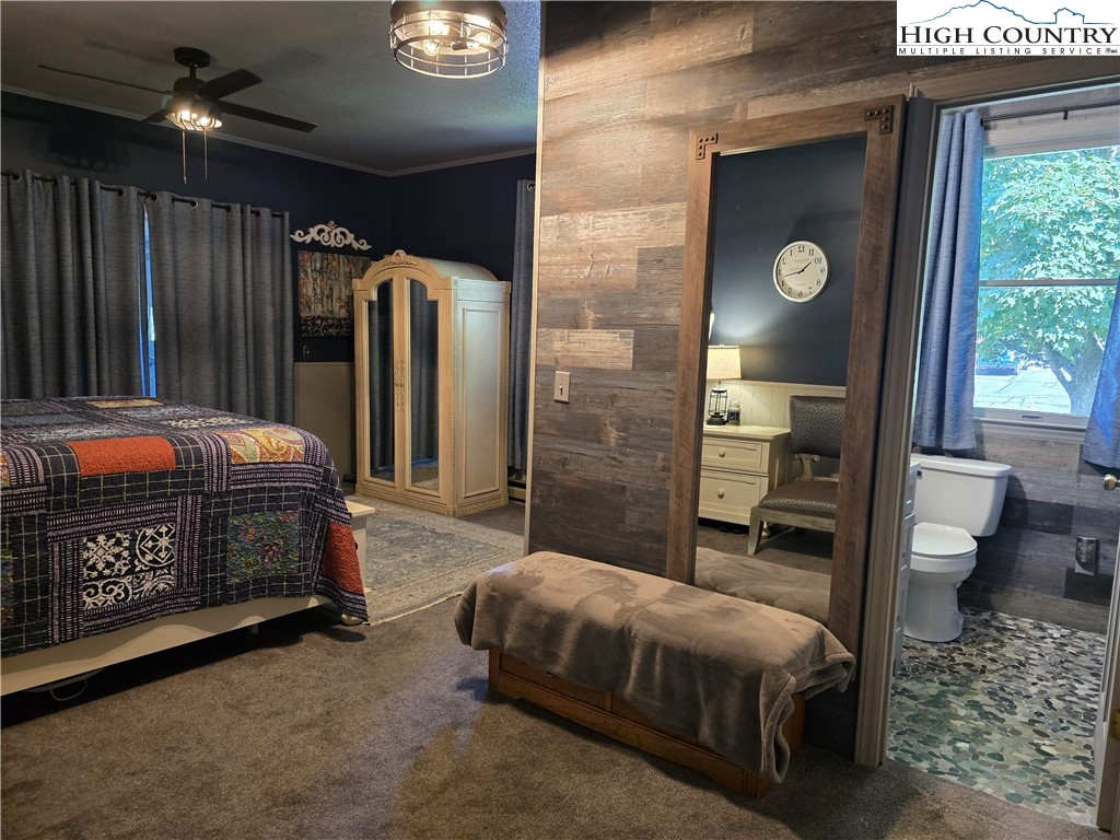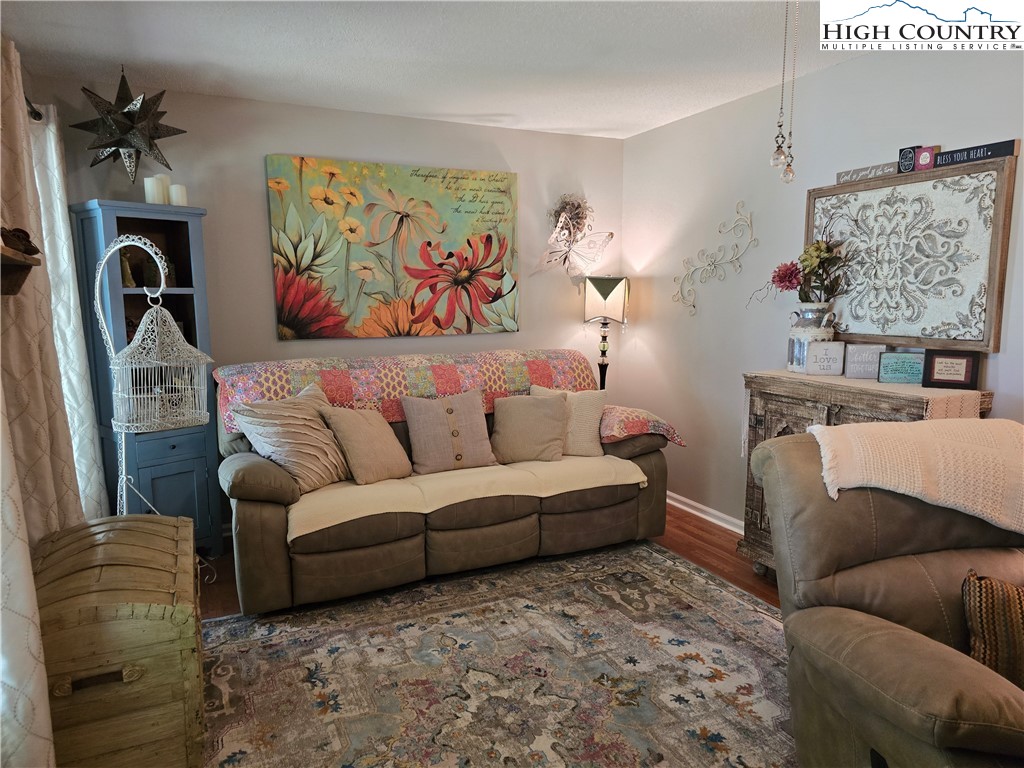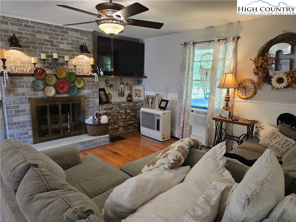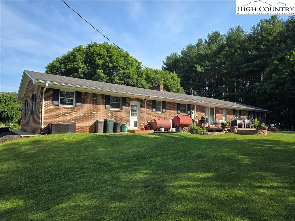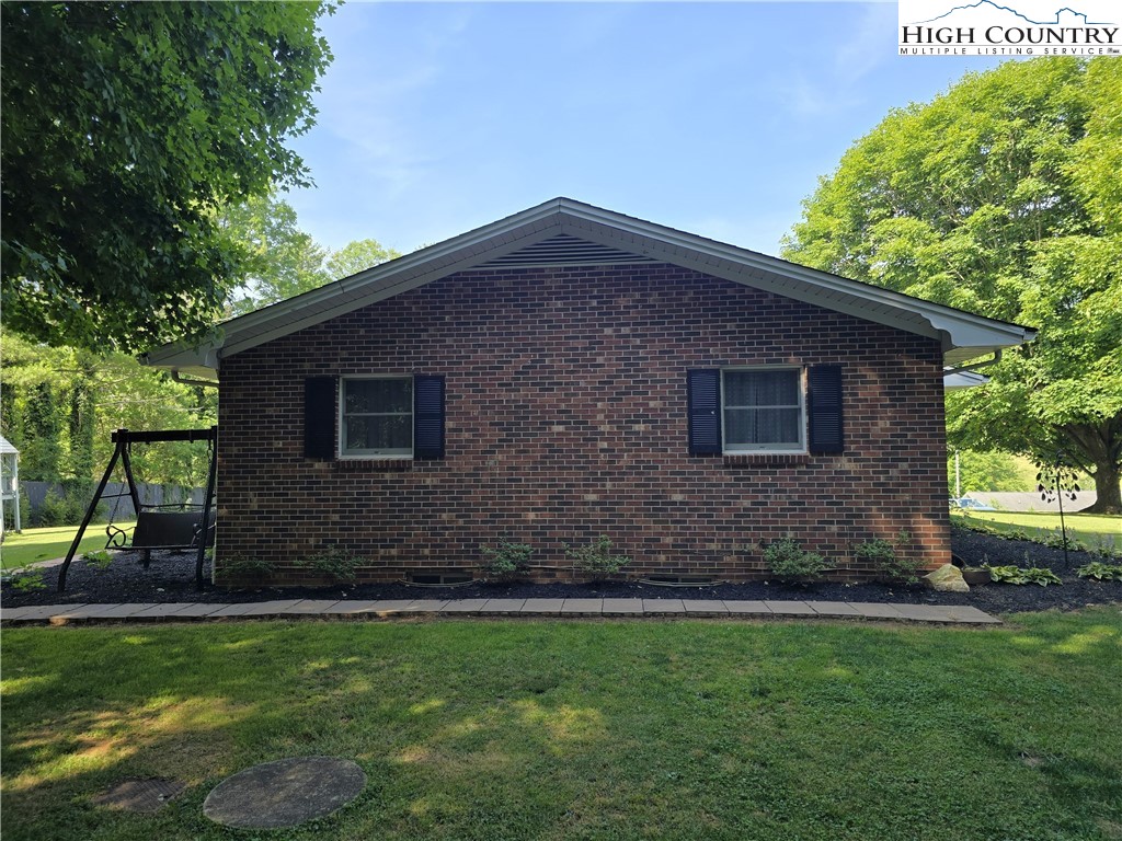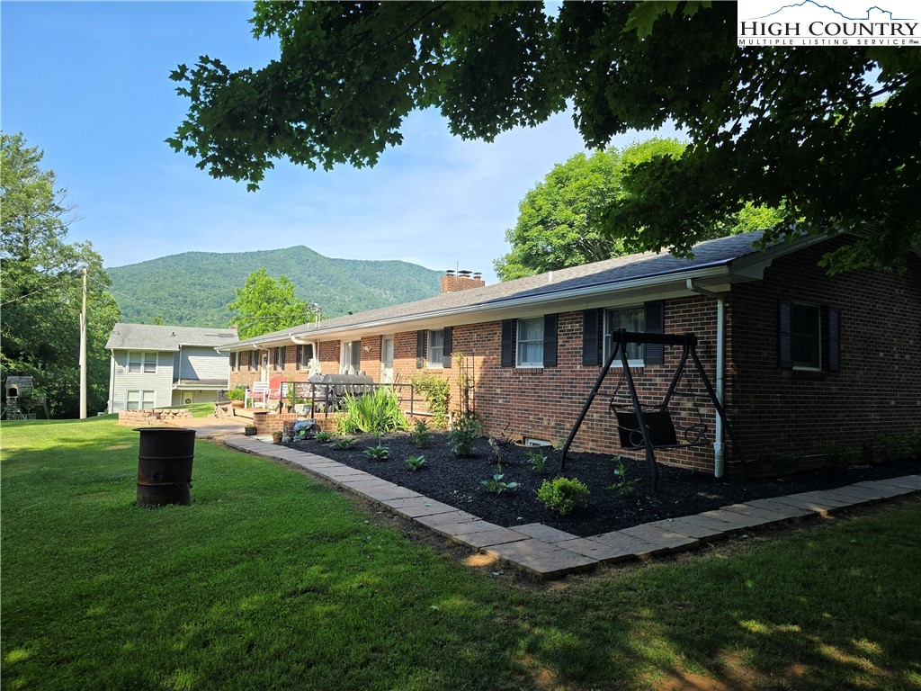 Beautiful partially remodeled and updated brick home tucked beneath the historic Mount Jefferson landscape, offering stunning mountain views and a highly desirable location near some of Ashe County’s most loved outdoor destinations and Downtown West Jefferson. Conveniently situated near the New River, New River State Park, and the Blue Ridge Parkway, this property provides easy access to recreation, scenic drives, and local attractions. Designed for comfortable single-level living, the main level features a welcoming formal living room entry, four spacious bedrooms, and three full bathrooms, including one with a relaxing soaking tub. The home offers a wonderful flow for everyday living and entertaining with an open-concept den highlighted by a beautiful fireplace, a large dining area, and a spacious kitchen equipped with upgraded appliances. A convenient laundry room with a deep utility sink adds to the home’s functionality. The attached garage features attractive epoxy flooring and a generous walk-in storage closet. The remodeled basement level includes approximately 1,100 square feet of additional living space (ceiling height is 6.92'), currently set up and used as an apartment. This area offers an open living, dining, and kitchen layout, two bonus rooms used as bedrooms, and one full bathroom, along with a walk-in closet located at the base of the stairwell and a dedicated laundry room. With its own address, electric meter, water heater, and electric baseboard heating, this space provides excellent flexibility for extended living arrangements or income potential. A separate driveway, two personal entrances, and a sliding glass door enhance both privacy and livability. The apartment presents an opportunity to generate approximately rental income. Enjoy the outdoor space that provides ample yard space front and back, along with a firepit, and a wonderful front porch spanning the front of the home with views of Mount Jefferson.