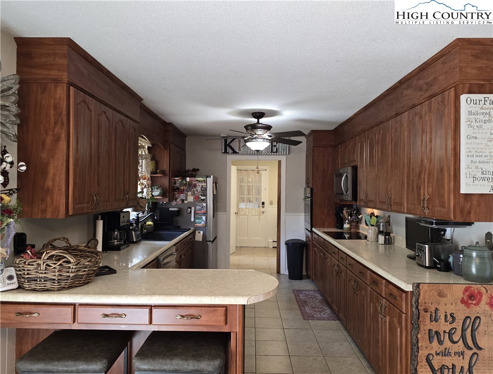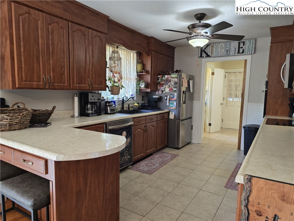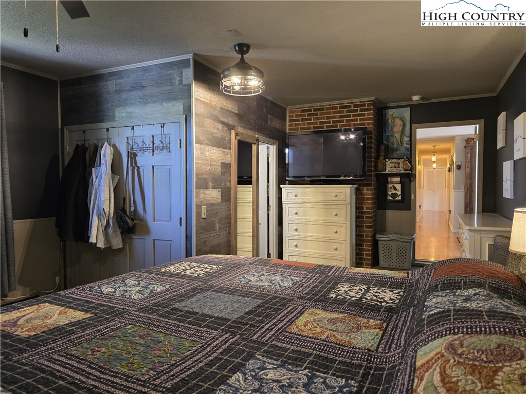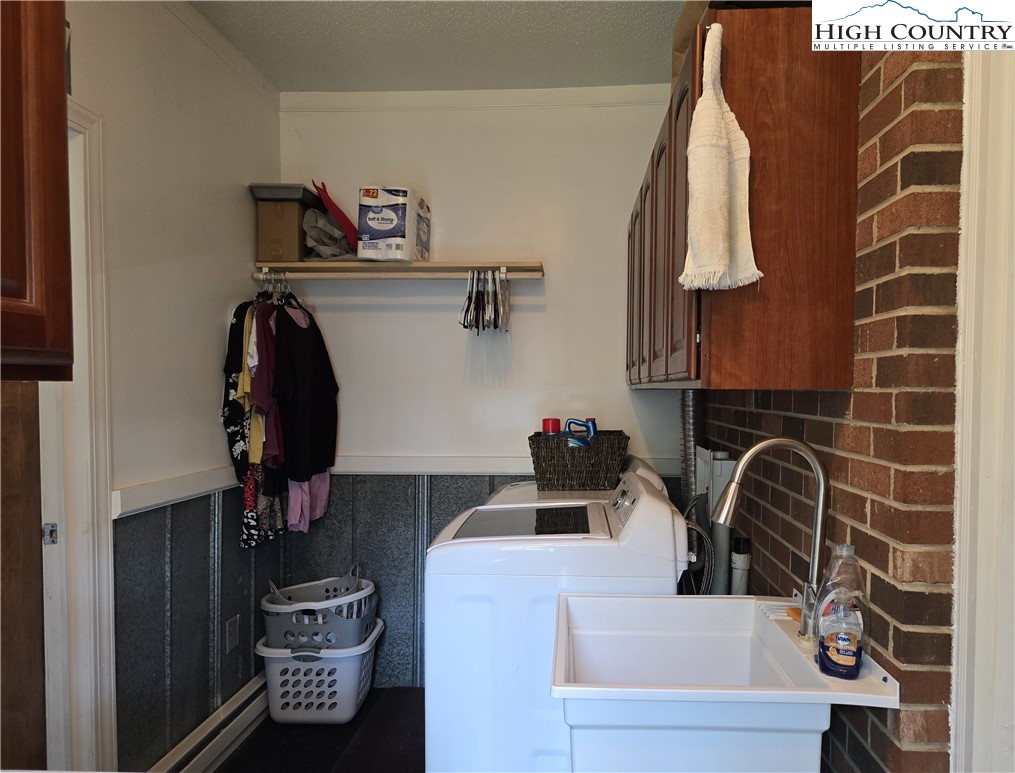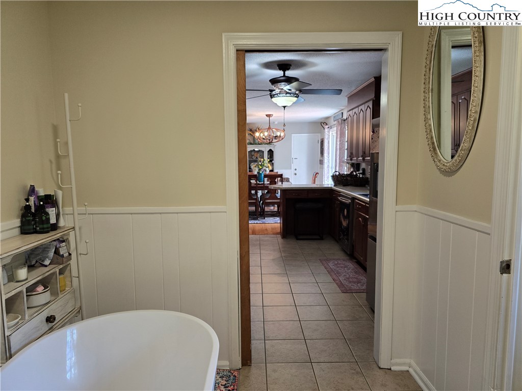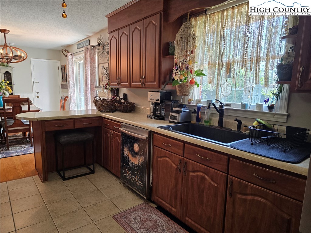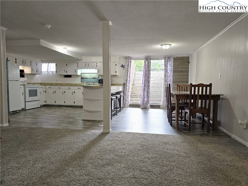 Beautiful partially remodeled and updated brick home tucked beneath the historic Mount Jefferson landscape, offering stunning mountain views and a highly desirable location near some of Ashe County’s most loved outdoor destinations and Downtown West Jefferson. Conveniently situated near the New River, New River State Park, and the Blue Ridge Parkway, this property provides easy access to recreation, scenic drives, and local attractions. Designed for comfortable single-level living, the main level features a welcoming formal living room entry, four spacious bedrooms, and three full bathrooms, including one with a relaxing soaking tub. The home offers a wonderful flow for everyday living and entertaining with an open-concept den highlighted by a beautiful fireplace, a large dining area, and a spacious kitchen equipped with upgraded appliances. A convenient laundry room with a deep utility sink adds to the home’s functionality. The attached garage features attractive epoxy flooring and a generous walk-in storage closet. The remodeled basement level includes approximately 1,100 square feet of additional living space (ceiling height is 6.92'), currently set up and used as an apartment. This area offers an open living, dining, and kitchen layout, two bonus rooms used as bedrooms, and one full bathroom, along with a walk-in closet located at the base of the stairwell and a dedicated laundry room. With its own address, electric meter, water heater, and electric baseboard heating, this space provides excellent flexibility for extended living arrangements or income potential. A separate driveway, two personal entrances, and a sliding glass door enhance both privacy and livability. The apartment presents an opportunity to generate approximately rental income. Enjoy the outdoor space that provides ample yard space front and back, along with a firepit, and a wonderful front porch spanning the front of the home with views of Mount Jefferson.