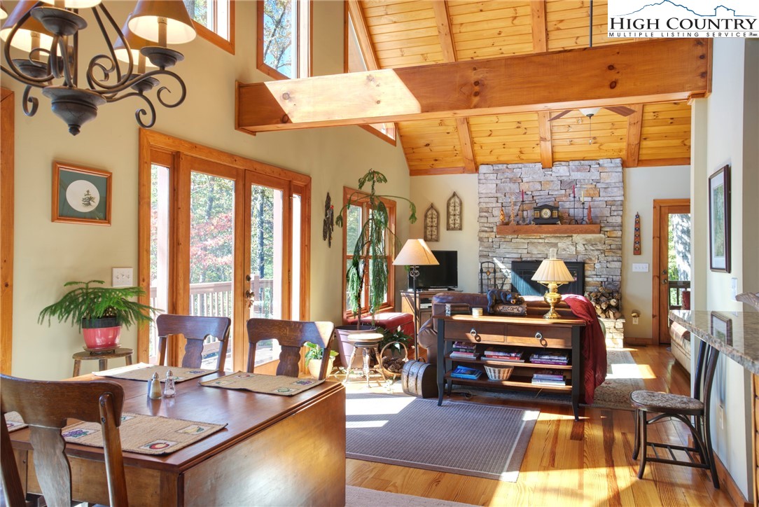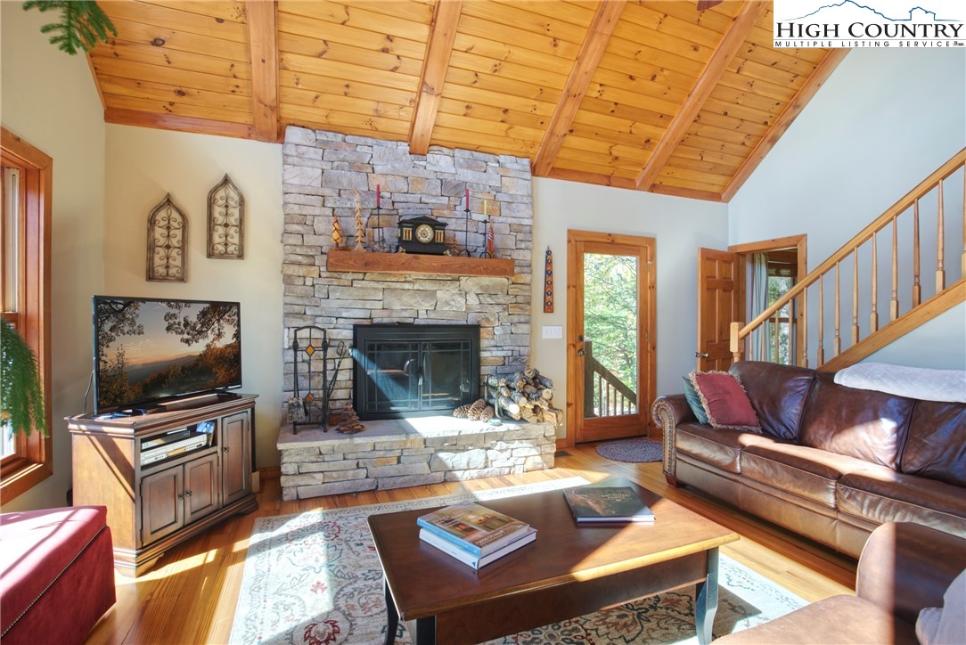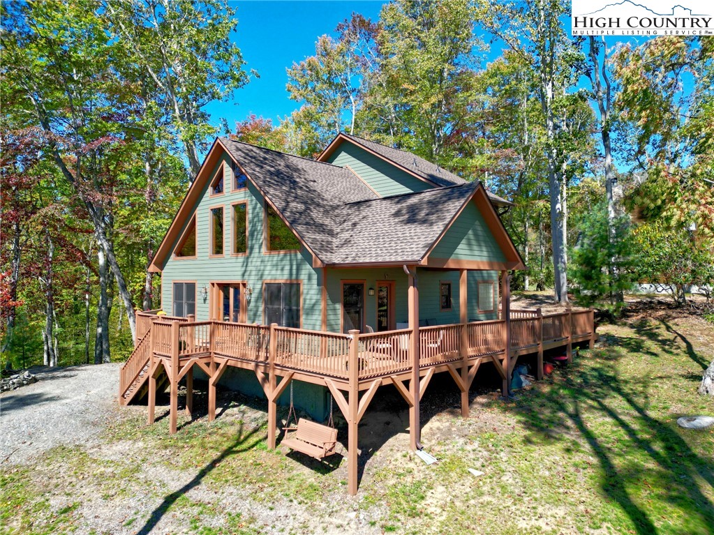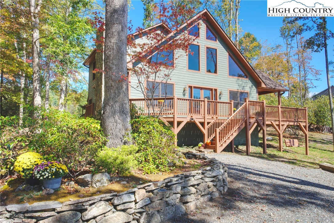 Tucked within The Summit at Lost Ridge community, this inviting mountain home offers open, sun-filled spaces and a relaxed design tailored for weekend getaways or year round enjoyment. Located within a short drive of Boone, yet quietly tucked into the countryside, this 3 bedroom, 2.5 bath property offers 1,768 sq.ft., of well planned living space on 1.17 acres in one of Vilas's most sought after communities. The first floor features an open concept design with vaulted ceilings, exposed beams, and large windows that flood the space with natural light. The great room centers around a wood burning fireplace and flows seamlessly into the kitchen with custom cabinetry and granite countertops and the dining area, creating the ideal setting for everyday living or entertaining. The main level primary suite combines function and comfort with a walk-in closet, an ensuite bathroom with double sinks, soaking tub and separate shower, and direct access to the laundry area for everyday ease. Upstairs are two additional bedrooms, including one currently used as a home office, plus a peaceful reading nook at the top of the stairs that adds an inviting touch to the space. Step out onto the freshly painted deck...an easygoing spot for morning coffee, dinner with friends, or a quiet soak in the hot tub. Pride of ownership shows throughout, with ongoing atttention to detail and a true commitment to keeping the home in top condition. This year, the home received a NEW ROOF, THE EXTERIOR AND THE DECK HAVE BEEN PAINTED, NEW HOT WATER HEATER, SMOKE DETECTORS REPLACED, DRYER VENT PROFESSIONAL CLEANED, THE CHIMNEY MORTAR CROWN WAS REPAIRED AND FULLY SEALED FOR LASTING PROTECTION, AND THE SEPTIC SYSTEM WAS SERVICED. A detailed maintenance record is available for review in the uploaded documents. The Summit of Lost Ridge Property Owners Association maintains a picturesque common area with a farmhouse, barn, community garden, ponds, fire pit, and walking trails. Short-term rentals are permitted, offering flexibility for full-time living, a weekend getaway or investment opportunity. Move-in ready, and furnished (see list for items that do not convey), this exceptionally maintained home combines comfort, convenience, and a peaceful mountain setting. Schedule your showing today and see first-hand why this home stands out...well cared for, well located, and ready to welcome its next owners.