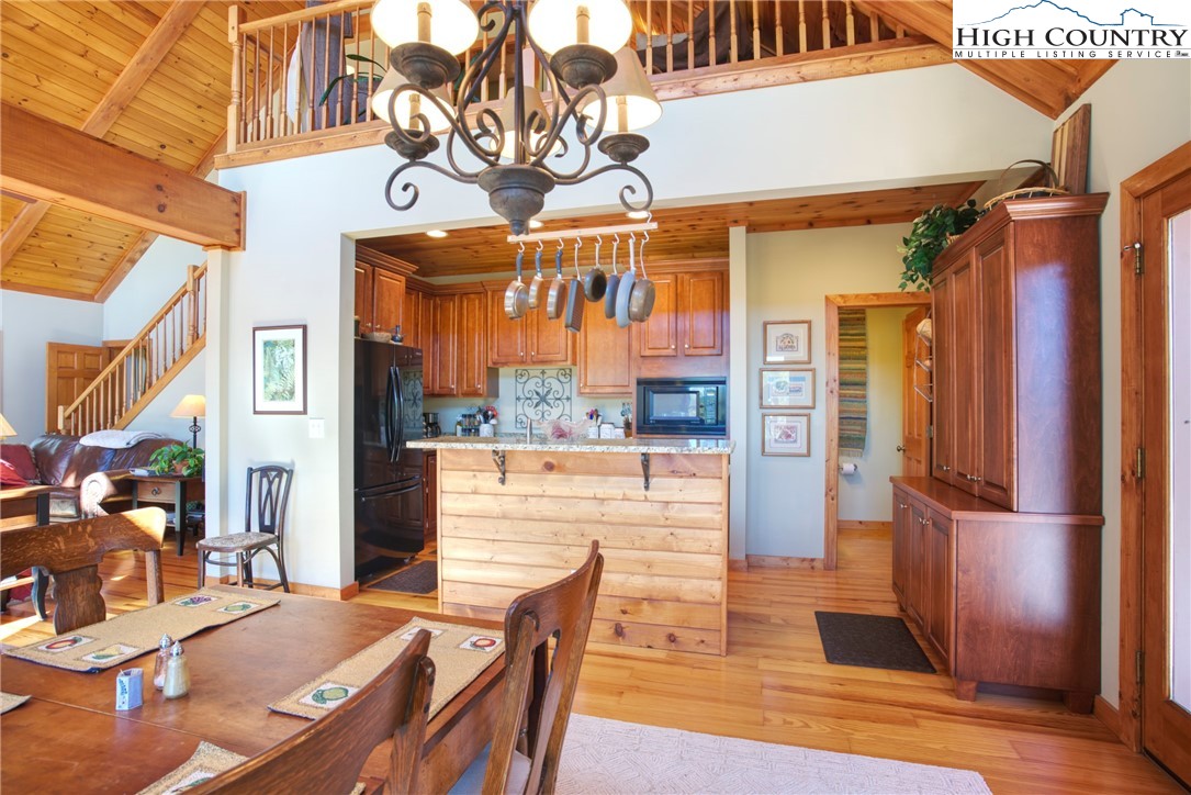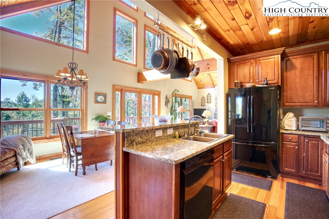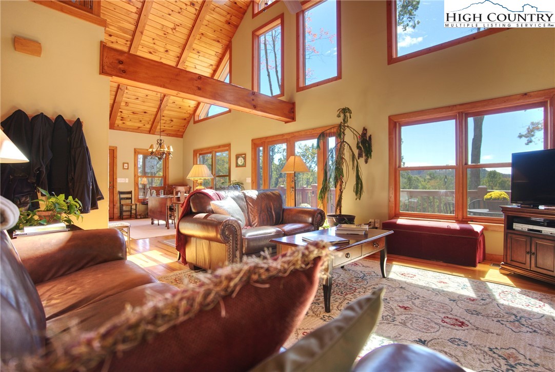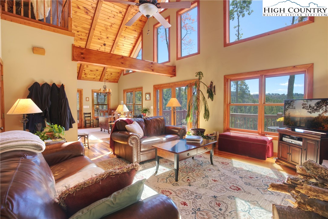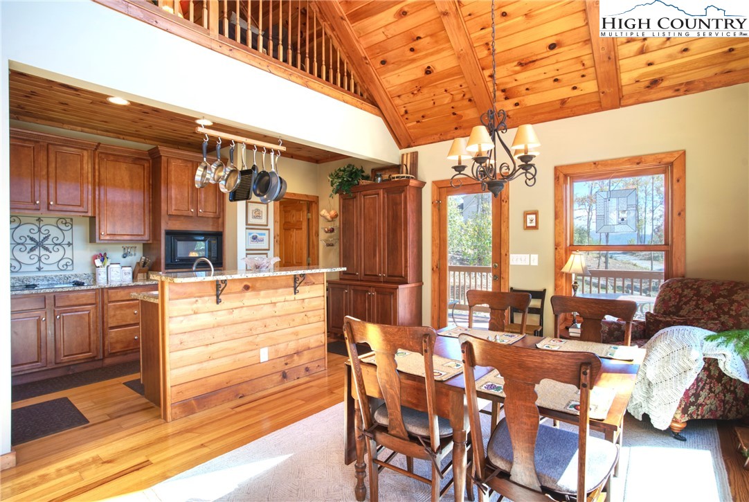 Tucked within The Summit at Lost Ridge community, this inviting mountain home offers open, sun-filled spaces and a relaxed design tailored for weekend getaways or year round enjoyment. Located within a short drive of Boone, yet quietly tucked into the countryside, this 3 bedroom, 2.5 bath property offers 1,768 sq.ft., of well planned living space on 1.17 acres in one of Vilas's most sought after communities. The first floor features an open concept design with vaulted ceilings, exposed beams, and large windows that flood the space with natural light. The great room centers around a wood burning fireplace and flows seamlessly into the kitchen with custom cabinetry and granite countertops and the dining area, creating the ideal setting for everyday living or entertaining. The main level primary suite combines function and comfort with a walk-in closet, an ensuite bathroom with double sinks, soaking tub and separate shower, and direct access to the laundry area for everyday ease. Upstairs are two additional bedrooms, including one currently used as a home office, plus a peaceful reading nook at the top of the stairs that adds an inviting touch to the space. Step out onto the freshly painted deck...an easygoing spot for morning coffee, dinner with friends, or a quiet soak in the hot tub. Pride of ownership shows throughout, with ongoing atttention to detail and a true commitment to keeping the home in top condition. This year, the home received a NEW ROOF, THE EXTERIOR AND THE DECK HAVE BEEN PAINTED, NEW HOT WATER HEATER, SMOKE DETECTORS REPLACED, DRYER VENT PROFESSIONAL CLEANED, THE CHIMNEY MORTAR CROWN WAS REPAIRED AND FULLY SEALED FOR LASTING PROTECTION, AND THE SEPTIC SYSTEM WAS SERVICED. A detailed maintenance record is available for review in the uploaded documents. The Summit of Lost Ridge Property Owners Association maintains a picturesque common area with a farmhouse, barn, community garden, ponds, fire pit, and walking trails. Short-term rentals are permitted, offering flexibility for full-time living, a weekend getaway or investment opportunity. Move-in ready, and furnished (see list for items that do not convey), this exceptionally maintained home combines comfort, convenience, and a peaceful mountain setting. Schedule your showing today and see first-hand why this home stands out...well cared for, well located, and ready to welcome its next owners.