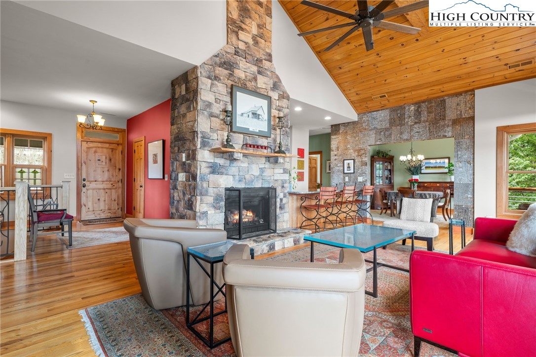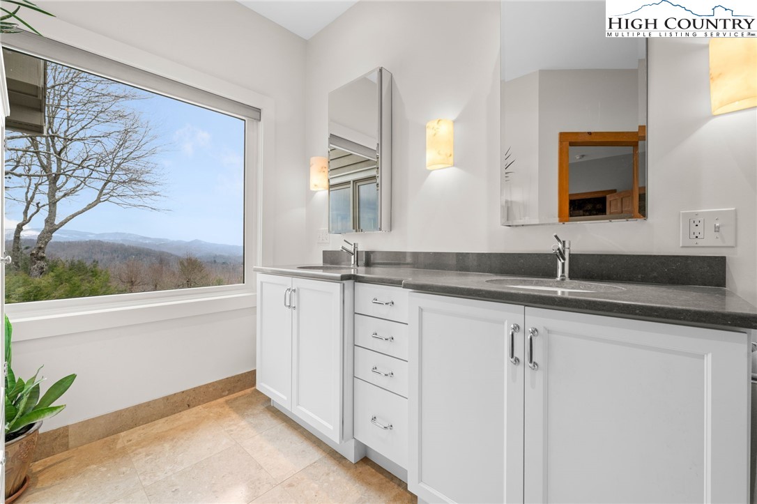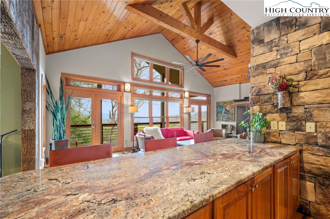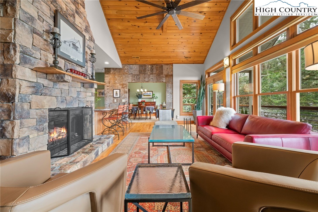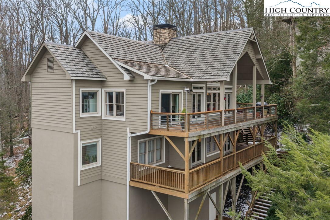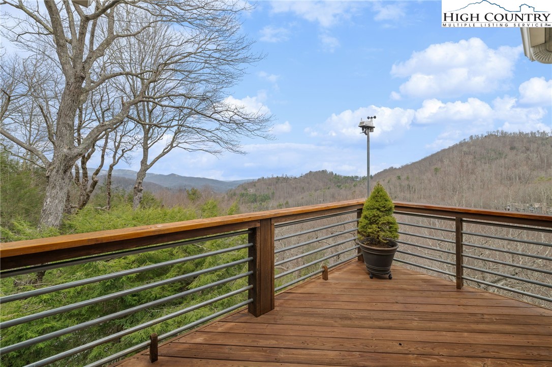 What an amazing view! Nestled in the very pinnacle of Hound Ears club at over 3500 feet above sea level, this charming 3 bed, 3.5 bath, mountain-style cottage has all the charming design elements you could imagine plus views that are second to none. Soaring ceilings, gorgeous kitchen cabinets and a completely updated master bath (with its own view), stone fireplaces, covered and open outdoor decks, an exercise room (or another sleeping space), an amazing pebble-finished carport, all speak to the exquisite tastes and lifestyle the owners have poured their heart into for many years. The Hound Ears Club membership is available separately, and includes competition-level tennis, outdoor pool with a dramatic waterfall, indoor resistance pool in a brand new exercise facility, pro-shop, on-site restaurant, 18-hole golf course, and pickleball courts. A private Trout Fishing Club is also available separately. Hound Ears Rocks and hiking trails are included with ownership in the community and are available to all residents. This is truly the whole mountain luxury living package, you can have as much as suits your tastes.