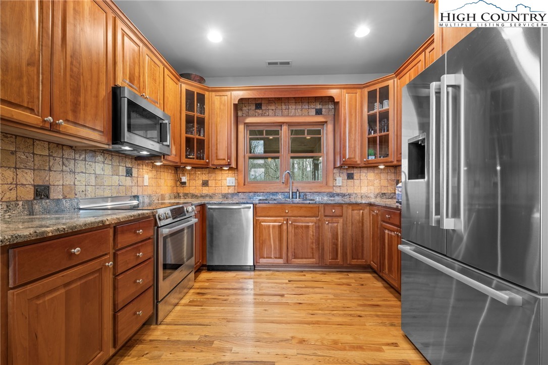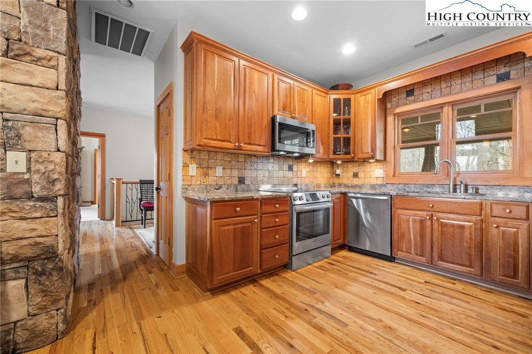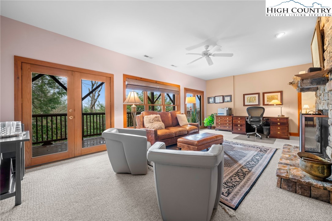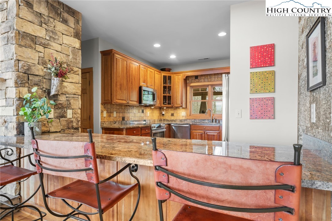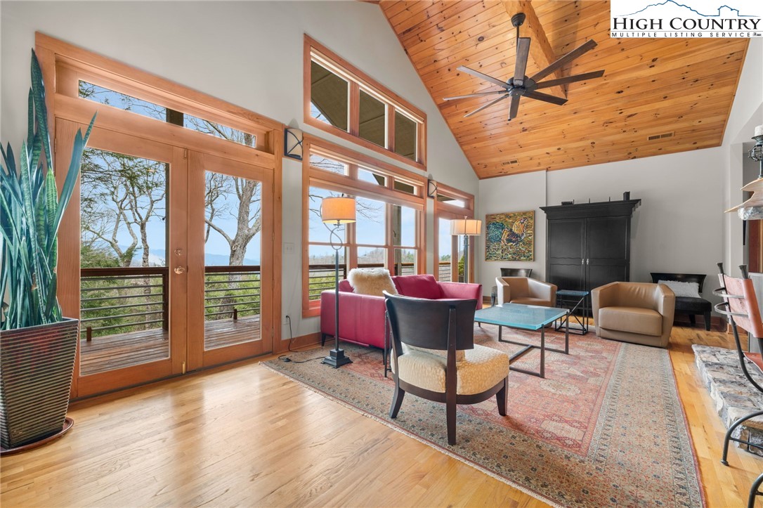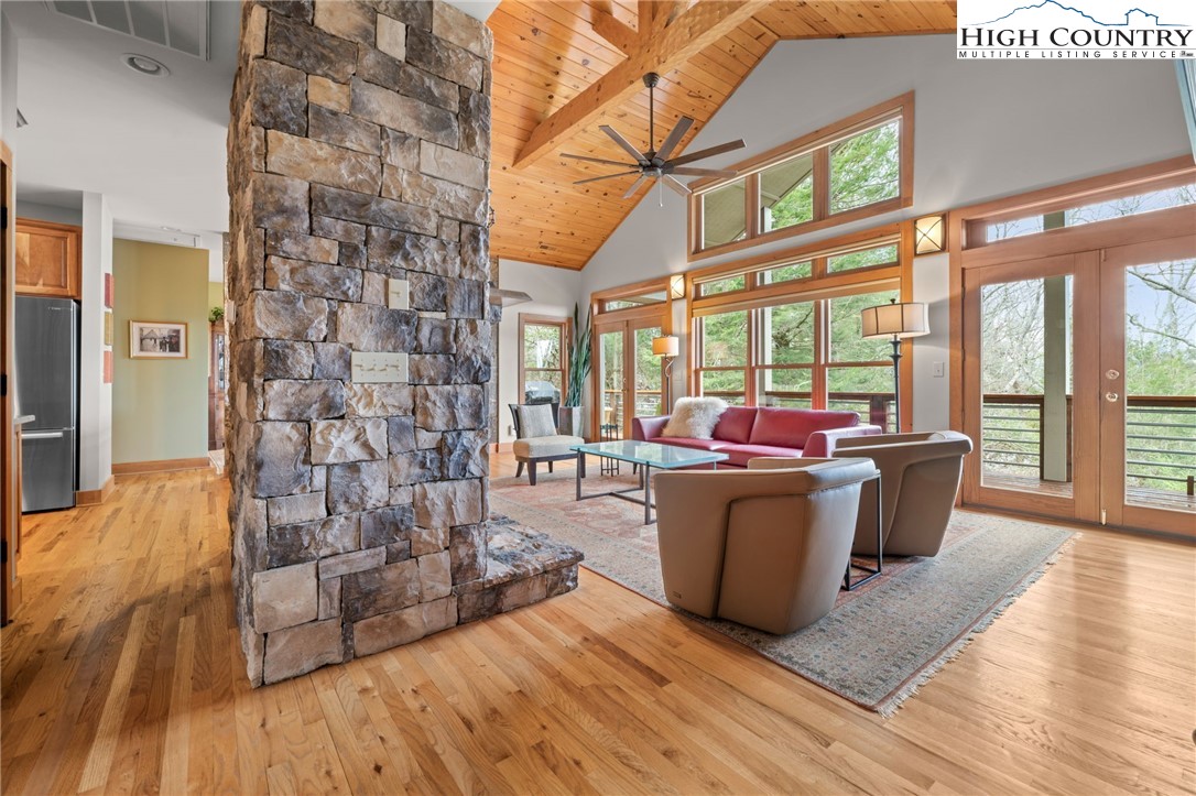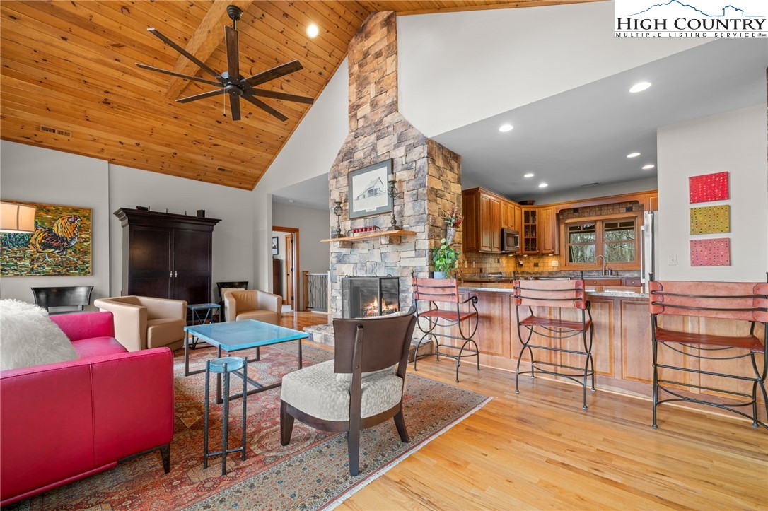 What an amazing view! Nestled in the very pinnacle of Hound Ears club at over 3500 feet above sea level, this charming 3 bed, 3.5 bath, mountain-style cottage has all the charming design elements you could imagine plus views that are second to none. Soaring ceilings, gorgeous kitchen cabinets and a completely updated master bath (with its own view), stone fireplaces, covered and open outdoor decks, an exercise room (or another sleeping space), an amazing pebble-finished carport, all speak to the exquisite tastes and lifestyle the owners have poured their heart into for many years. The Hound Ears Club membership is available separately, and includes competition-level tennis, outdoor pool with a dramatic waterfall, indoor resistance pool in a brand new exercise facility, pro-shop, on-site restaurant, 18-hole golf course, and pickleball courts. A private Trout Fishing Club is also available separately. Hound Ears Rocks and hiking trails are included with ownership in the community and are available to all residents. This is truly the whole mountain luxury living package, you can have as much as suits your tastes.