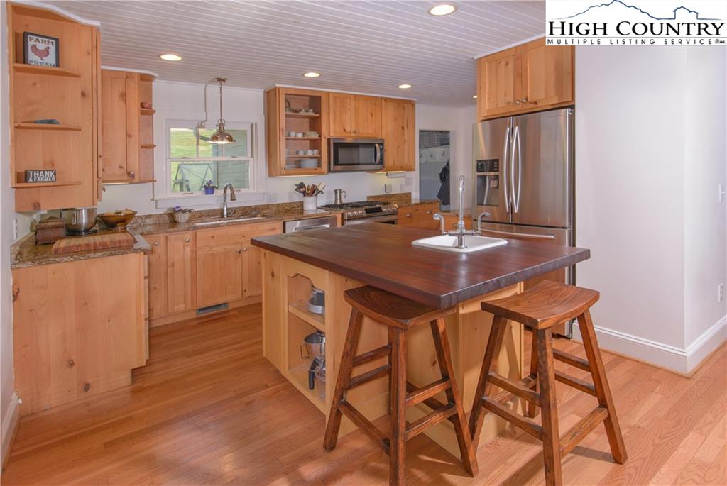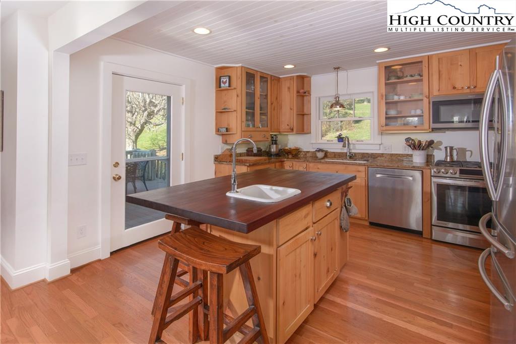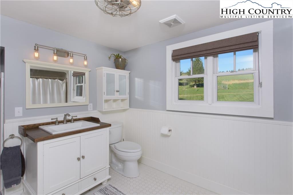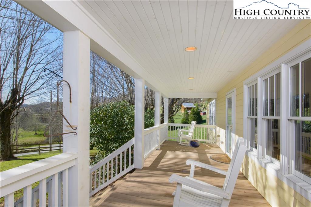 Tastefully renovated farmhouse with 3.55 acres of pristine pastoral farmland. Open floor plan with a large master suite on the main floor with a fantastic master bath including soaking tub and shower. Upstairs are two additional bedrooms and a large shared bathroom. The kitchen features Alder cabinets, gas range, large kitchen island with Sapele Mahogany top. The kitchen opens up to a nice outdoor living area which leads to the yard, greenhouse, gardens and to the outdoor barn. The is a large spot for a vegetable garden and plenty of space for farm animals if you want, or you can just enjoy a nice pastoral yard. There are so many possibilities for this home that is located in one of the most desirable areas in the high country. Just a few minutes to Banner Elk or Valle Crucis. This home was renovated in 2009 and again in 2014 with new windows, expanded master, new propane furnace and heat pump, generator and all keeping the old farmhouse style.