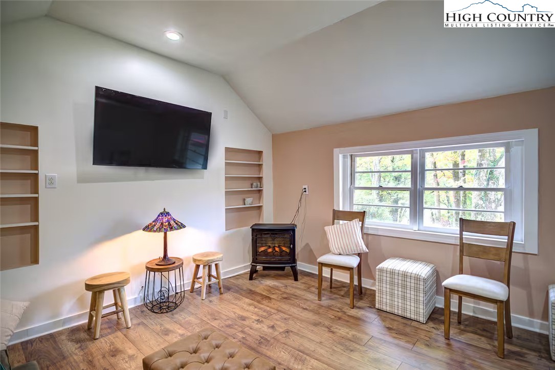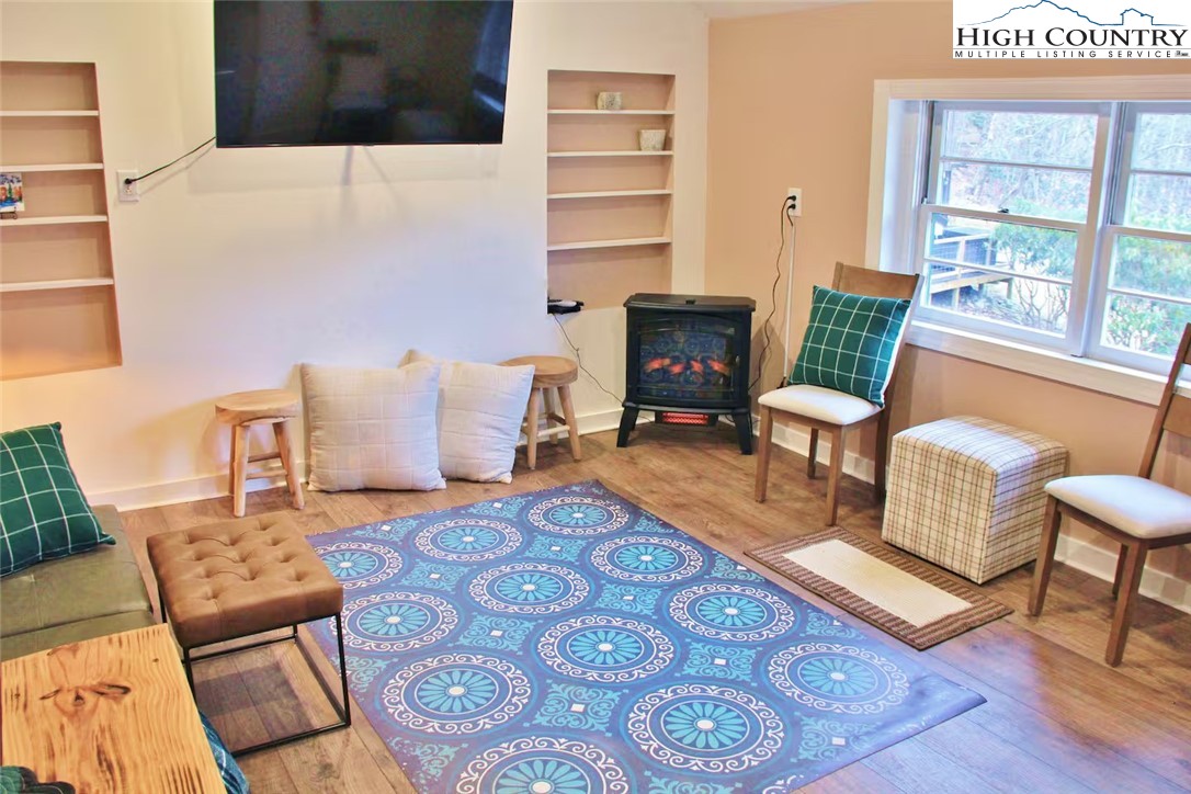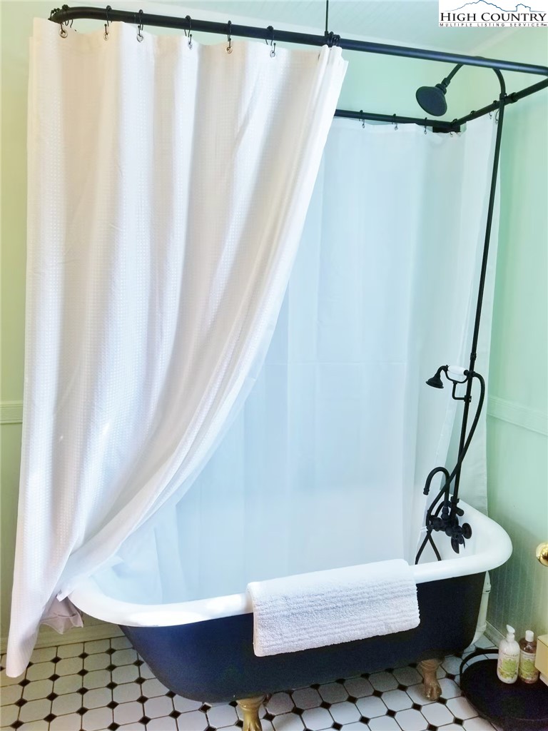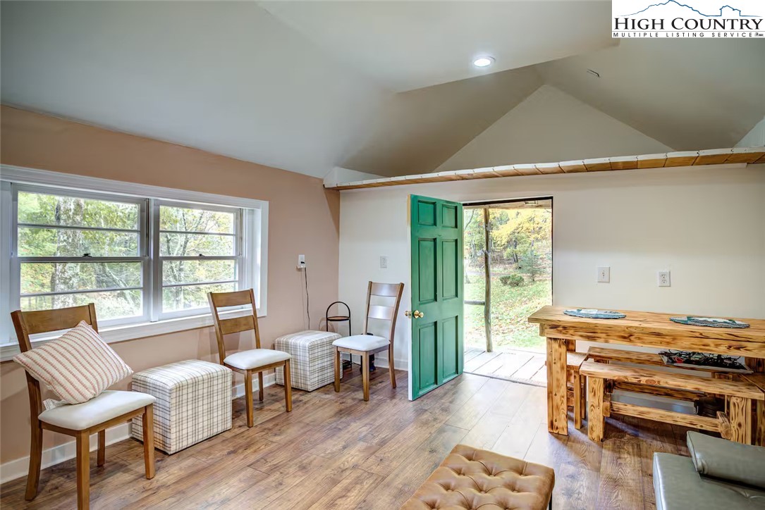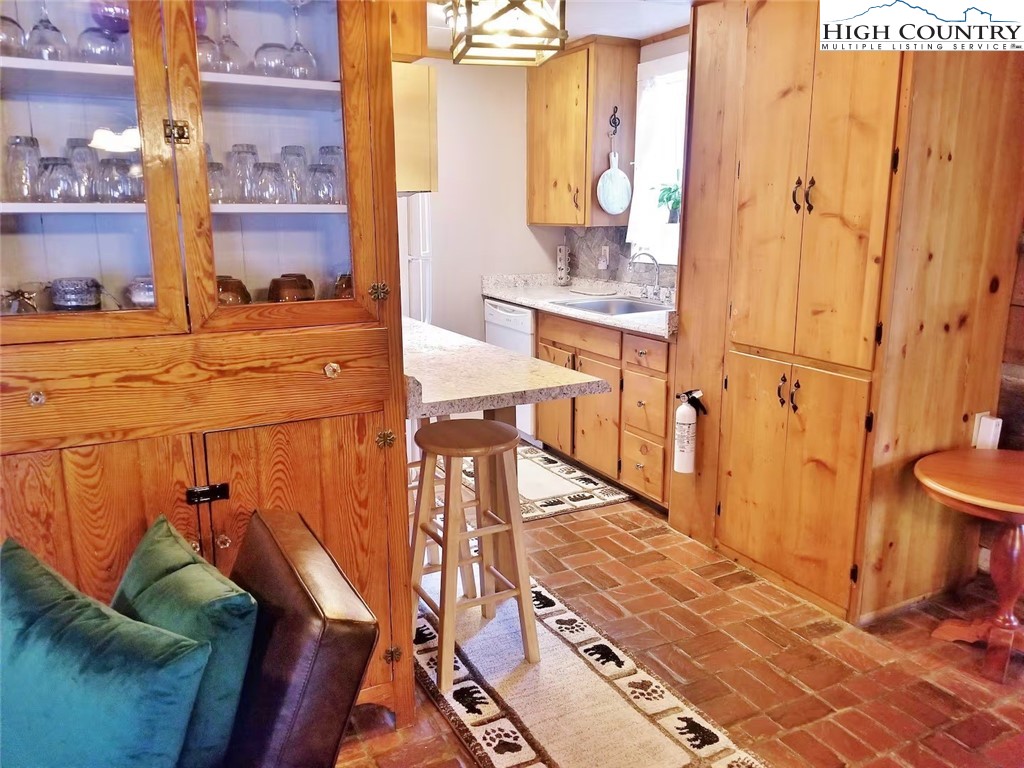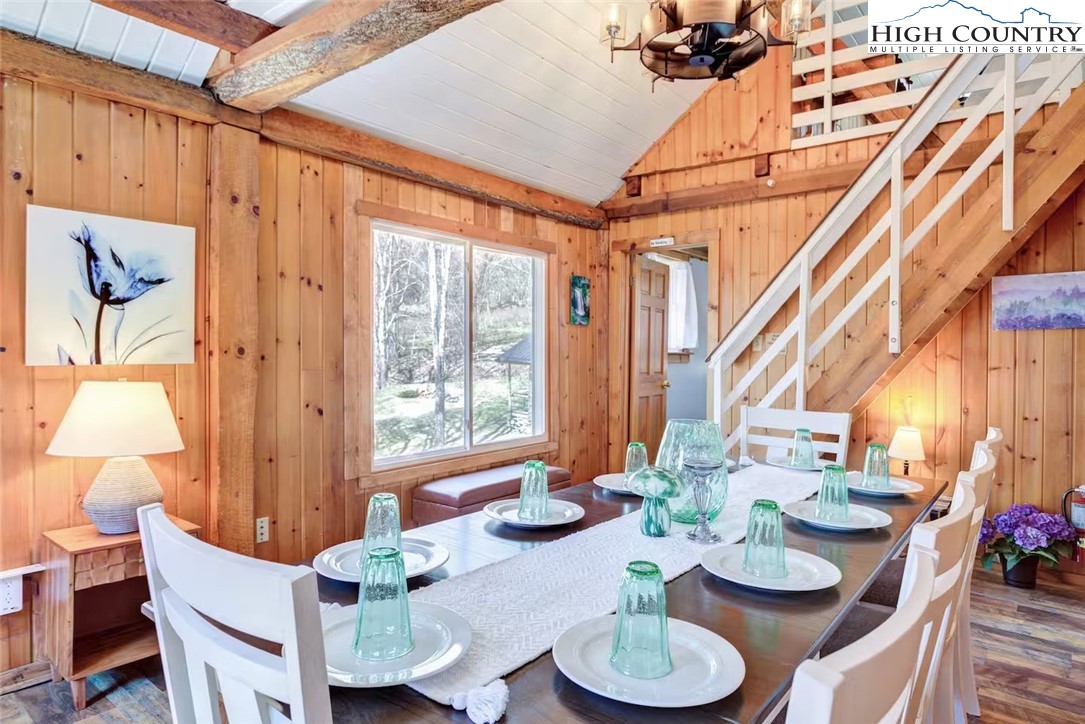 IMPROVED PRICE AND SELLER FINANCING CONSIDERED! An impressive renovation was completed to this remarkable property offering a unique blend of rustic charm and modern updates, featuring 2 cabins connected by a charming covered bridge walkway. Excellent vacation rental opportunity. Main property was once occupied as two separate units. Kitchen, bedroom and bath on both levels with separate entrances. Situated in a prime central location between Banner Elk and Beech Mountain, it provides easy access to activities like skiing, hiking, biking, wineries, dining, summer theater at Lees McRae College and nearby attractions such as Grandfather Mountain and the Blue Ridge Parkway. The main cabin boasts a primary bedroom with a fireplace, and original hardwood floors, full bath, a kitchenette, stunning log beams, and a stone fireplace in the great room, while the upper level includes two bedrooms, a full bath with a footed tub, water closet, a large dining area, kitchen, and an upper loft for an extended sleeping area. Spacious decking complete with hot tub, heated table, a huge flat yard with lots of parking and a fire pit make it ideal for entertaining and relaxing. In addition has a 223 sq ft cabin on the property, remodeled to be a versatile space; think kids playroom or art studio. The upper level loft has portions lower than 7' so the 209 sq ft is not counted in the total square footage. So much to offer with the property including 2 refrigerators, 2 dishwashers, 2 microwaves and a sound system. Both cabins had roofs replaced in 2023. Well pump and tank were just replaced.