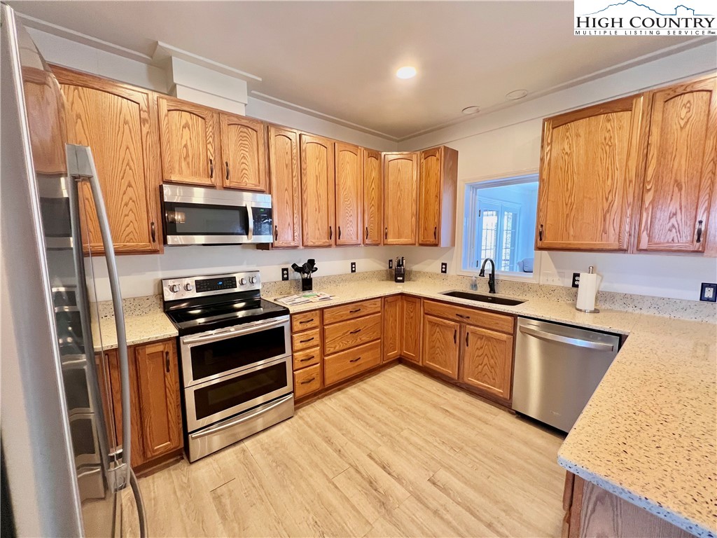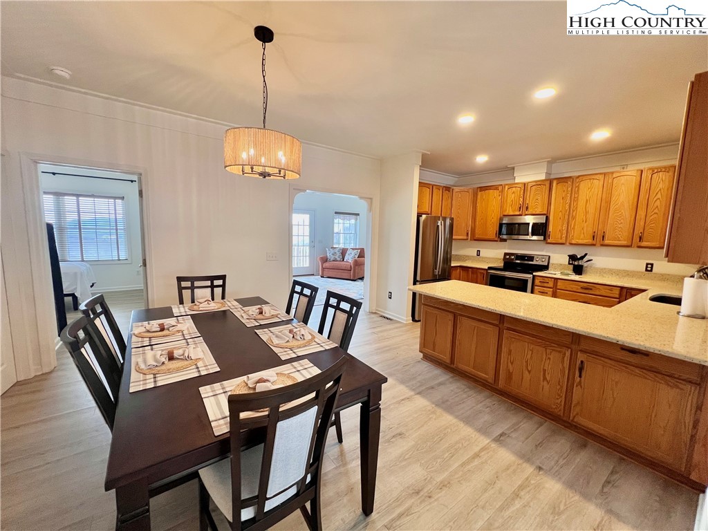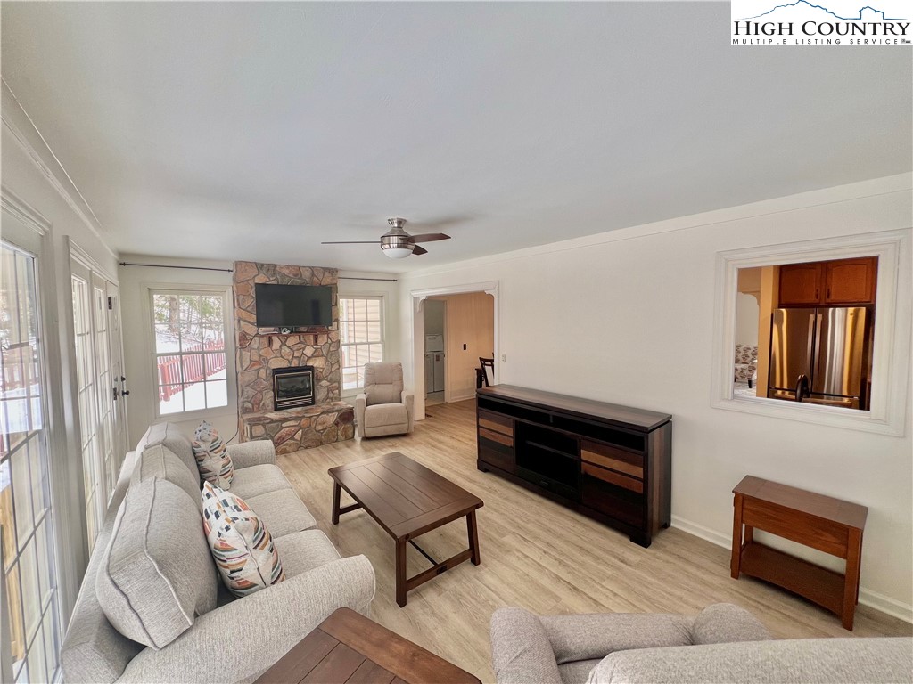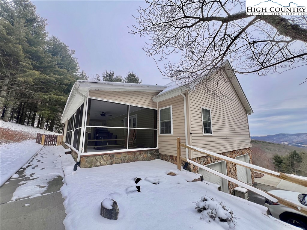 A MOUNTAIN VIEW AND JUST 10 MINUTES TO HISTORIC WEST JEFFERSON!! This home offers many updates including optimal mountain views, three family living areas, 3 BR/2 BA with a premium shower tower and large walk-in closet in the primary bedroom. Granite countertops and beautiful oak cabinets with LOTS of storage PLUS a walk-in pantry. A comfortable office on this level also. The sunroom in the rear holds a stone fireplace and nightly views of deer passing by....THERE IS MORE...a large screen porch, fenced rear yard area for pets and children!! THE LOWER LEVEL--another large bonus room for crafts/game room and workshop. 2 Car Garage to protect your vehicles!! This property allows short term rentals or make it your permanent home.