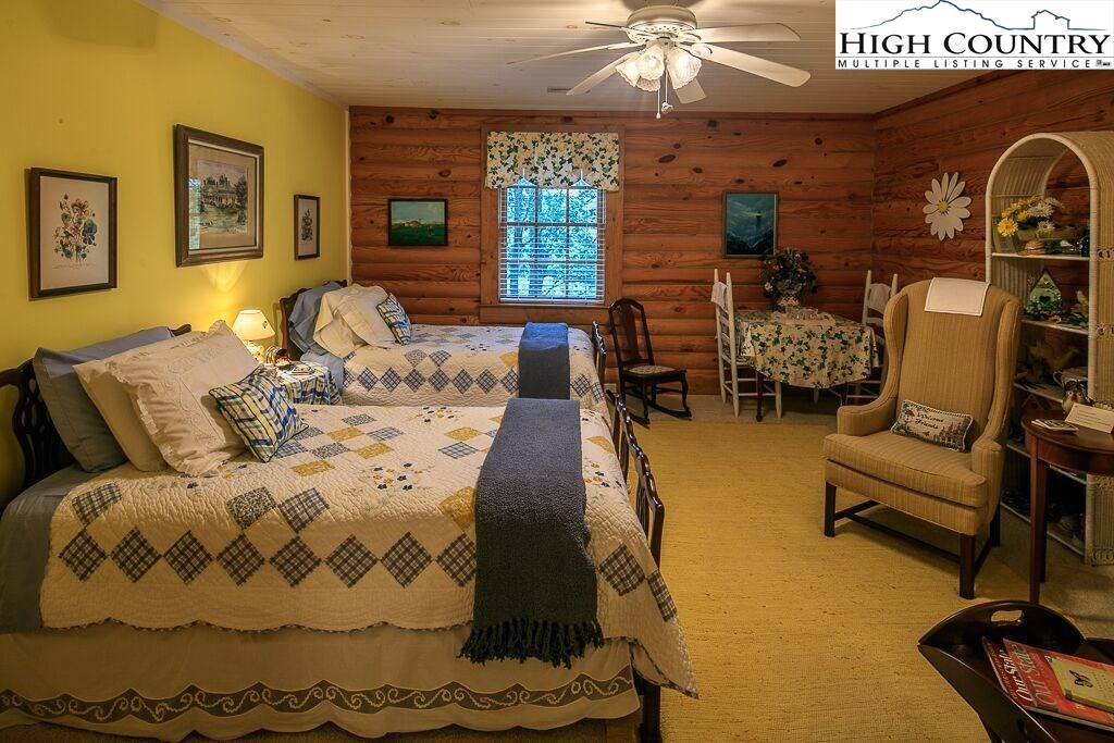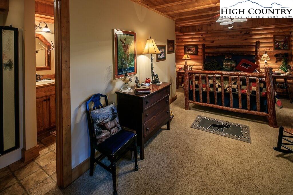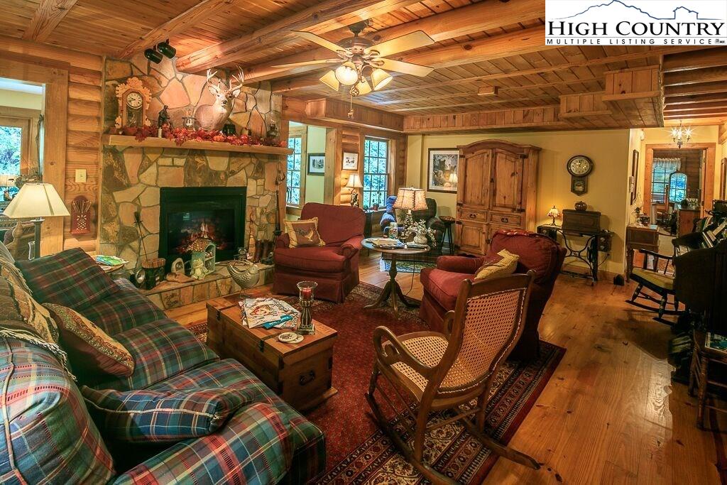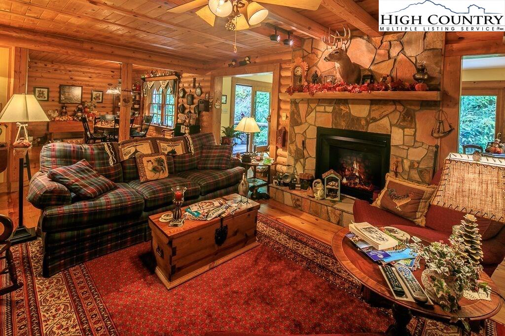 Custom-built beautiful cabin in desirable Valle Crucis! Great home for the entire family! 5 Lg master suites each with full ensuite bathrooms! The main level featuring the great room & sunroom sharing a beautiful double-sided stone fireplace. Lovely formal dining room, Lg gourmet kitchen with dining area, guest 1/2 bath, 2 large master suites each with private full baths, foyer opens to a Lg covered deck to sit, relax & enjoy the serene mountain setting! Second level has 3 large master suites each with their own full bathrooms. There is also an office/reading room,& a large open loft. In addition, there is approximately 400 sq ft bonus room/private office over the garage that has heat & air. Two car oversized garage & a full basement that offers an abundance of storage space. One of kind & is built with the finest quality craftsmanship. Close to Boone, Banner Elk, Blowing Rock, Sugar Mtn! This exquisite cabin would be perfect as a full-time residence, vacation home or FANTASTIC rental investment property! Very successful B & B for 15+ years an IMPRESSIVE rental history! Rental History is over 50K & running only part-time! Income could be potentially double! Furnishings Negotiable.