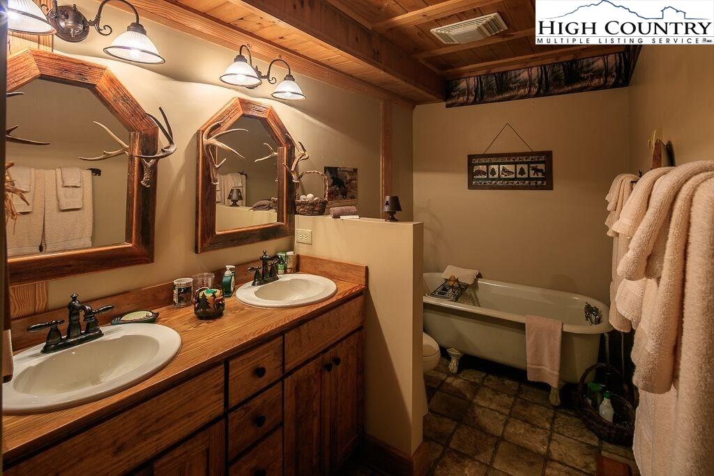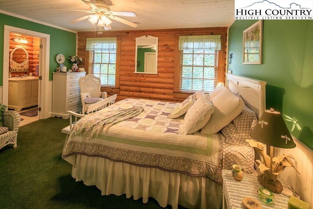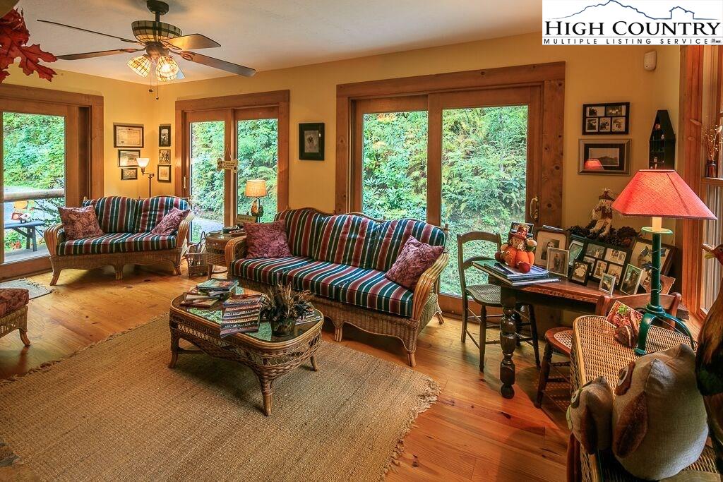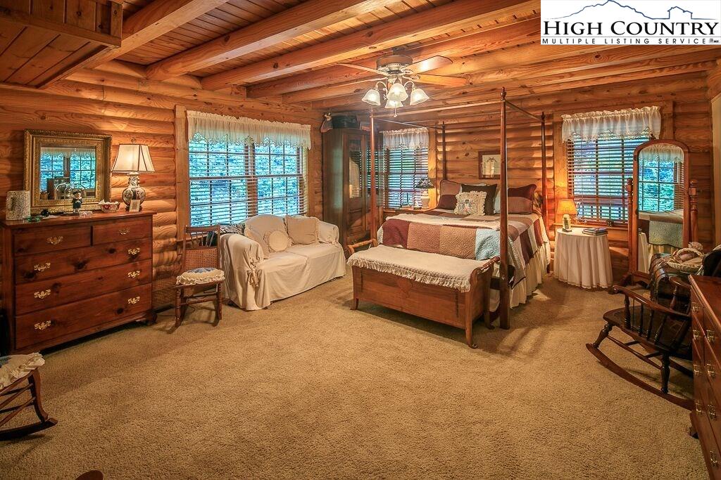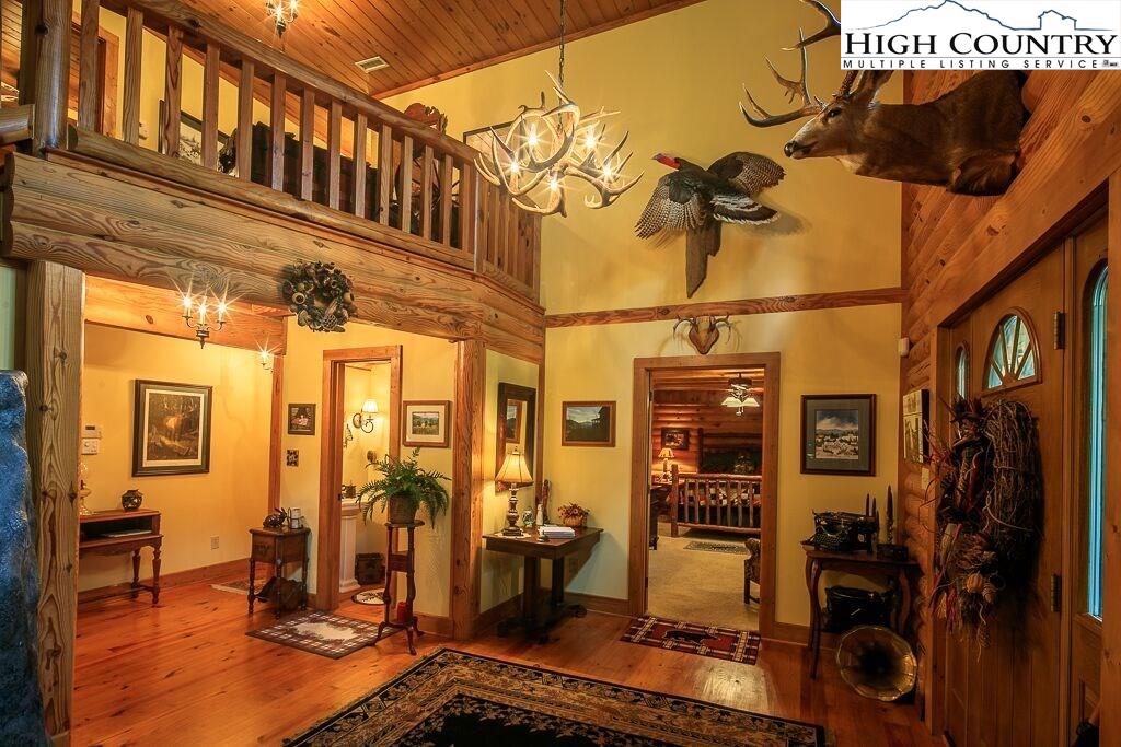 Custom-built beautiful cabin in desirable Valle Crucis! Great home for the entire family! 5 Lg master suites each with full ensuite bathrooms! The main level featuring the great room & sunroom sharing a beautiful double-sided stone fireplace. Lovely formal dining room, Lg gourmet kitchen with dining area, guest 1/2 bath, 2 large master suites each with private full baths, foyer opens to a Lg covered deck to sit, relax & enjoy the serene mountain setting! Second level has 3 large master suites each with their own full bathrooms. There is also an office/reading room,& a large open loft. In addition, there is approximately 400 sq ft bonus room/private office over the garage that has heat & air. Two car oversized garage & a full basement that offers an abundance of storage space. One of kind & is built with the finest quality craftsmanship. Close to Boone, Banner Elk, Blowing Rock, Sugar Mtn! This exquisite cabin would be perfect as a full-time residence, vacation home or FANTASTIC rental investment property! Very successful B & B for 15+ years an IMPRESSIVE rental history! Rental History is over 50K & running only part-time! Income could be potentially double! Furnishings Negotiable.