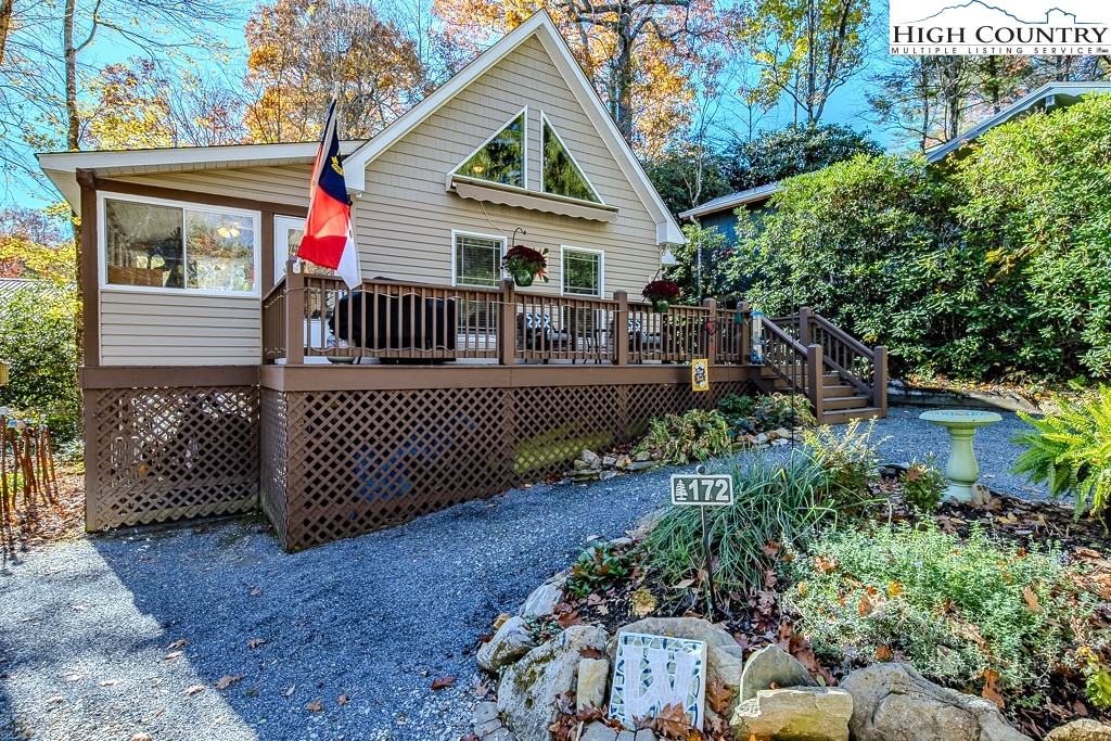 This is a beautiful home with two bedrooms, two baths and a bonus loft area. Easy access to get to the main level of the home which has two bedrooms, one bath, living area, kitchen, laundry and enclosed porch/sunroom, as well as a nice front porch. Upstairs level has a loft in the middle with a room on each side of the bathroom, which are currently used as sleeping area. Laminate flooring in most of the home, central heat and air, and propane fireplace. Home is very comfortable with clean, updated comforts. Wonderful kitchen with open floor plan that includes a great pantry. Lots of closets throughout the home. Great storage under the porches, including an area to store your golf cart. House will come partially furnished, which will be determined with offer. Linville Land Harbor POA initiation fee $5,000.00. Linville Land Harbor is a wonderful place to live the simple lifestyle you’ve been looking for without sacrificing the fun. Choose from all the amenities including golf, pickleball, tennis, walking trails, dog parks, swimming pool, and lakeside beaches. With 24-hour security and a vibrant community spirit, every day here feels like a vacation. And the best part? Your HOA fees cover water, sewer, trash pickup, cable, and Wi-Fi, ensuring a worry-free lifestyle. Don't miss out on this opportunity to embrace mountain living at its finest. Schedule your viewing today and make Linville Land Harbor your new home!