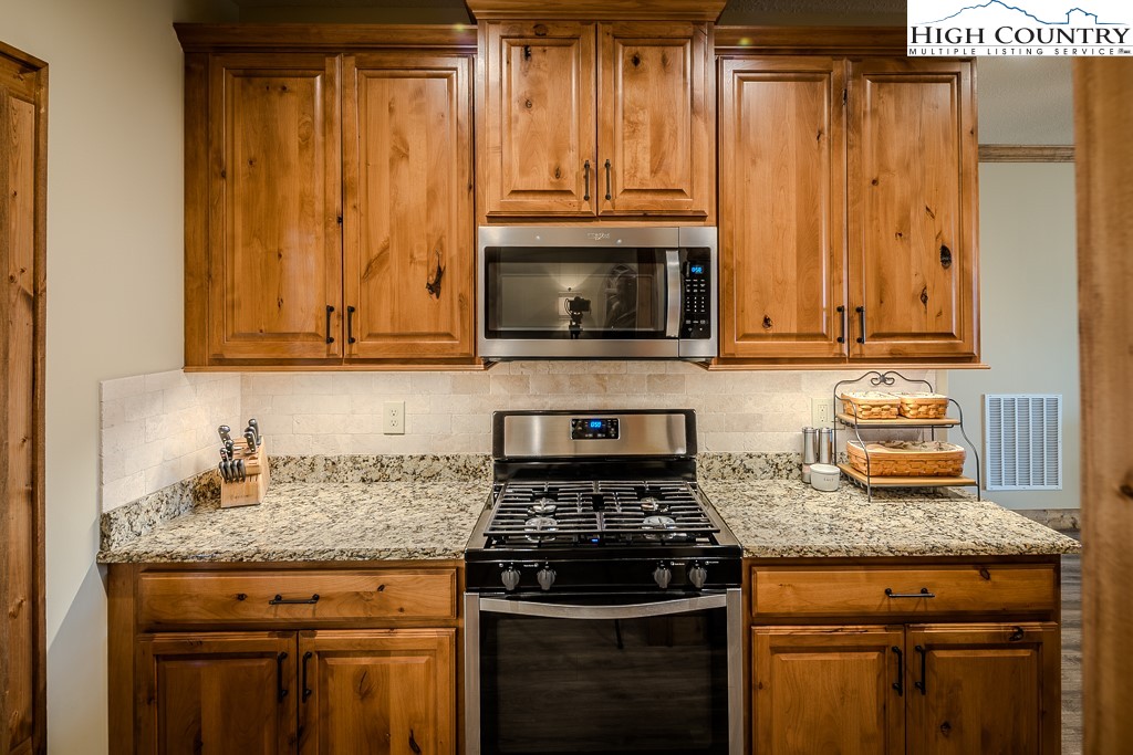 Experience stunning long-range views from this like-new Vistas condo, completed in 2020. This is mountain living at its finest. A level-entry luxury condo situated in an ideal High Country location—just 2 minutes from downtown Banner Elk, where you’ll find shopping, dining, summer theater, and exciting local events. Beech Mountain is only minutes away, and Sugar Mountain is just a short drive. The property features a thoughtfully designed layout with high-end finishes, including an open kitchen with a gas range and ample granite counter space. A generous pantry/laundry area adds convenience. The spacious primary bedroom boasts stunning views, a walk-in closet, a jetted tub, and a separate shower. With natural gas and A/C, this home offers year-round comfort. An exceptional mountain retreat perfect for vacations or full-time living. See documents for furniture that conveys with property.