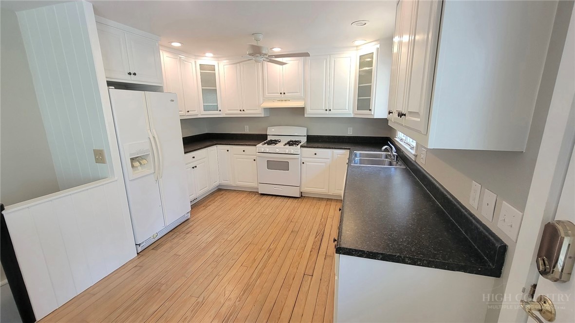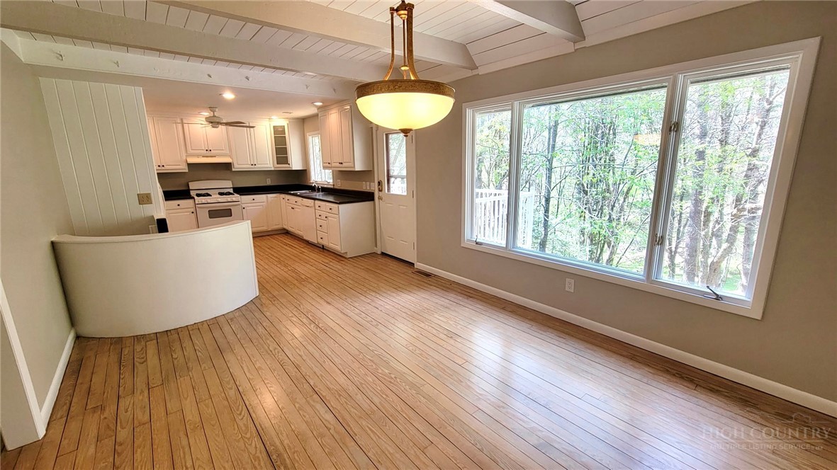Welcome to Chimney Cabin! Modern Mountain Living is waiting for you in this renovated 3 bedroom, 4 bath home! The main level offers 2 large primary ensuites with a spacious living area in between along with an impressively, wide stone fireplace. Hardwood floors have been expertly refinished along with new paint inside and out, and new tile floors in all bathrooms and kitchen. From the kitchen and dining room, a spiral staircase will take you down to the partially finished lower level with laundry, a full bath and a large office/bedroom, your choice. There's lots of unfinished space for storage and even a one-car garage! Outside, owners added a new roof, new paint, plus stain on the two decks, new HVAC and new landscaping. SHORT and LONG TERM RENTALS ARE ALLOWED! This home is just minutes from Boone and ASU, App Regional Healthcare, Blowing Rock, App. Ski Mountain, great shopping and restaurants as well!