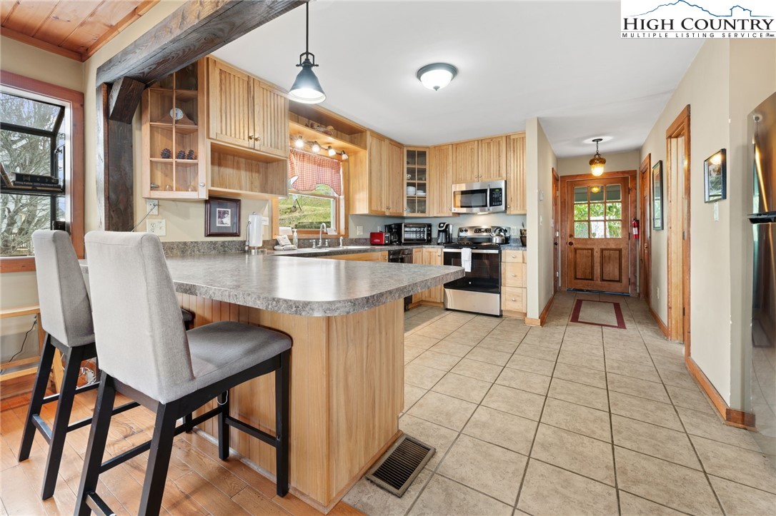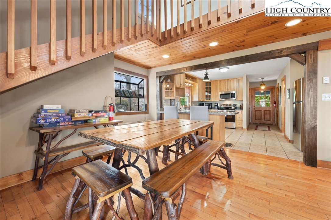This charming mountain retreat at 173 Chipmunk Lane in Blowing Rock offers the perfect blend of privacy, comfort, and convenience. Featuring 3 bedrooms and 2 bathrooms, this inviting home provides a peaceful escape while being just minutes from downtown shops, dining, and outdoor attractions. Step inside to discover a warm and welcoming interior with an open-concept living area, ideal for relaxing or entertaining by the fireplace. Large windows fill the space with natural light and showcase stunning long-range mountain views, creating a true sense of place. The kitchen offers ample cabinetry and workspace, seamlessly connecting to the dining and living areas. Step outside to the spacious deck where you can soak in the scenery—or unwind in the hot tub after a day of hiking in the Blue Ridge Mountains. Large Primary suite on the main level and two spacious bedrooms on the upper level with a Jack and Jill shareable bathroom. Currently one of the garages is being used as a game/ chill area with a ping pong table. Whether you're searching for a full-time residence, weekend getaway, or investment opportunity with rental history, this property delivers versatility, comfort, and unforgettable views—all in a prime location near everything Blowing Rock has to offer! Call to see today! For more information look at the rental at: https://www.blueridgerentals.com/rentals/antlers-lodge