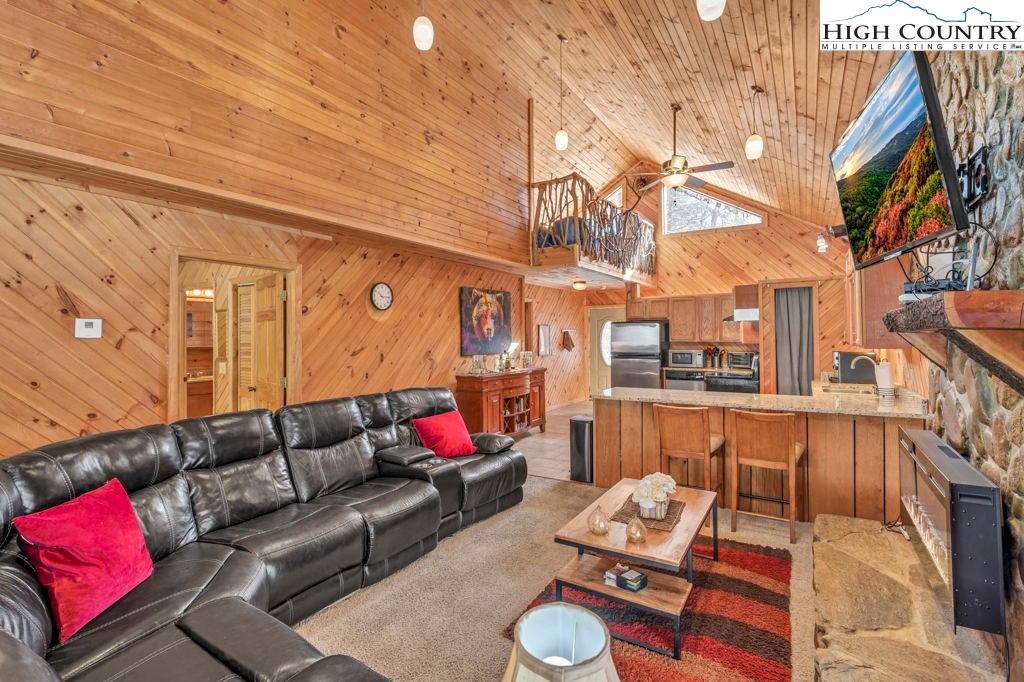 Spacious 2BR, 3BA Furnished Cabin in Linville Land Harbor, 2,075 Sq Ft, Two Levels, Turnkey and Full of Character: A rare opportunity in Linville Land Harbor, this fully furnished 2-bedroom, 3-bathroom cabin offers an impressive 2,075 sq ft across two stories, significantly larger than the typical home in the community. Warm, inviting, and thoughtfully designed, it blends mountain charm with functional living in a way that is suitable for full-time use, seasonal escapes, or investment flexibility. The main level features a comfortable living area with a fireplace, a full kitchen, and two well-appointed bedrooms. The guest bedroom includes access to a delightful secret loft, creating a unique hideaway for reading, play, or a memorable retreat for visiting guests. Large covered wraparound decks span three sides of the home, offering generous outdoor living space for dining, relaxing, or enjoying the mountain air. Covered golf-cart parking adds convenience and enhances the ease of navigating the community. The lower level is a standout entertainment space designed for hosting and relaxation. This level includes its own fireplace, creating a warm and inviting atmosphere. Three sofas, two of them sleeper sofas, provide generous seating and additional sleeping capacity. A large bar and wine-cellar area anchors the room, creating a natural gathering spot for evenings with friends and family. A second full kitchen and a full bathroom on this level allow guests to enjoy privacy and independence during extended stays. With its size, layout, and furnishings included, this home is ready for immediate enjoyment. The flexible floor plan and dual-level living make it especially appealing for those seeking a property with strong short-term rental potential. Linville Land Harbor enhances the experience with a wide range of amenities designed for year-round enjoyment. Residents and guests can take advantage of the 18-hole golf course, pickleball and tennis courts, walking trails, lake activities, a pool, a clubhouse, and a full calendar of community events. Whether relaxing at home or exploring the neighborhood, there is always something to enjoy in every season. This spacious, turnkey cabin offers a unique opportunity to own one of the larger homes in one of the High Country’s most desirable communities.