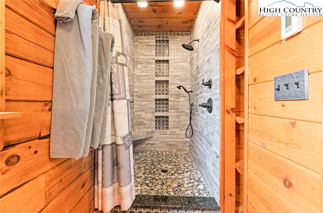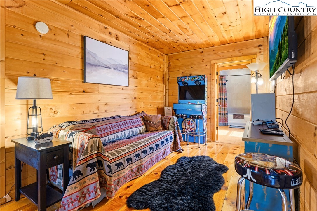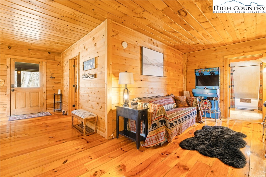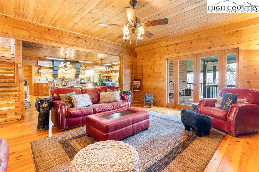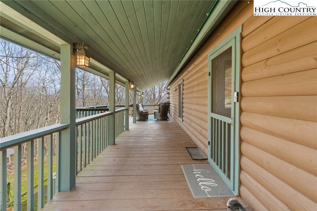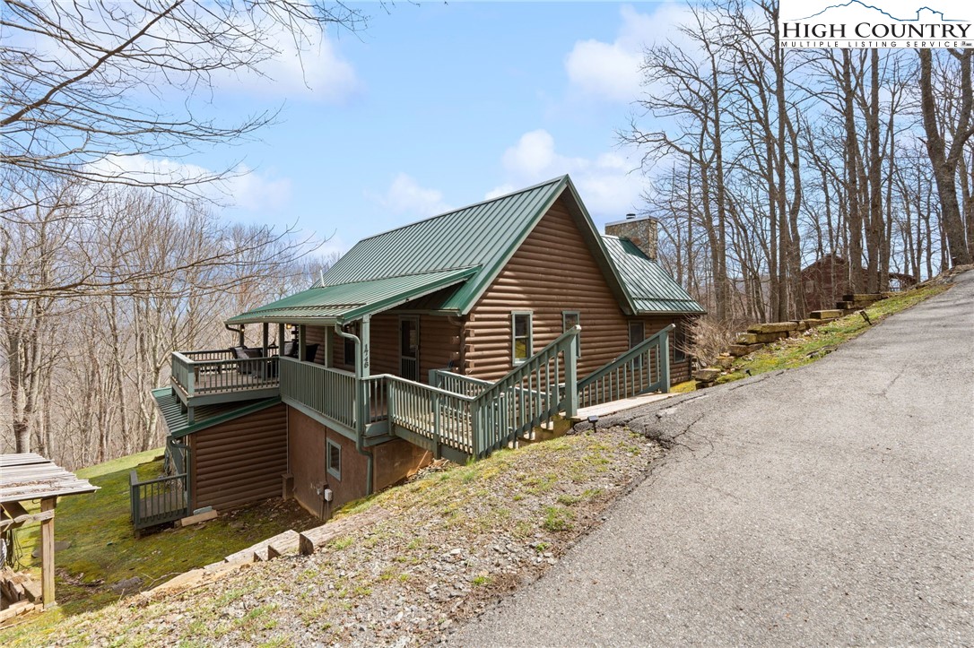 Escape to this rustic mountain cabin that captures the spirit of a western lodge—just five minutes from downtown Boone, yet offering a wonderfully secluded feel. Covered wrap around porch and open deck provide enjoyment throughout the seasons. Crafted with classic log construction, the home features a warm, woodsy interior and a stunning stone fireplace that anchors the inviting cozy living space. Full of character, this one-of-a-kind retreat offers delightful nooks and crannies at every turn, including a hidden loft room—far from your typical cabin layout. Floorplan features additional flexible sleeping areas to accommodate guests with ease. Entry foyer opens to a welcoming den/game area and sleeping quarters, while the main level is designed for gathering, with an open great room, kitchen, and dining area that flow seamlessly together. The kitchen is a joy! Expansive granite counters and anchored by a sizable island perfect for creating meals and entertaining family and friends. Primary bedroom and bath are tranquil with the warmth of natural elements. Full size spacious laundry room with sink is a great workspace. Just beyond is a handy mudroom. Step outside to enjoy easy access to the covered porch, where a relaxing hot tub awaits. The spacious yard is perfect for games, pets, or play, and the firepit area invites you to unwind under the stars. Whether you're seeking a personal mountain escape or a good investment, this property is a true destination—offering the best of Blue Ridge Mountain living and excellent rental potential. Sellers replaced well pump, pipe and wire ($9,776). Hot tub purchased in 2022 ($11,430).