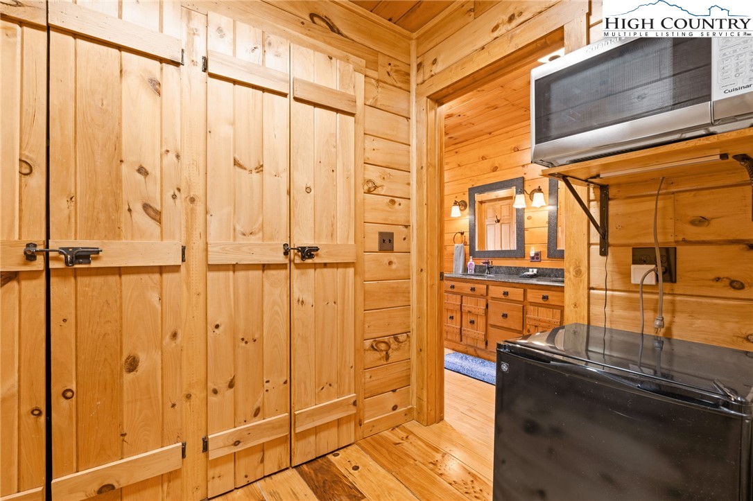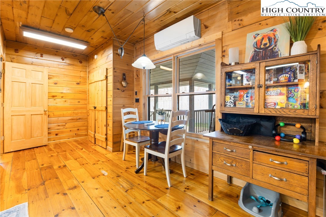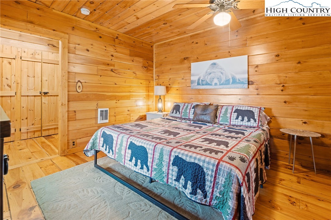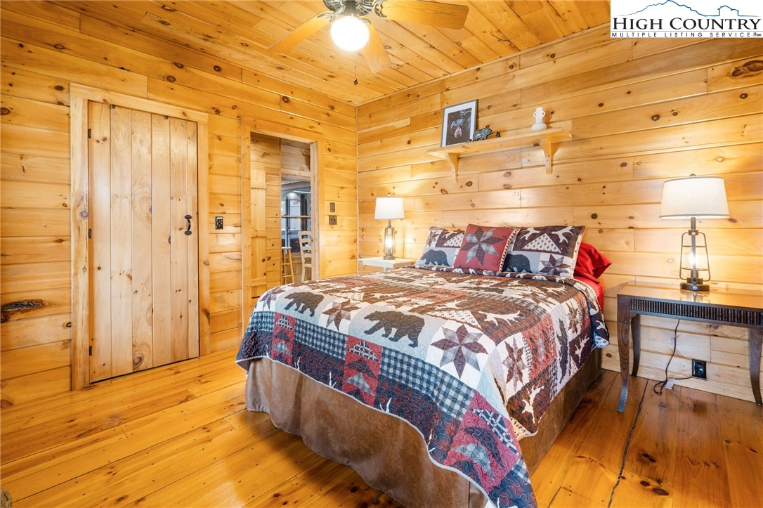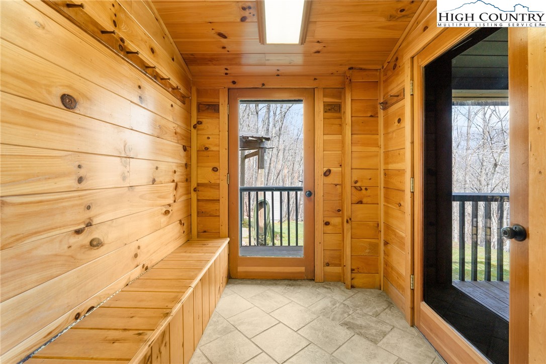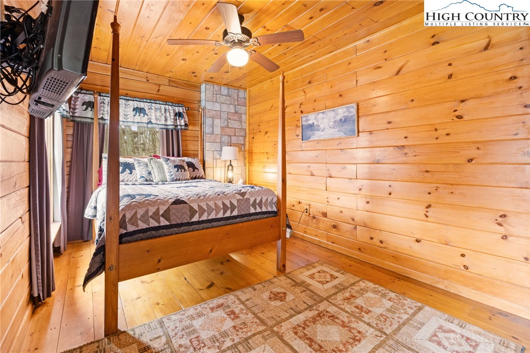 Escape to this rustic mountain cabin that captures the spirit of a western lodge—just five minutes from downtown Boone, yet offering a wonderfully secluded feel. Covered wrap around porch and open deck provide enjoyment throughout the seasons. Crafted with classic log construction, the home features a warm, woodsy interior and a stunning stone fireplace that anchors the inviting cozy living space. Full of character, this one-of-a-kind retreat offers delightful nooks and crannies at every turn, including a hidden loft room—far from your typical cabin layout. Floorplan features additional flexible sleeping areas to accommodate guests with ease. Entry foyer opens to a welcoming den/game area and sleeping quarters, while the main level is designed for gathering, with an open great room, kitchen, and dining area that flow seamlessly together. The kitchen is a joy! Expansive granite counters and anchored by a sizable island perfect for creating meals and entertaining family and friends. Primary bedroom and bath are tranquil with the warmth of natural elements. Full size spacious laundry room with sink is a great workspace. Just beyond is a handy mudroom. Step outside to enjoy easy access to the covered porch, where a relaxing hot tub awaits. The spacious yard is perfect for games, pets, or play, and the firepit area invites you to unwind under the stars. Whether you're seeking a personal mountain escape or a good investment, this property is a true destination—offering the best of Blue Ridge Mountain living and excellent rental potential. Sellers replaced well pump, pipe and wire ($9,776). Hot tub purchased in 2022 ($11,430).