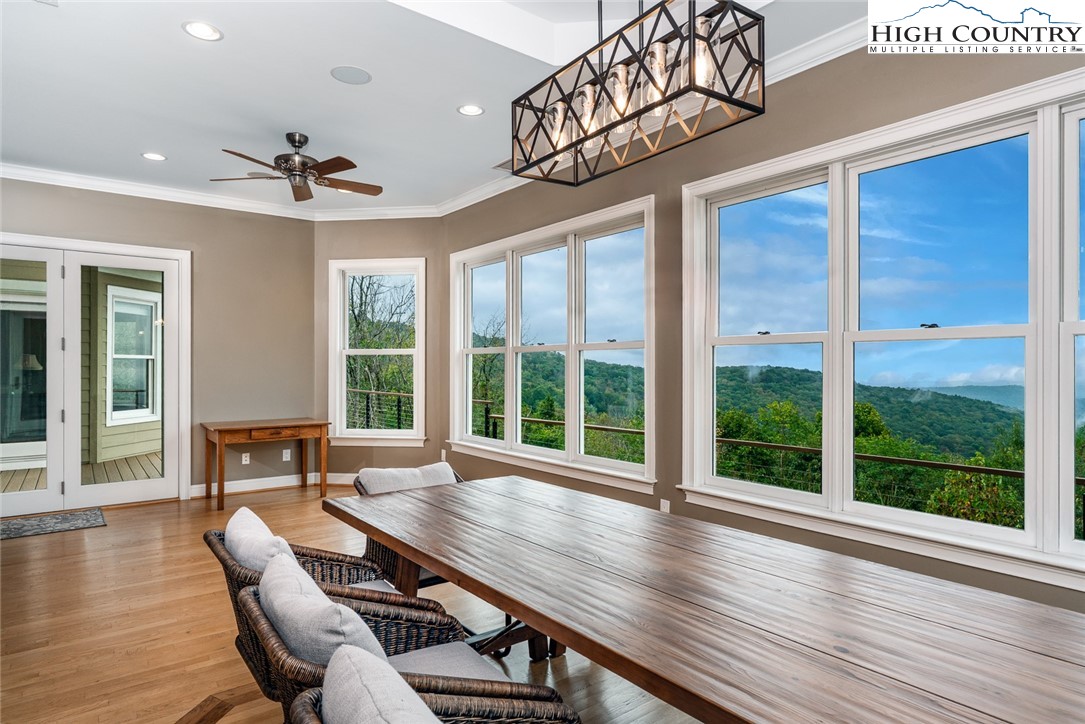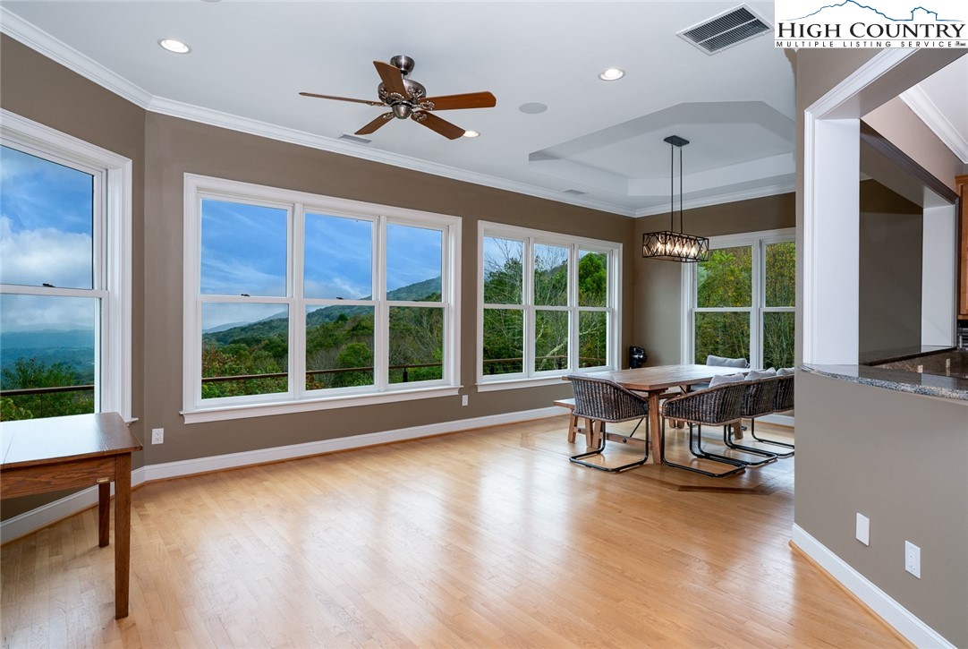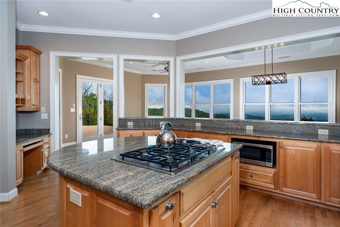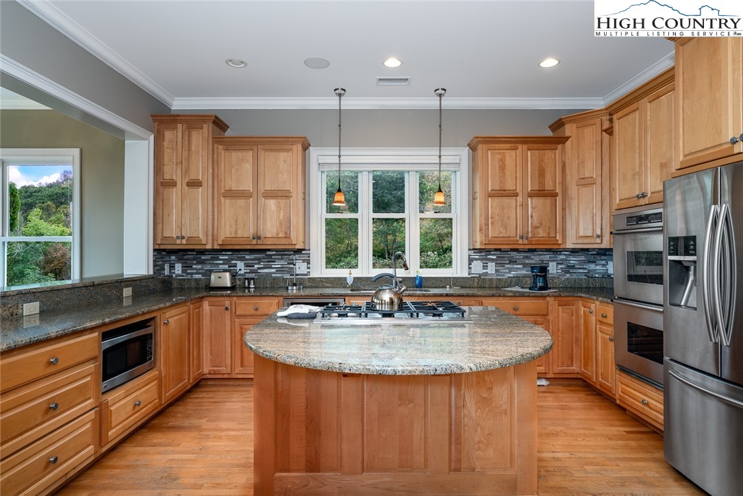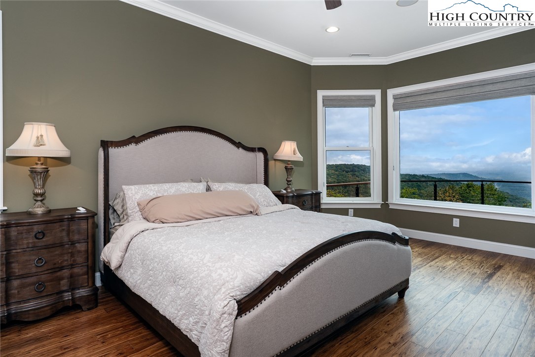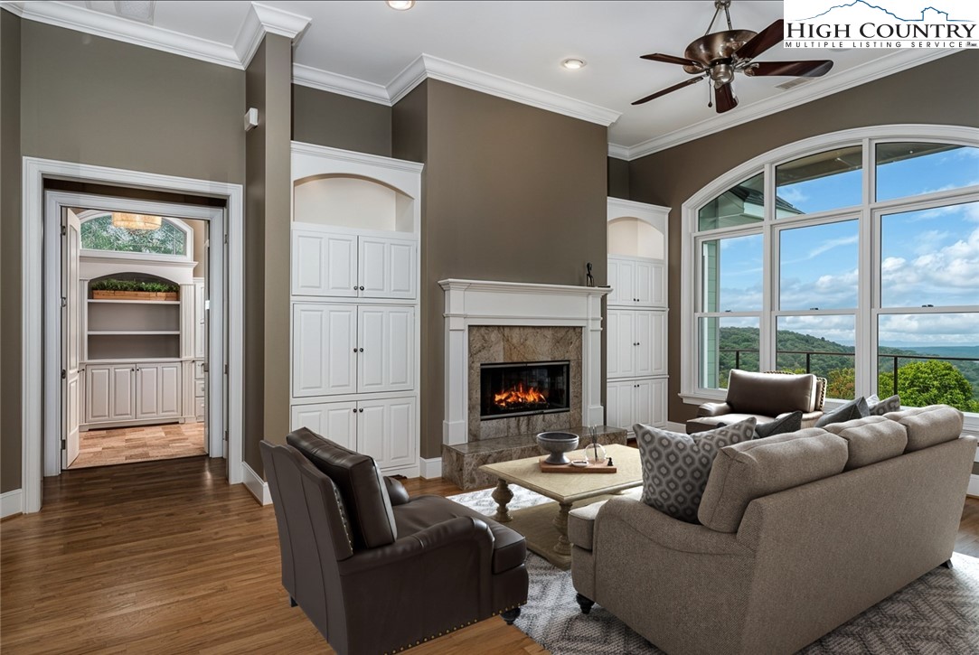 Enjoy breathtaking views from every room in this exceptional custom home, located just minutes from downtown Boone. With over 4,000 square feet, this 4-bedroom, 4.5-bath residence epitomizes grand luxury and comfort. The main level of living features soaring ceilings and 8-foot doorways. The master bedroom and bath are enhanced by elegant barrel ceilings. This home is wonderful for entertaining The inviting entry foyer opens to a spacious living room with a marble fireplace and built-in cabinetry, seamlessly connected to the gourmet kitchen with a massive island, expansive dining area, and a cozy keeping room—all offering incredible vistas. The luxurious main-level master suite features heated floors and a spa-inspired bath, enabling convenient single-level living. Downstairs, a media/family room, kitchenette, and three additional bedrooms provide lovely space for family and guests in a walk-out lower level. Each bedroom offers stunning views and and has an en-suite bath. The flexible layout works exceptionally well for a growing family or to be used as an in-law suite. There is level entry through the lower-level garage. Additional highlights include abundant paved parking with a main-level two-car garage and a lower-level one-car garage. Large 1.53-acre lot. This prime location is just seven minutes from Downtown Boone, offering both tranquility and convenience.