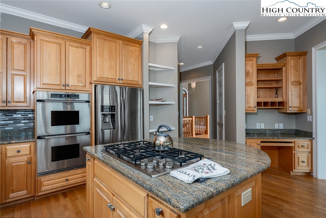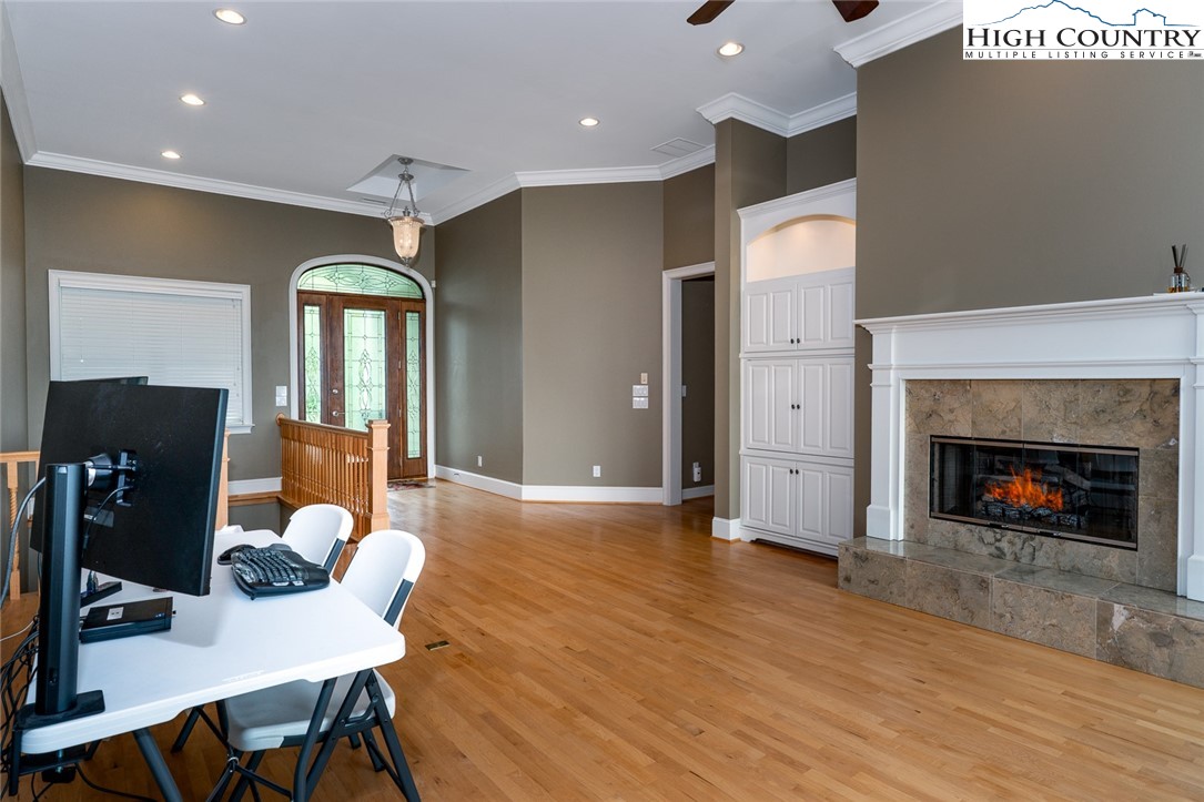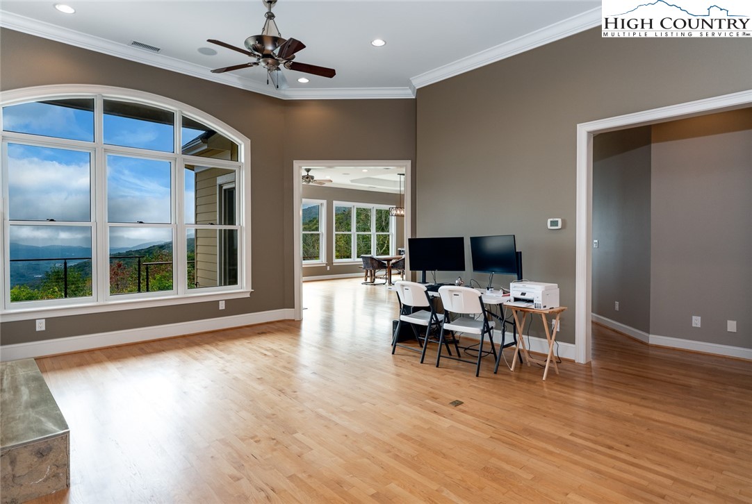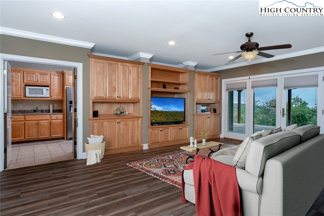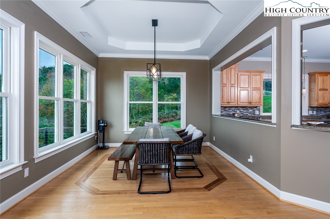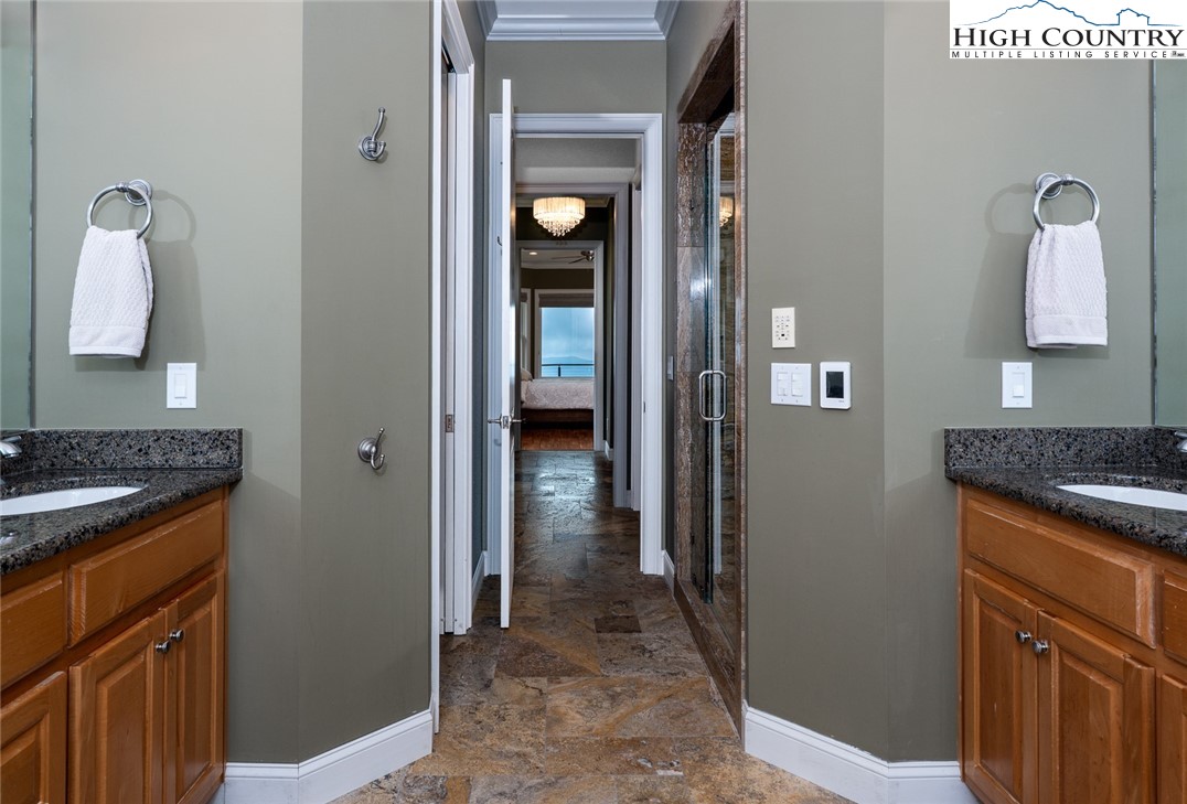 Enjoy breathtaking views from every room in this exceptional custom home, located just minutes from downtown Boone. With over 4,000 square feet, this 4-bedroom, 4.5-bath residence epitomizes grand luxury and comfort. The main level of living features soaring ceilings and 8-foot doorways. The master bedroom and bath are enhanced by elegant barrel ceilings. This home is wonderful for entertaining The inviting entry foyer opens to a spacious living room with a marble fireplace and built-in cabinetry, seamlessly connected to the gourmet kitchen with a massive island, expansive dining area, and a cozy keeping room—all offering incredible vistas. The luxurious main-level master suite features heated floors and a spa-inspired bath, enabling convenient single-level living. Downstairs, a media/family room, kitchenette, and three additional bedrooms provide lovely space for family and guests in a walk-out lower level. Each bedroom offers stunning views and and has an en-suite bath. The flexible layout works exceptionally well for a growing family or to be used as an in-law suite. There is level entry through the lower-level garage. Additional highlights include abundant paved parking with a main-level two-car garage and a lower-level one-car garage. Large 1.53-acre lot. This prime location is just seven minutes from Downtown Boone, offering both tranquility and convenience.