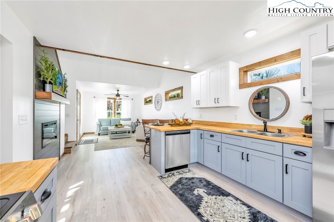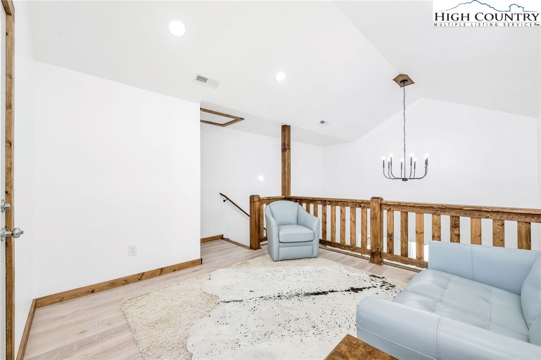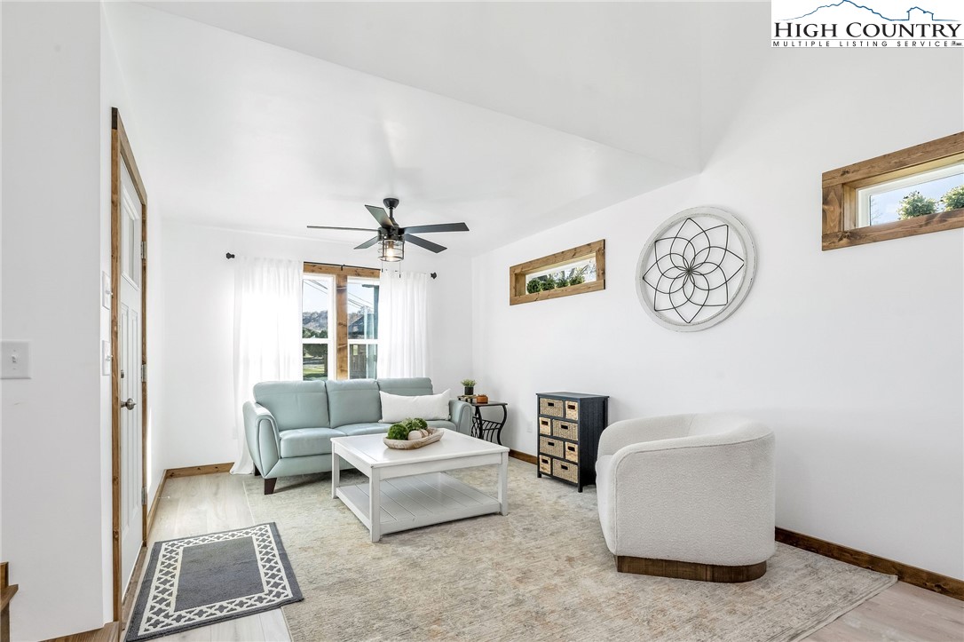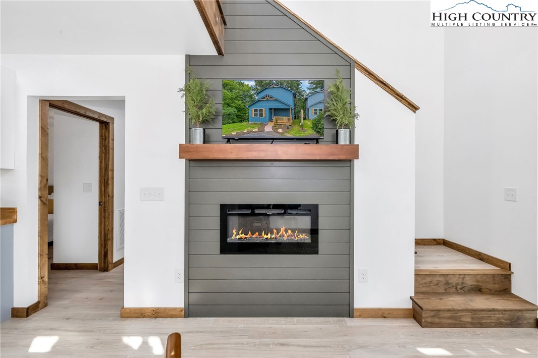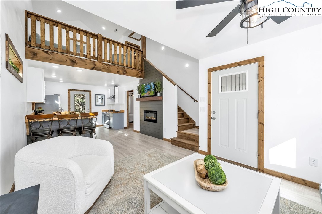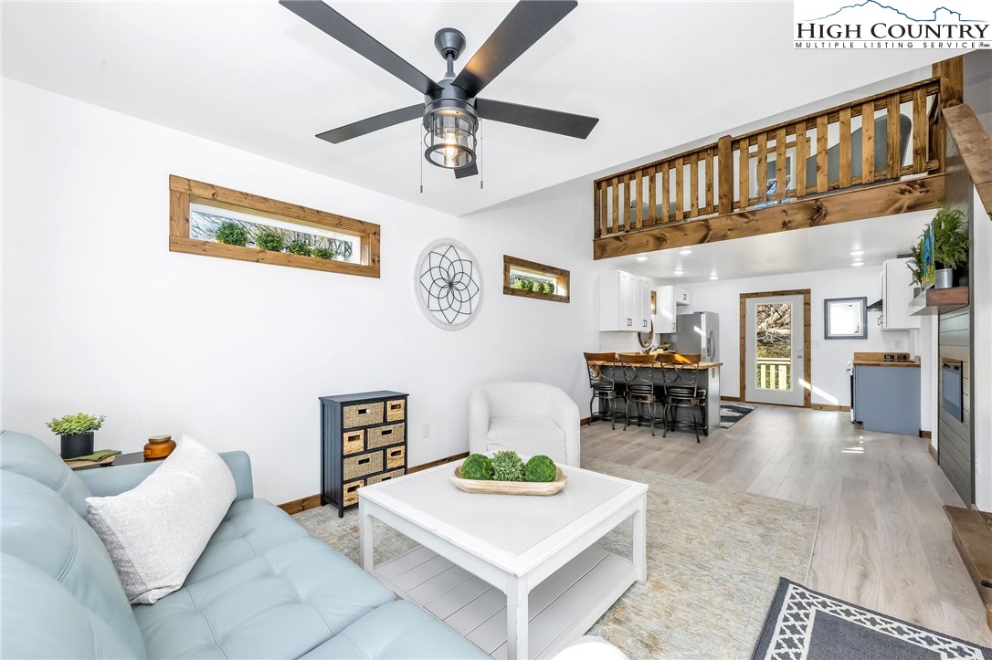 PRICE REDUCTION AND NOW SOLD FURNISHED! Brand-new construction just minutes from downtown West Jefferson! This charming cottage-style home is set in a unique community where homes are close-knit, yet surrounded by spacious open common areas—perfect for kids, pets, or simply enjoying the outdoors. Suitable for one, two, or even a small family, it’s built with quality craftsmanship and covered by a one-year builder’s warranty. Exterior highlights include LP SmartSide board-and-batten siding, a stone foundation, and durable LVP flooring throughout. The main level offers an open floor plan with a soaring vaulted ceiling in the living area, a sleek electric fireplace, and a kitchen with shaker-style cabinetry, butcher block countertops, and stainless steel appliances. You’ll also find a bedroom, full bath, laundry area, and covered porches on both the front and rear. Upstairs, an open loft—perfect for a home office or sitting area—opens to a covered deck and adjoins a second bedroom featuring a walk-in closet and full bath. The primary bedroom can be on either level, offering flexible living options. Conveniently located only 5.4 miles from West Jefferson, a vibrant mountain town filled with locally owned shops, boutiques, restaurants, and year-round events. The New River winds through the county, offering endless opportunities for fishing, canoeing, and kayaking. Just 20 miles to Boone. All furniture & furnishings will be included.