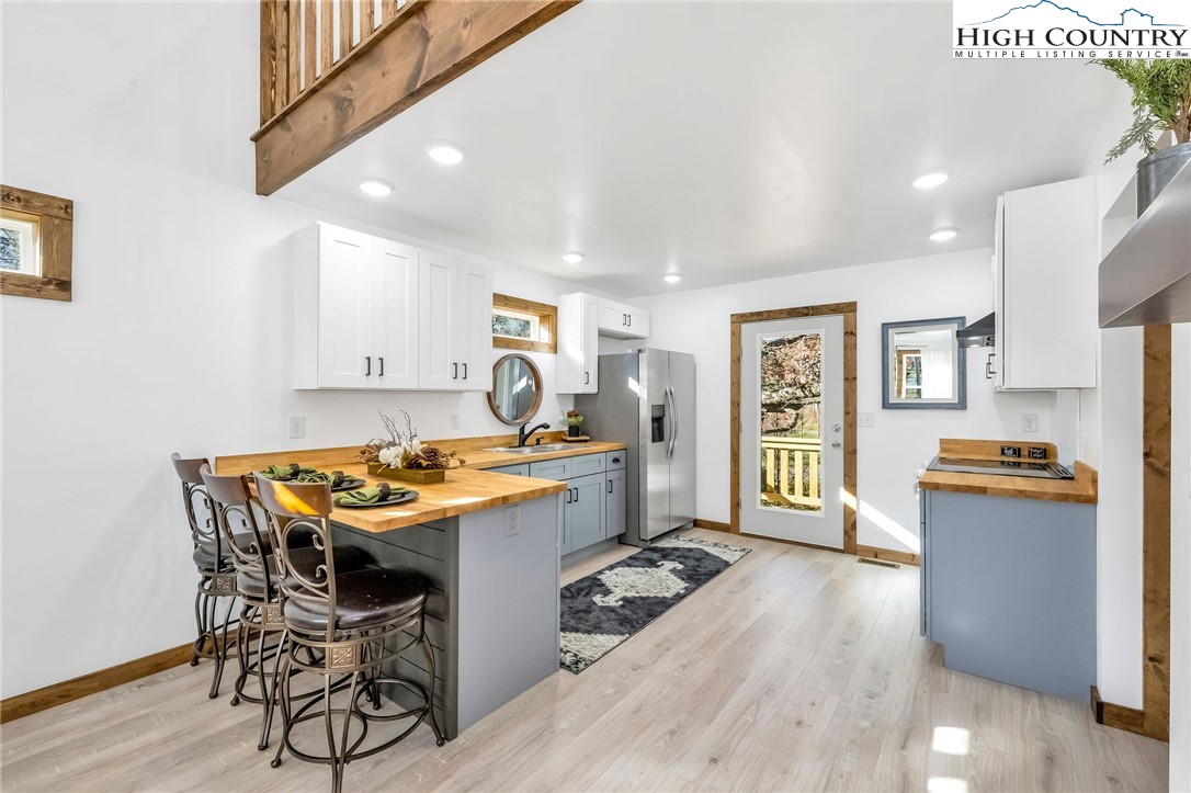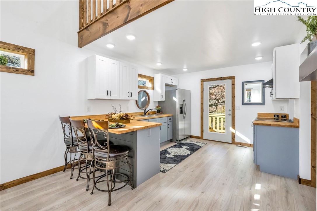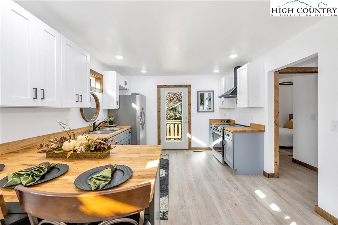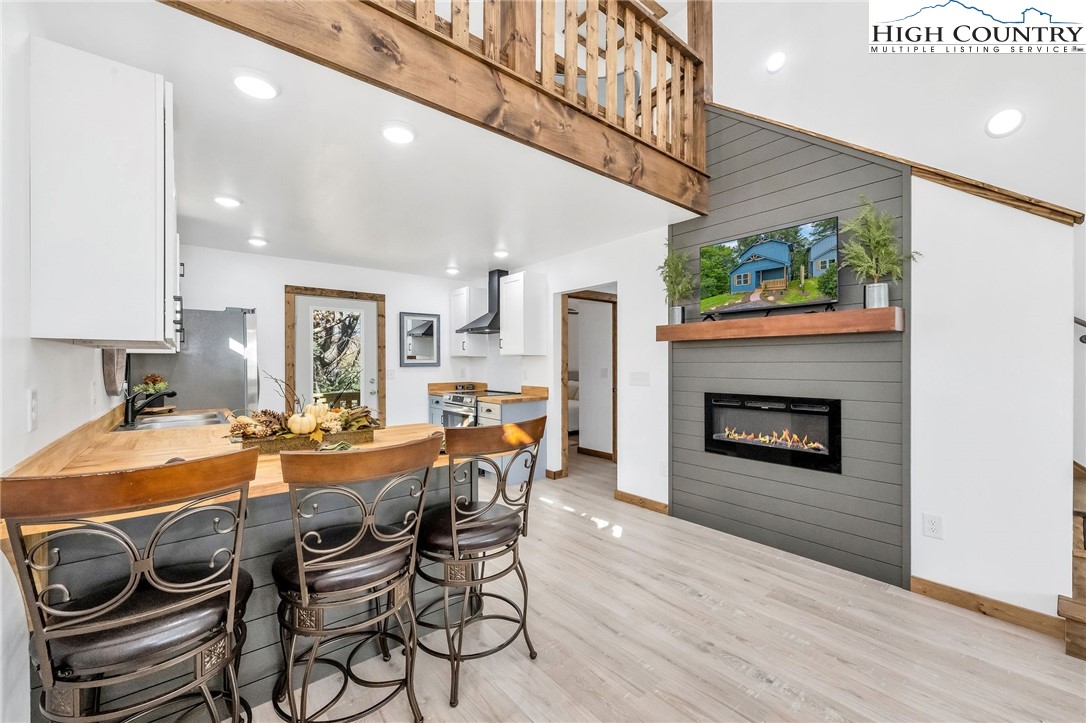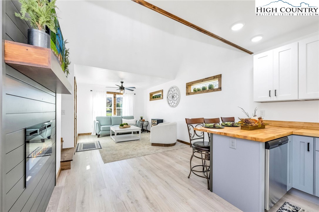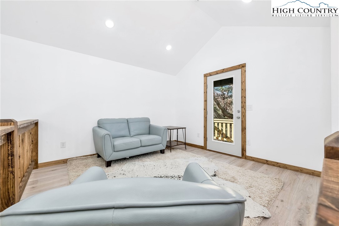 PRICE REDUCTION AND NOW SOLD FURNISHED! Brand-new construction just minutes from downtown West Jefferson! This charming cottage-style home is set in a unique community where homes are close-knit, yet surrounded by spacious open common areas—perfect for kids, pets, or simply enjoying the outdoors. Suitable for one, two, or even a small family, it’s built with quality craftsmanship and covered by a one-year builder’s warranty. Exterior highlights include LP SmartSide board-and-batten siding, a stone foundation, and durable LVP flooring throughout. The main level offers an open floor plan with a soaring vaulted ceiling in the living area, a sleek electric fireplace, and a kitchen with shaker-style cabinetry, butcher block countertops, and stainless steel appliances. You’ll also find a bedroom, full bath, laundry area, and covered porches on both the front and rear. Upstairs, an open loft—perfect for a home office or sitting area—opens to a covered deck and adjoins a second bedroom featuring a walk-in closet and full bath. The primary bedroom can be on either level, offering flexible living options. Conveniently located only 5.4 miles from West Jefferson, a vibrant mountain town filled with locally owned shops, boutiques, restaurants, and year-round events. The New River winds through the county, offering endless opportunities for fishing, canoeing, and kayaking. Just 20 miles to Boone. All furniture & furnishings will be included.