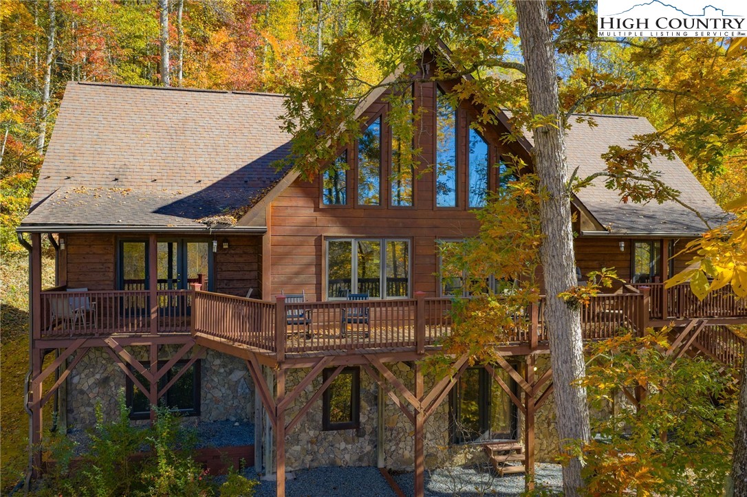 Step inside and you’ll immediately be welcomed by the soaring great room, where vaulted wood ceilings, exposed beams, and a wall of windows flood the space with natural light. The impressive floor-to-ceiling stone fireplace serves as a dramatic focal point, nice for gathering with friends after a day on the water or a winter afternoon in the mountains. Rich hardwood floors run throughout the main level, enhancing the warm, lodge-like feel of the home. The open-concept layout connects the great room seamlessly to the kitchen and dining areas, making it great for entertaining. The kitchen is both rustic and refined, with custom wood cabinetry, granite countertops, stainless steel appliances, and a center island with bar seating. Whether preparing a gourmet meal or a quick snack before heading out to fish, you’ll appreciate the generous counter space and thoughtful design. Just outside, an expansive deck stretches the length of the home, offering a perfect vantage point to enjoy the serene, wooded surroundings and long range views of Grandfather Mountain. Sip your morning coffee while the mist rises over the river, or share stories under the stars after a day exploring Boone’s High Country. Rocking chairs and an outdoor dining table create multiple spaces to relax or entertain in the fresh mountain air. The home’s design accommodates both privacy and togetherness, with spacious bedrooms and well-appointed baths. The lower level offers even more space to spread out, featuring a large den/game room that’s fun for movie nights, billiards, or hosting overnight guests. This flexible space ensures that the home works just as well for intimate getaways as it does for family gatherings or weekend retreats with friends. Outside your door, Twin Rivers offers over 7,500 feet of world-class catch-and-release trout fishing waters. This beautiful stretch of the Watauga River and Boone Fork is exclusively available to residents, providing an unparalleled experience for anglers of all skill levels. When you’re not fishing, the community’s trails invite you to hike, birdwatch, or simply enjoy the unspoiled beauty of the High Country. Located just minutes from Boone, Blowing Rock, and the Blue Ridge Parkway, this property offers the rare combination of privacy and convenience. You’re under 30 minutes to shopping, dining, and year-round recreation, from skiing at Appalachian Ski Mountain & Sugar Mountain, to golf, hiking, and exploring the charming mountain towns nearby. Built in 2003, this meticulously maintained home is move-in ready, offering a 3-bedroom septic, high-end finishes throughout, and the perfect balance of cabin charm and luxury comfort. Whether you’re seeking a full-time residence, a seasonal getaway, or a legacy property to pass down through generations, this retreat in Boone’s Twin Rivers community offers it all—an extraordinary home in an extraordinary setting. Here, life moves at the pace of the river—peaceful, steady, and endlessly rewarding.