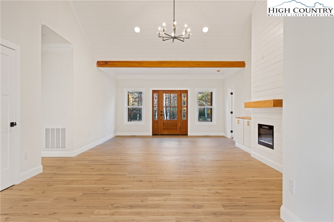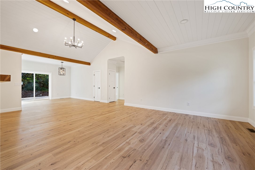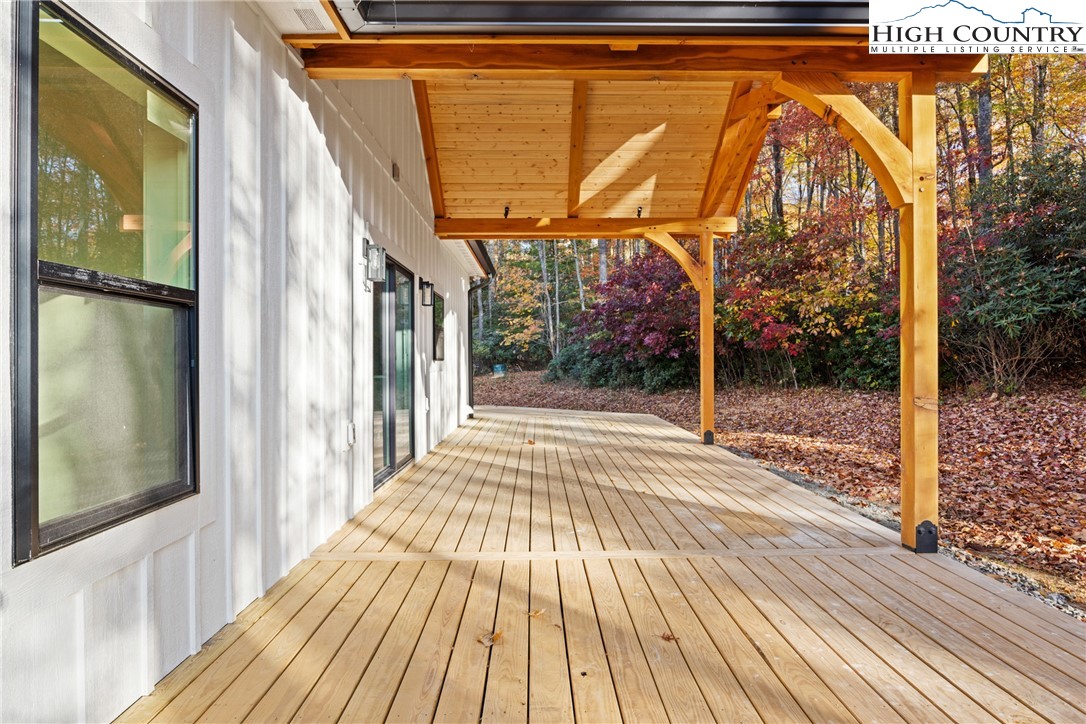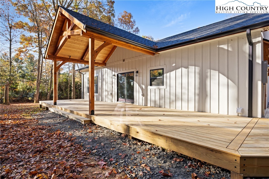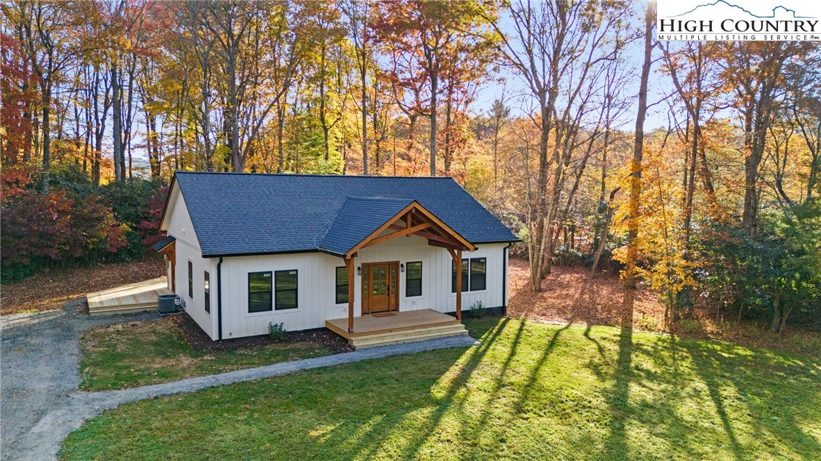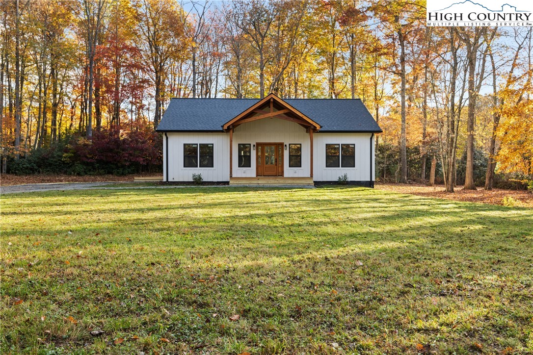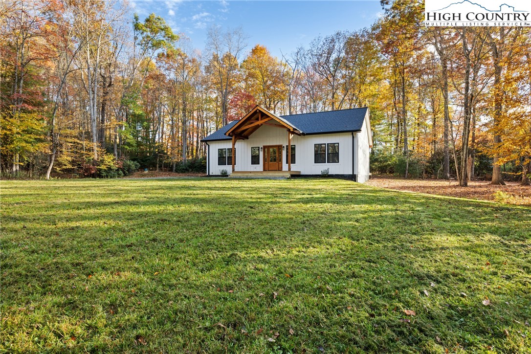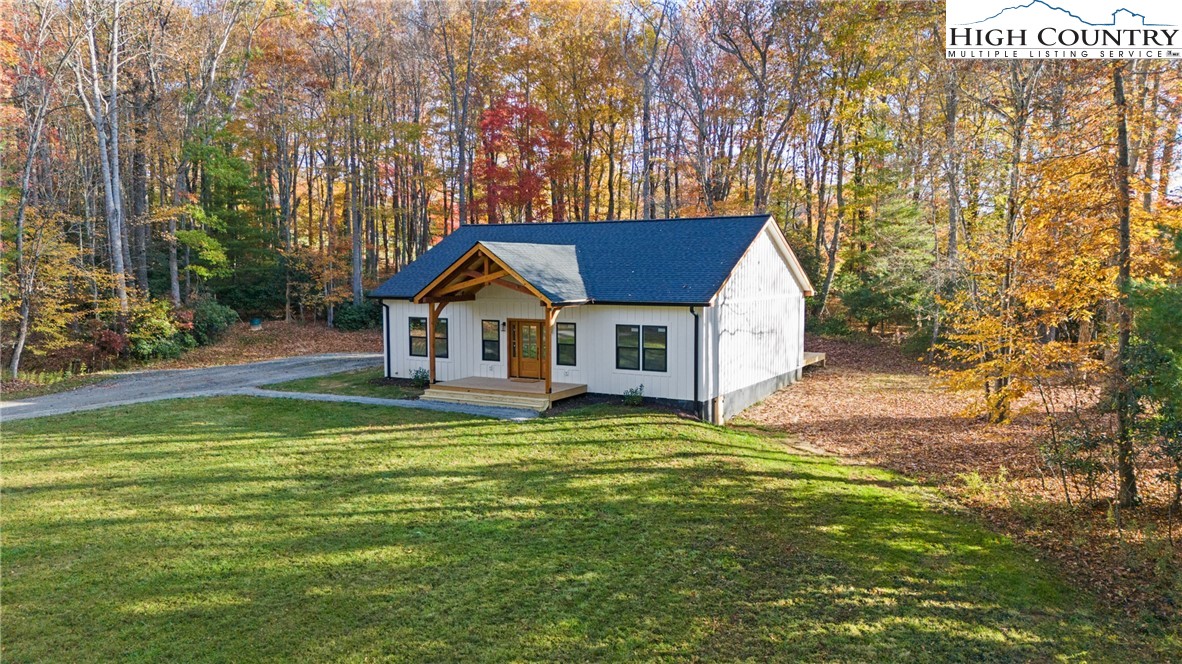 Discover this brand-new custom home, perfectly situated in a beautiful setting, with easy access to both Boone and West Jefferson. Nestled on a large, open one-acre lot, the property features a peaceful mix of open space with trees along the front and a natural buffer of trees along the side and back, offering both beauty and privacy. Inside, the home showcases a spacious open-concept floor plan that seamlessly connects the living, kitchen, and dining areas. The great room features a vaulted shiplap ceiling, wooden beams, and a fireplace with custom built-ins on each side, creating a warm and inviting focal point. The kitchen is a showstopper with quartz countertops, soft-close cabinetry, a farmhouse sink, pot filler, pantry, and stainless steel appliances. A mudroom is conveniently located off the kitchen and includes a built-in storage bench and ample storage space with a separate entrance. Throughout the home, you will find high-end light oak LVP flooring, complemented by custom tile in the bathrooms. The private master wing features a spacious bedroom with crown molding, a walk-in closet, and a luxurious bath, with a granite double vanity and large tiled shower. Two additional bedrooms on the opposite side of the home offer the same quality finishes, along with a beautiful full bath featuring a granite vanity and tub/shower combo. Outdoor living is just as impressive, with a vaulted covered front deck overlooking the manicured front yard and a large open and covered back deck ideal for entertaining or relaxing. With a private well and septic and no HOA fees, this home offers the perfect combination of luxury, comfort, and convenience in a small, quiet community. Ashe County Building Inspections to arrive this week to give CO.