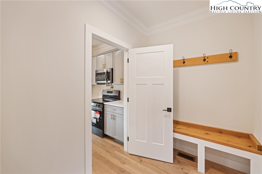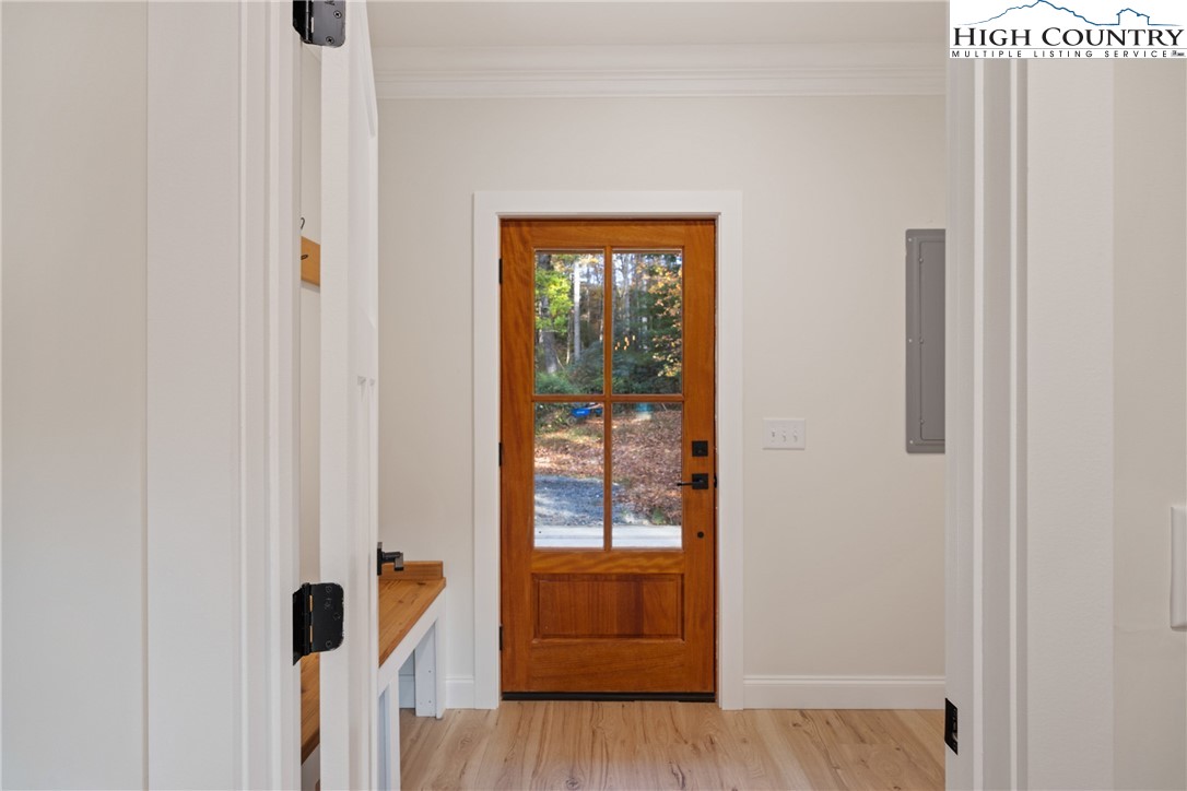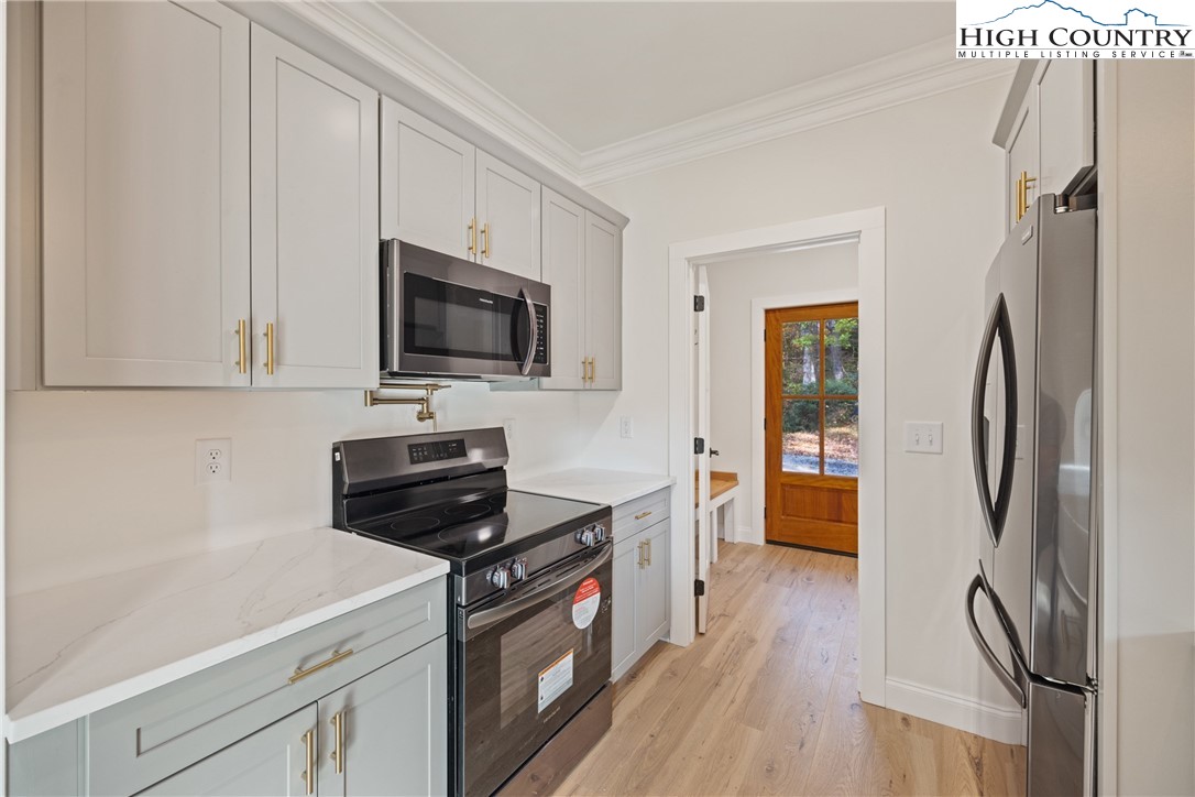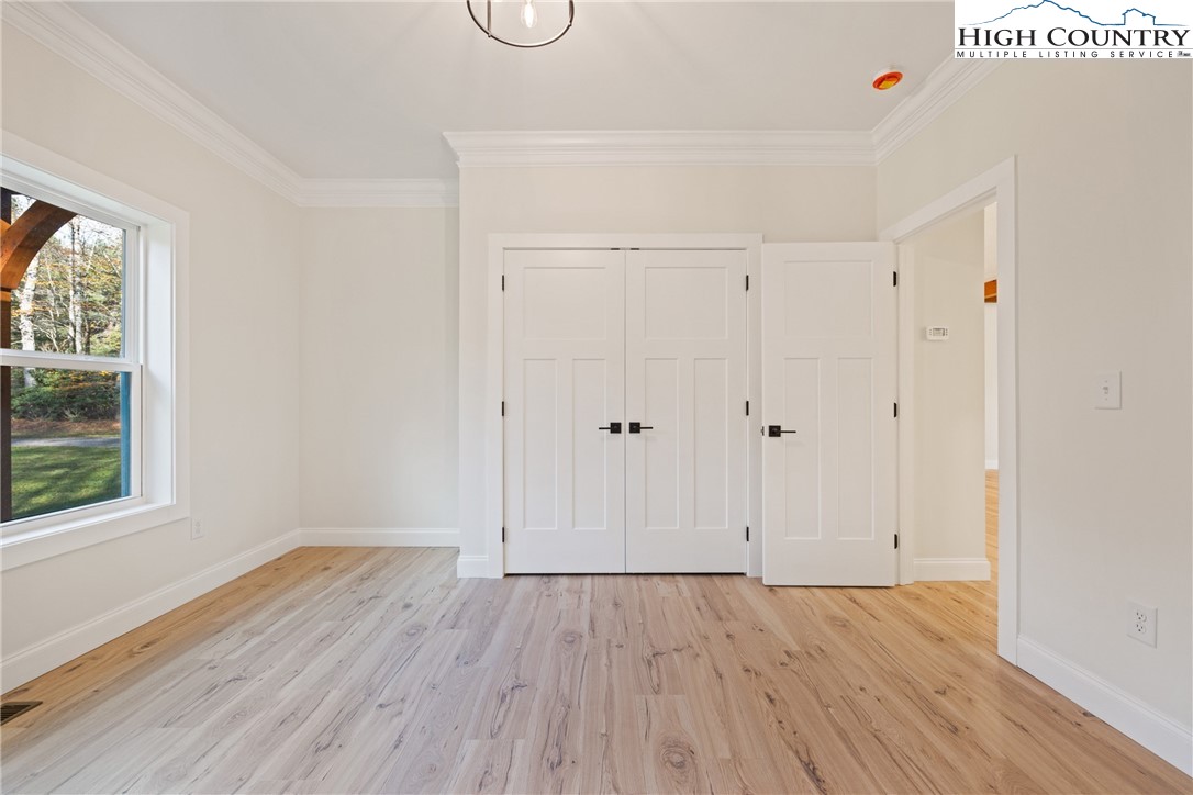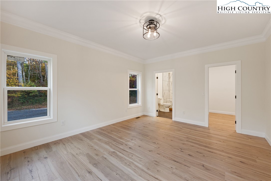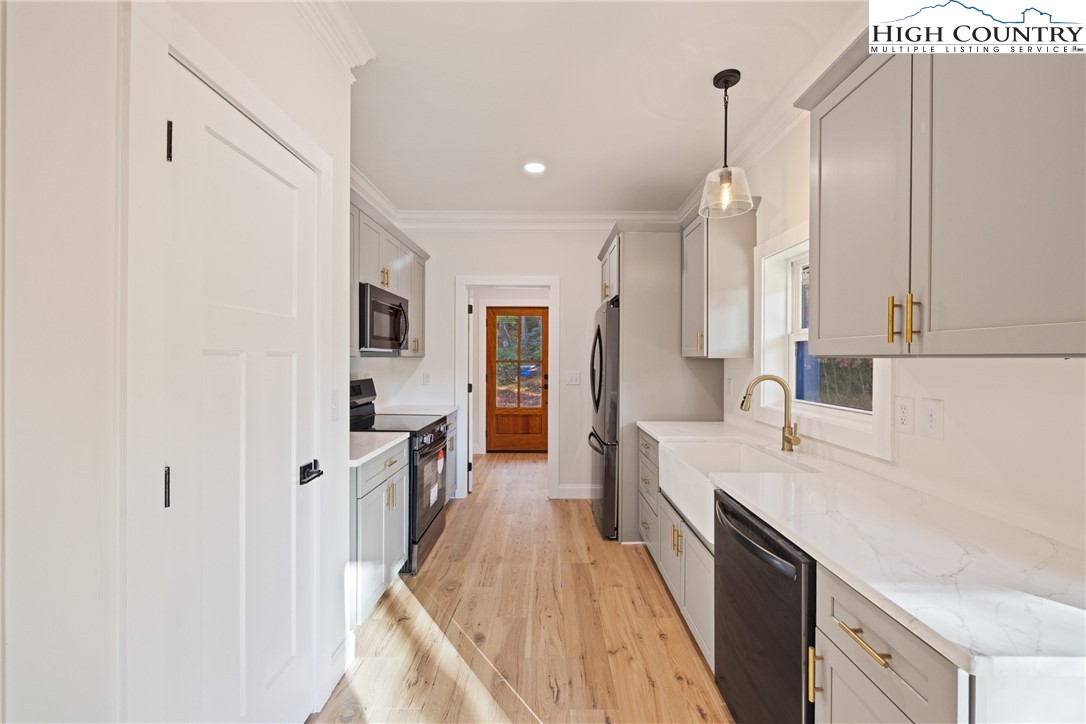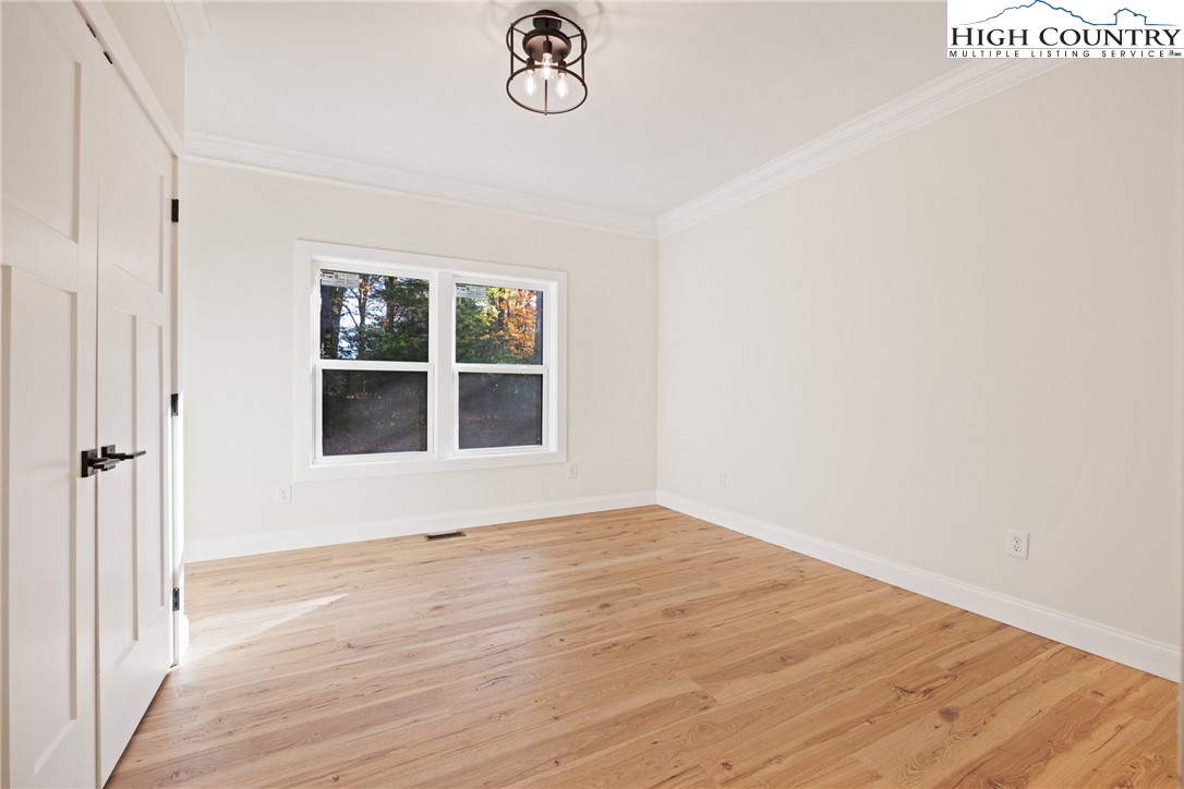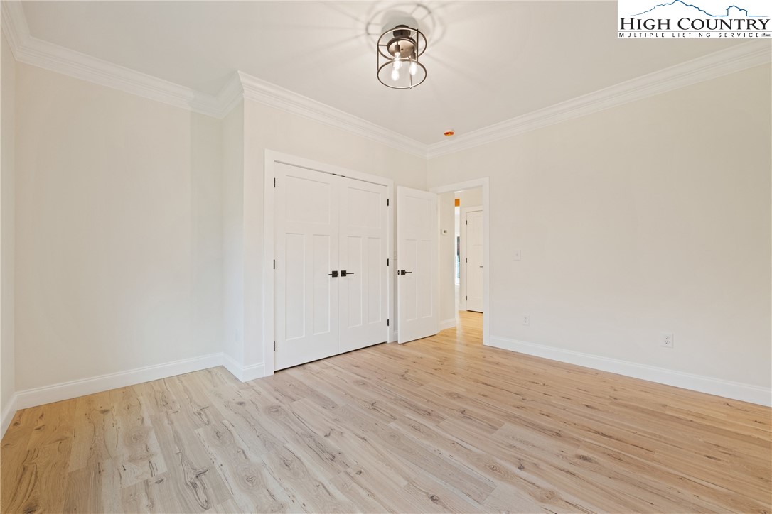 Discover this brand-new custom home, perfectly situated in a beautiful setting, with easy access to both Boone and West Jefferson. Nestled on a large, open one-acre lot, the property features a peaceful mix of open space with trees along the front and a natural buffer of trees along the side and back, offering both beauty and privacy. Inside, the home showcases a spacious open-concept floor plan that seamlessly connects the living, kitchen, and dining areas. The great room features a vaulted shiplap ceiling, wooden beams, and a fireplace with custom built-ins on each side, creating a warm and inviting focal point. The kitchen is a showstopper with quartz countertops, soft-close cabinetry, a farmhouse sink, pot filler, pantry, and stainless steel appliances. A mudroom is conveniently located off the kitchen and includes a built-in storage bench and ample storage space with a separate entrance. Throughout the home, you will find high-end light oak LVP flooring, complemented by custom tile in the bathrooms. The private master wing features a spacious bedroom with crown molding, a walk-in closet, and a luxurious bath, with a granite double vanity and large tiled shower. Two additional bedrooms on the opposite side of the home offer the same quality finishes, along with a beautiful full bath featuring a granite vanity and tub/shower combo. Outdoor living is just as impressive, with a vaulted covered front deck overlooking the manicured front yard and a large open and covered back deck ideal for entertaining or relaxing. With a private well and septic and no HOA fees, this home offers the perfect combination of luxury, comfort, and convenience in a small, quiet community. Ashe County Building Inspections to arrive this week to give CO.
