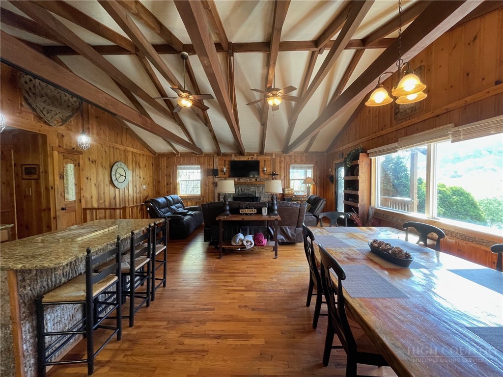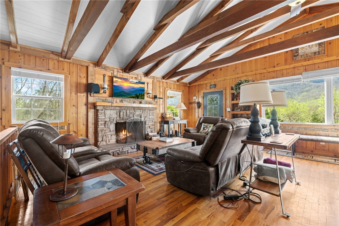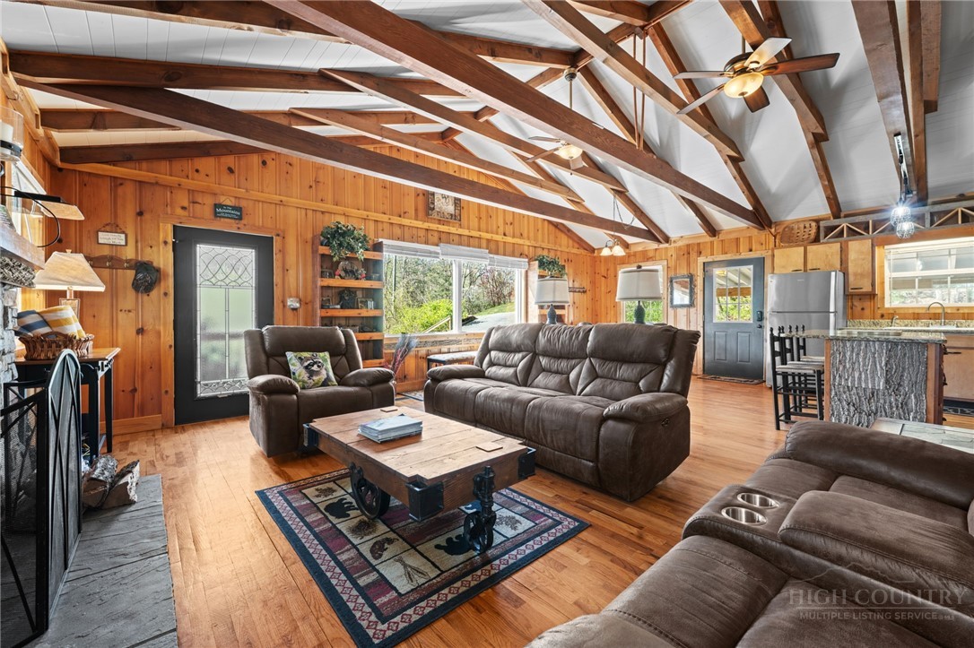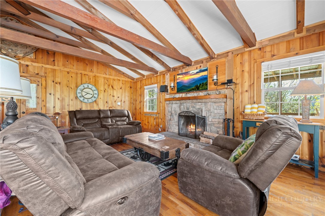 Perched in the heart of the High Country, this beautifully decorated 4-bedroom, 2-bath mountain cottage offers breathtaking, unobstructed views of Grandfather Mountain and the perfect blend of comfort and charm. Step inside to an inviting open floor plan featuring a stunning vaulted ceiling with exposed beams and a cozy wood-burning fireplace—ideal for relaxing after a day of exploring the mountains. Sit at the dining room table and take in the beautiful view of Grandfather Mountain. The main level offers two spacious bedrooms and one full bath providing convenient one-level living. The kitchen is both stylish and functional, complete with stainless steel appliances and granite countertops, an island that is perfect for entertaining family and friends. Downstairs you will find another 2 bedrooms, bath and a spacious laundry area with outside access. Outside, enjoy over 2 acres of peaceful mountain living with exceptional outdoor amenities including a hot tub, fire pit, and plenty of space to unwind under the stars. Relax on the back covered deck to take in the phenomenal views and mountain air. A carport adds convenience and protection year-round. Whether you’re looking for a full-time residence, vacation getaway, or investment opportunity, this property offers easy access to everything the High Country has to offer—hiking, skiing, dining, and more—all while enjoying a truly spectacular view. UPDATES: HVAC 2 years, new dishwasher, privacy fence by the Hot tub, Fire Pit with stairs going down. FURNISHED AND TURN KEY with a few exceptions. This home was remodeled in 2012. Plenty of driveway parking as well as the carport.