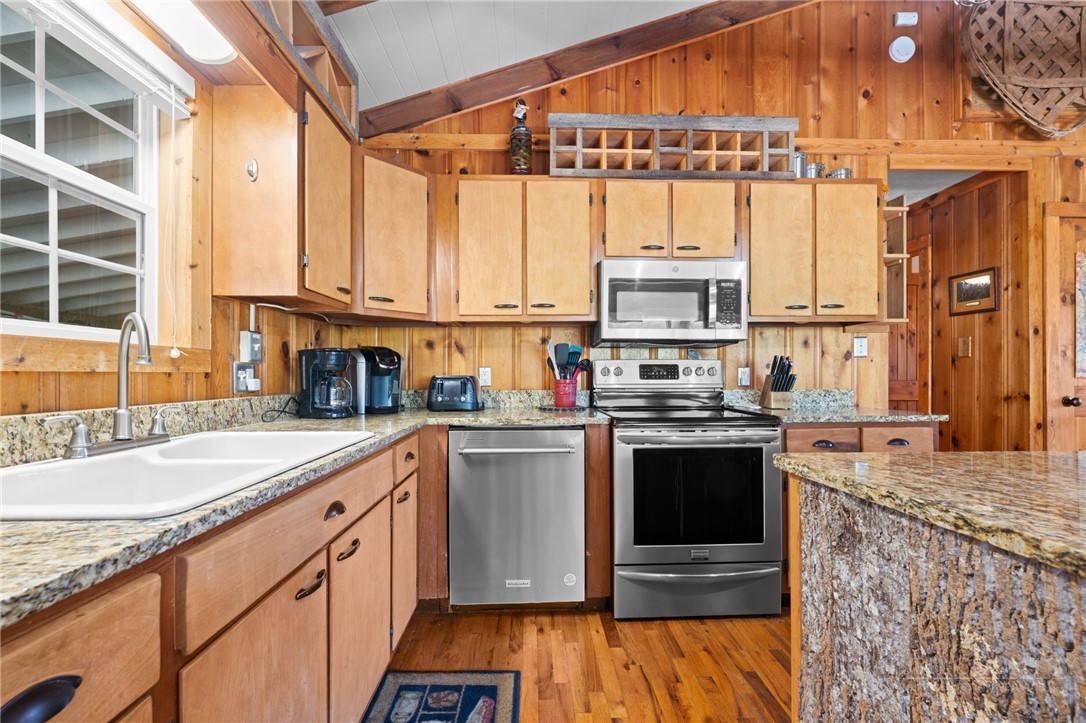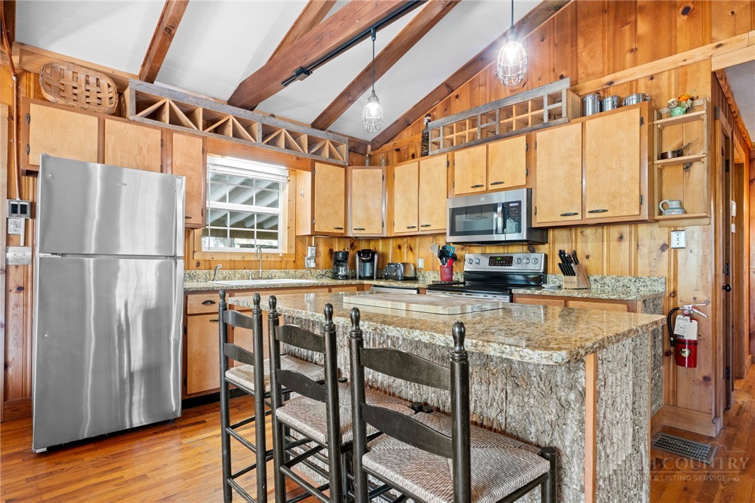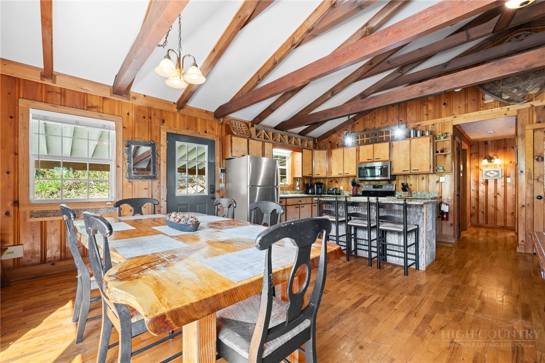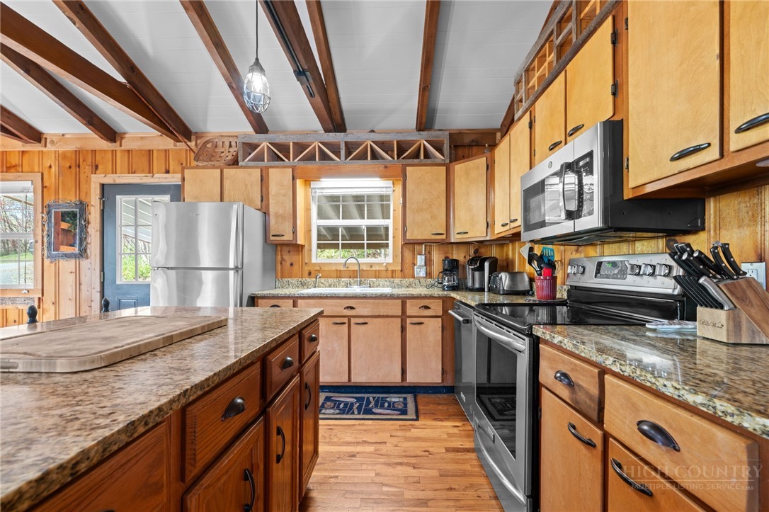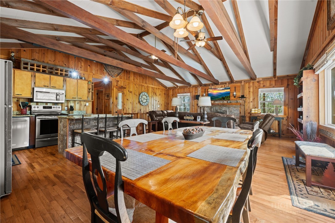 Perched in the heart of the High Country, this beautifully decorated 4-bedroom, 2-bath mountain cottage offers breathtaking, unobstructed views of Grandfather Mountain and the perfect blend of comfort and charm. Step inside to an inviting open floor plan featuring a stunning vaulted ceiling with exposed beams and a cozy wood-burning fireplace—ideal for relaxing after a day of exploring the mountains. Sit at the dining room table and take in the beautiful view of Grandfather Mountain. The main level offers two spacious bedrooms and one full bath providing convenient one-level living. The kitchen is both stylish and functional, complete with stainless steel appliances and granite countertops, an island that is perfect for entertaining family and friends. Downstairs you will find another 2 bedrooms, bath and a spacious laundry area with outside access. Outside, enjoy over 2 acres of peaceful mountain living with exceptional outdoor amenities including a hot tub, fire pit, and plenty of space to unwind under the stars. Relax on the back covered deck to take in the phenomenal views and mountain air. A carport adds convenience and protection year-round. Whether you’re looking for a full-time residence, vacation getaway, or investment opportunity, this property offers easy access to everything the High Country has to offer—hiking, skiing, dining, and more—all while enjoying a truly spectacular view. UPDATES: HVAC 2 years, new dishwasher, privacy fence by the Hot tub, Fire Pit with stairs going down. FURNISHED AND TURN KEY with a few exceptions. This home was remodeled in 2012. Plenty of driveway parking as well as the carport.