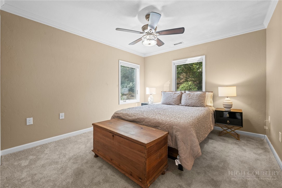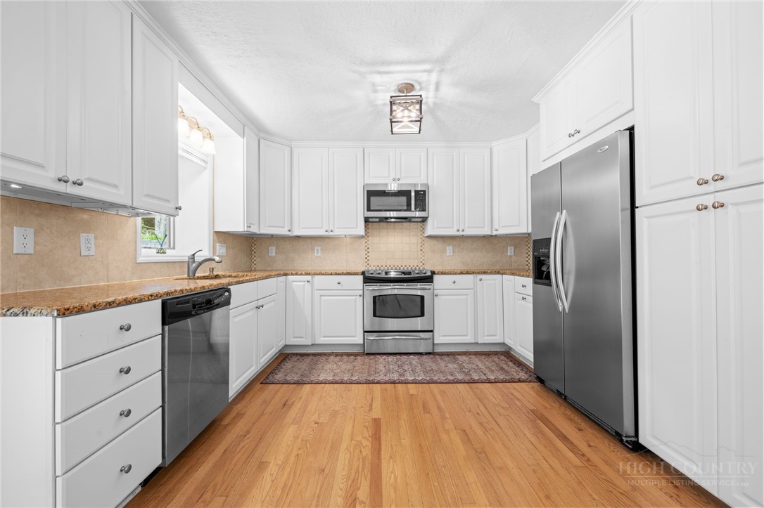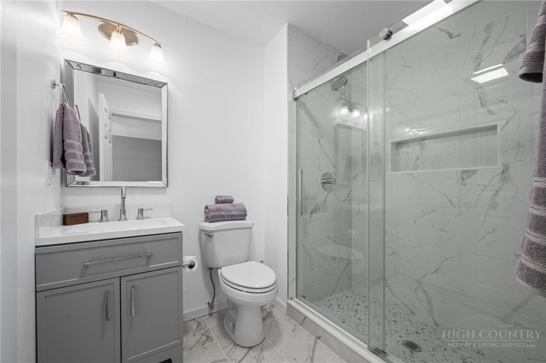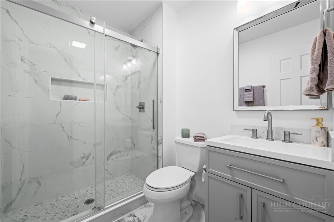 Tucked away in an exclusive enclave of just six homes, 187 Pine Village offers the perfect blend of mountain serenity and downtown convenience. Enjoy the rare luxury of a quiet, privately owned street while being within walking distance of Blowing Rock’s boutiques, restaurants, cafes and parks. The home offers flexible living quarters with the option for one large home or two separate units each with a private entrance and outdoor space. The newly finished lower level is a versatile space designed as a potential separate one bedroom apartment, guest suite, or high-end entertaining area. Upstairs, you have a first floor primary, two story living room with stone fireplace, oversized kitchen, two additional ensuite bedrooms and access to the attached garage. A standout expansive covered porch provides year-round outdoor space, effectively serving as an additional living room to enjoy a cup of coffee, an evening cocktail and the cool mountain air. Recent major improvements include a new roof, new HVAC systems, hardwood flooring, and premium Pella windows. Whether you are seeking a full-time residence with rental potential in the lower level or a mountain home retreat, this townhome delivers modern comfort in a timeless setting. Located within the village limits with no homeowner association fees.