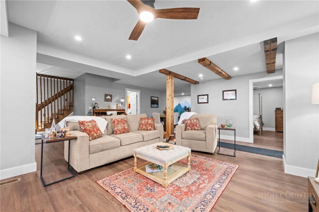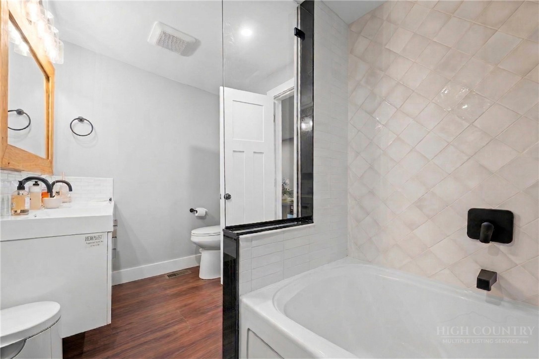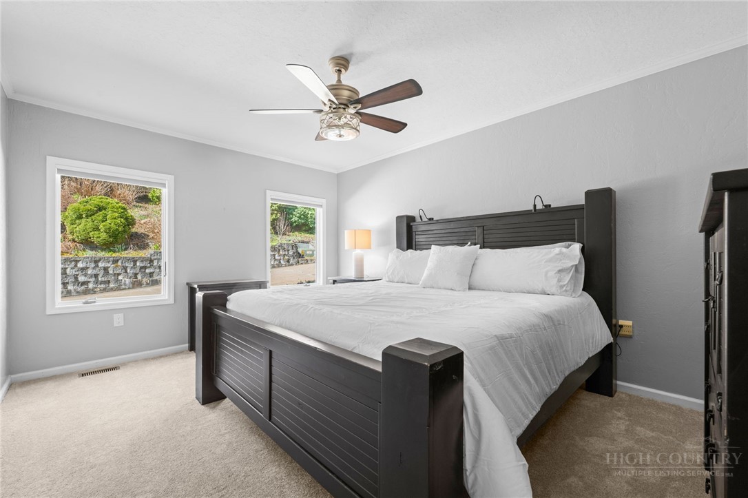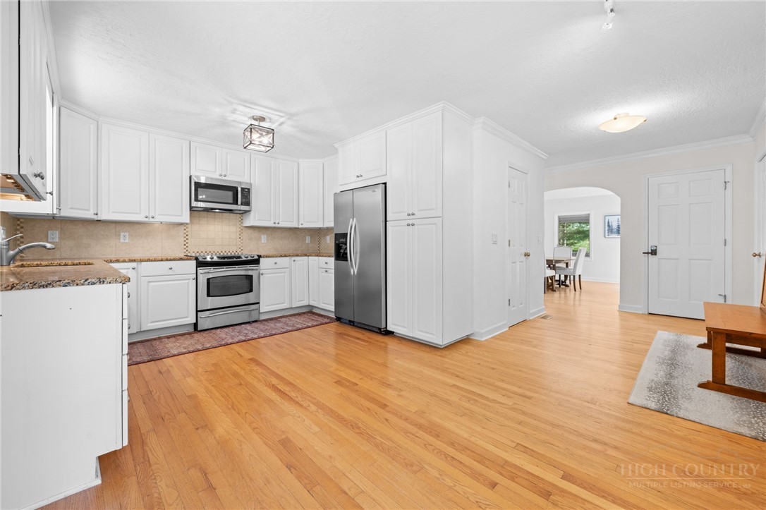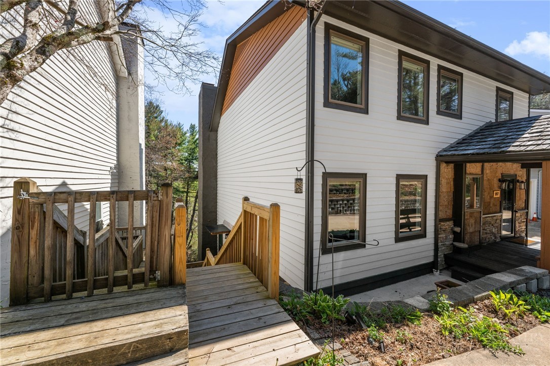 Tucked away in an exclusive enclave of just six homes, 187 Pine Village offers the perfect blend of mountain serenity and downtown convenience. Enjoy the rare luxury of a quiet, privately owned street while being within walking distance of Blowing Rock’s boutiques, restaurants, cafes and parks. The home offers flexible living quarters with the option for one large home or two separate units each with a private entrance and outdoor space. The newly finished lower level is a versatile space designed as a potential separate one bedroom apartment, guest suite, or high-end entertaining area. Upstairs, you have a first floor primary, two story living room with stone fireplace, oversized kitchen, two additional ensuite bedrooms and access to the attached garage. A standout expansive covered porch provides year-round outdoor space, effectively serving as an additional living room to enjoy a cup of coffee, an evening cocktail and the cool mountain air. Recent major improvements include a new roof, new HVAC systems, hardwood flooring, and premium Pella windows. Whether you are seeking a full-time residence with rental potential in the lower level or a mountain home retreat, this townhome delivers modern comfort in a timeless setting. Located within the village limits with no homeowner association fees.
