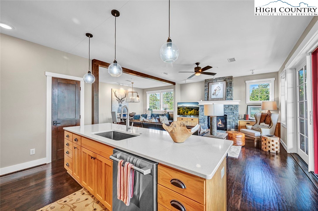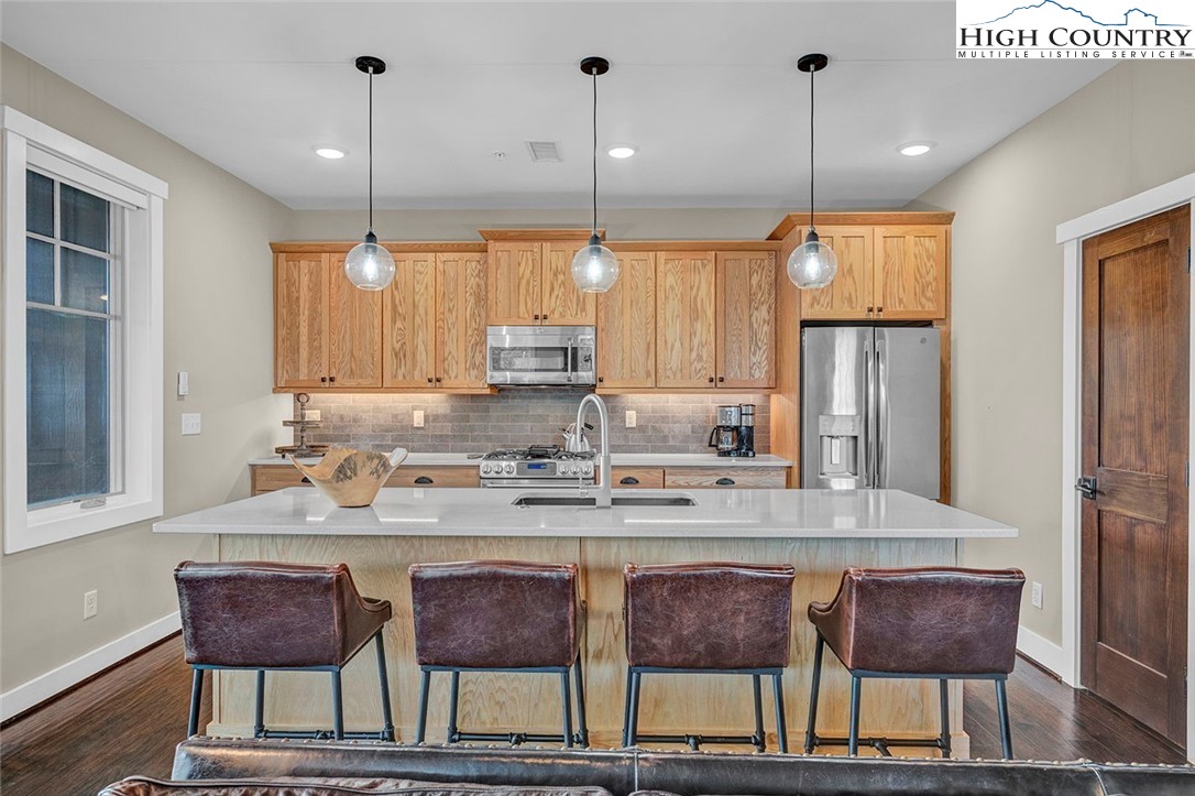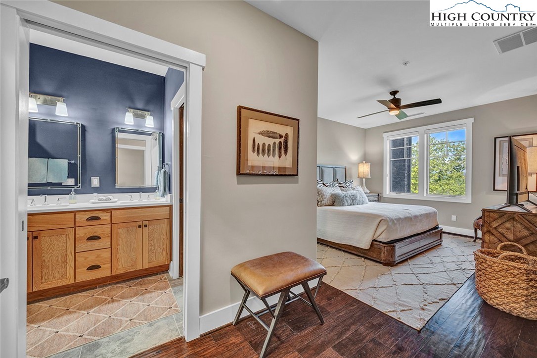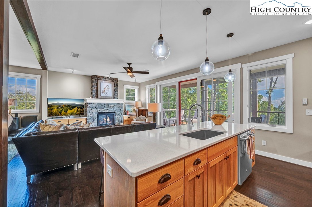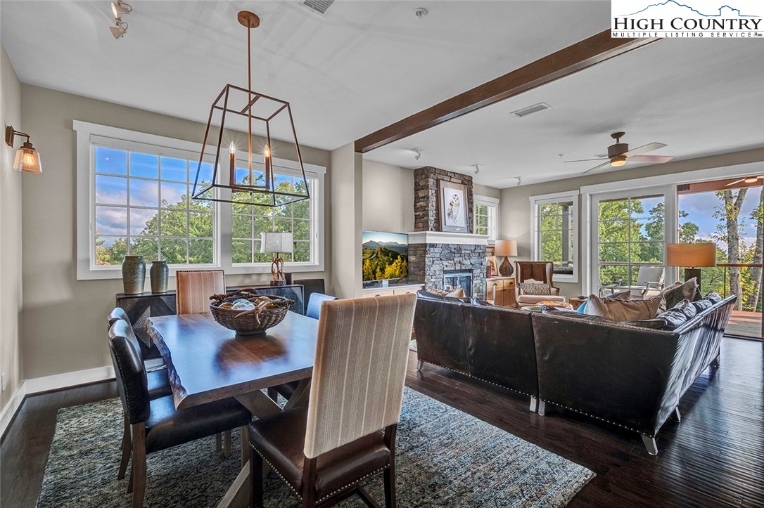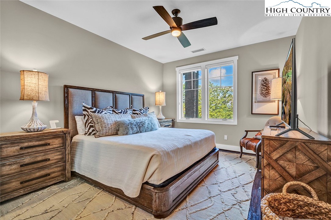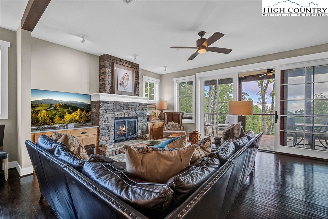 Transform your lifestyle in this luxurious 2-bedroom, 2-bath condo at the heart of Blue Ridge Mountain Club’s The Peaks at Watson Gap, Mitchell Building unit 101. Professionally decorated and furnished by award-winning Dianne Davant Interiors, all furnishings convey with just a few exceptions. The spacious, open, split-bedroom floor plan offers one-level living, featuring a large kitchen, dining area, and living room with a stone gas-log fireplace. Step out onto the deck with a built-in gas grill and take in the sweeping mountain views. Each bedroom has an en-suite bath and the primary bedroom closet has a private, quiet workspace if needed for telecommuting while entertaining guests. There's plenty of closet storage inside & Unit 101 also has a 5'x9' indoor, temperature-controlled storage room and 2 parking spaces permanently assigned, one which is covered. The condo also features a video-enabled entry system which offers residents real-time two-way communication for added convenience. Just a short stroll away, the Ascent Wellness & Fitness Center offers workouts against a backdrop of long-range mountain vistas. Enjoy dining or evenings by the fire at popular community spots like the Lookout Grill onsite restaurant and Jasper House. Explore nearby hiking, UTV and ATV trails spanning much of the 6,000+ acre community, or play pickleball, basketball, bocce ball or horseshoes and enjoy picnics at the Watson Gap Park & Pavilion. In the warmer months, visit The Meadows’ seasonal pool, additional pickleball courts, and food trucks for a taste of summer fun. Convenient access to the Blue Ridge Parkway, Appalachian Ski Mountain, Blowing Rock, Boone & many other High Country attractions in our beautiful Blue Ridge Mountains, this low-maintenance condo lifestyle is tailored to the outdoor enthusiast and offers so many amenities, you will never want to leave and awaits you at Mitchell 101.
